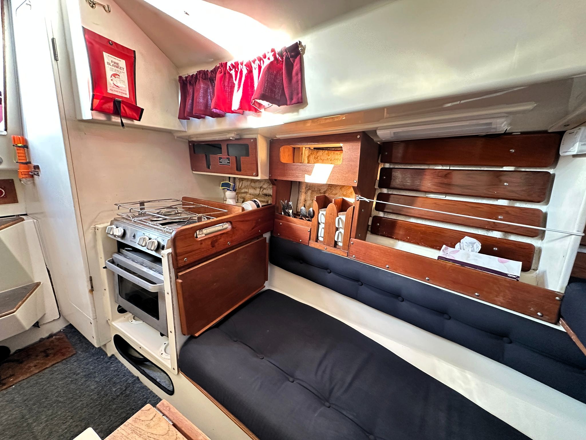 Drinks locker, crockery stowage and cutlery storage were supplied by Cornish crabbers when Curlew was built