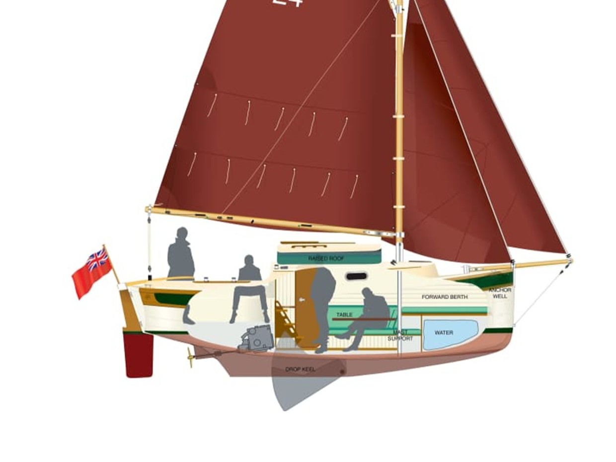 The Cornish Crabber 24 was first introduced in 1975 and has proven to be a hugely successful design for the British builder with several revisions of the original basic design maintaining her appeal. In 2017 Andrew Wolstenholme was commissioned by the builders to undertake a full redesign of the Crabber 24, with the brief being to ‘progress the boat’s performance without turning it into an average white racing boat’. The Cornish Crabber 24 MkV was the result of this project. Blending modern technology with her carbon mast, timber gaff and boom with traditional styling the all new Crabber 24 MkV has rejuvenated this modern classic design while maintaining the traditional Cornish Crabbers family identity.