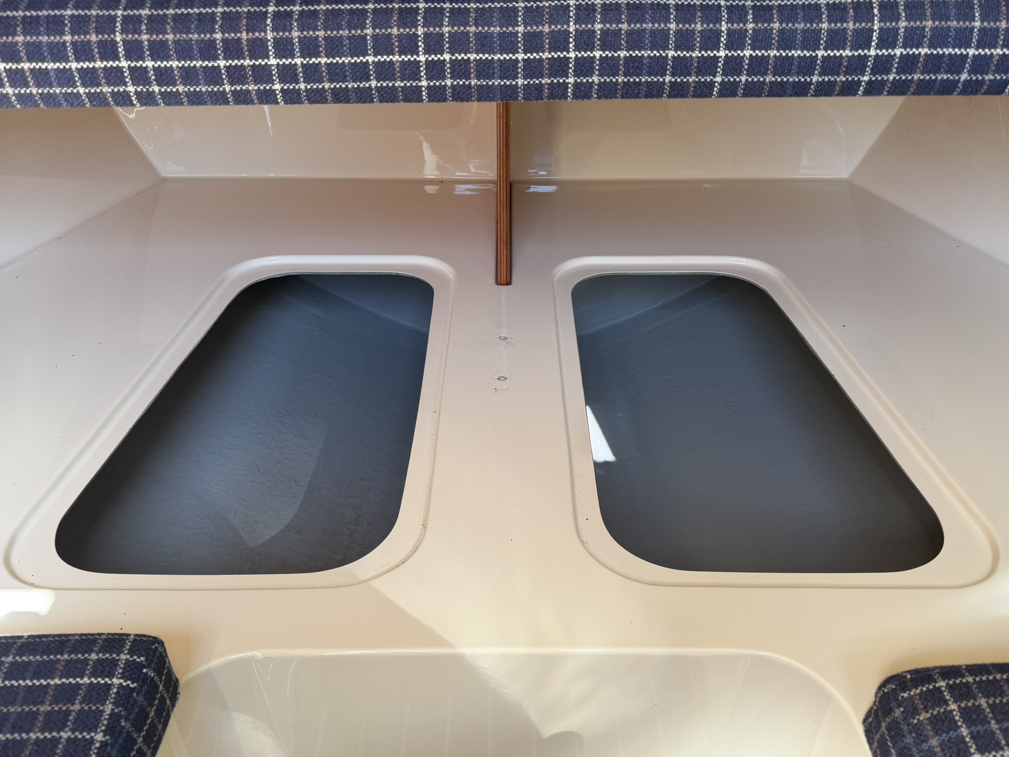 Large storage lockers below port and stbd. seats.