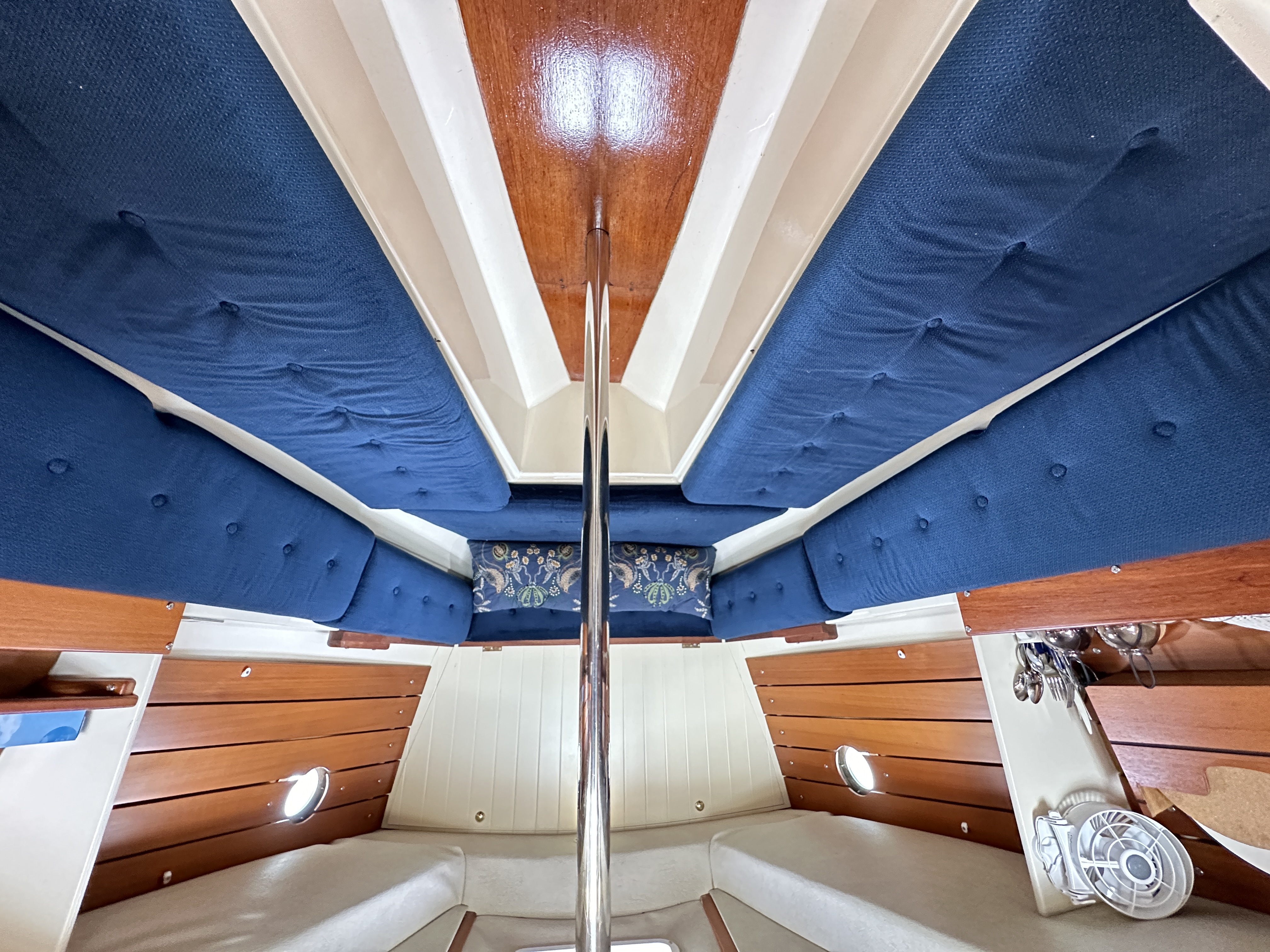 Pilot berth aft of chart table currently shortened and used for extra flexible water tank