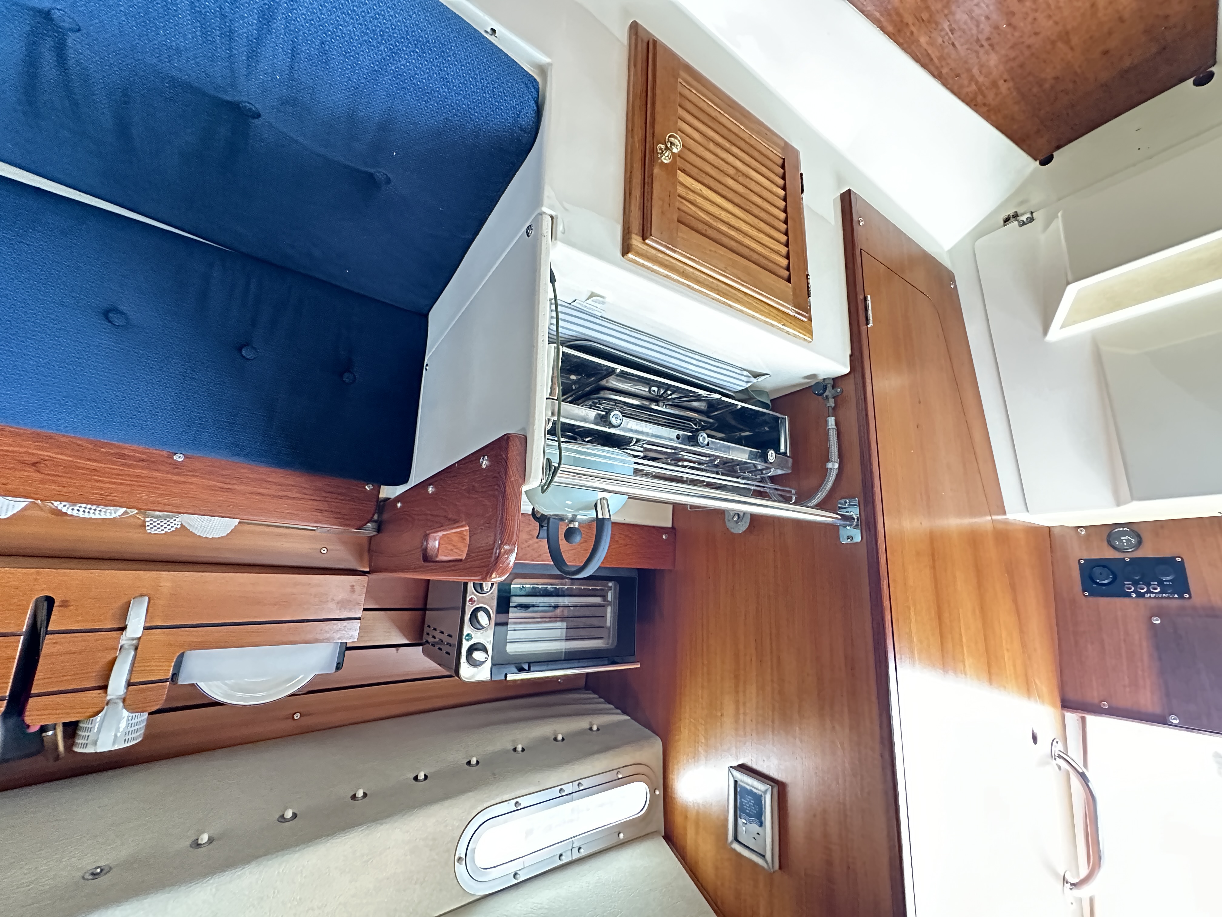 She sleeps 3, can be short handed sailing with her sloop rig and furling genoa.