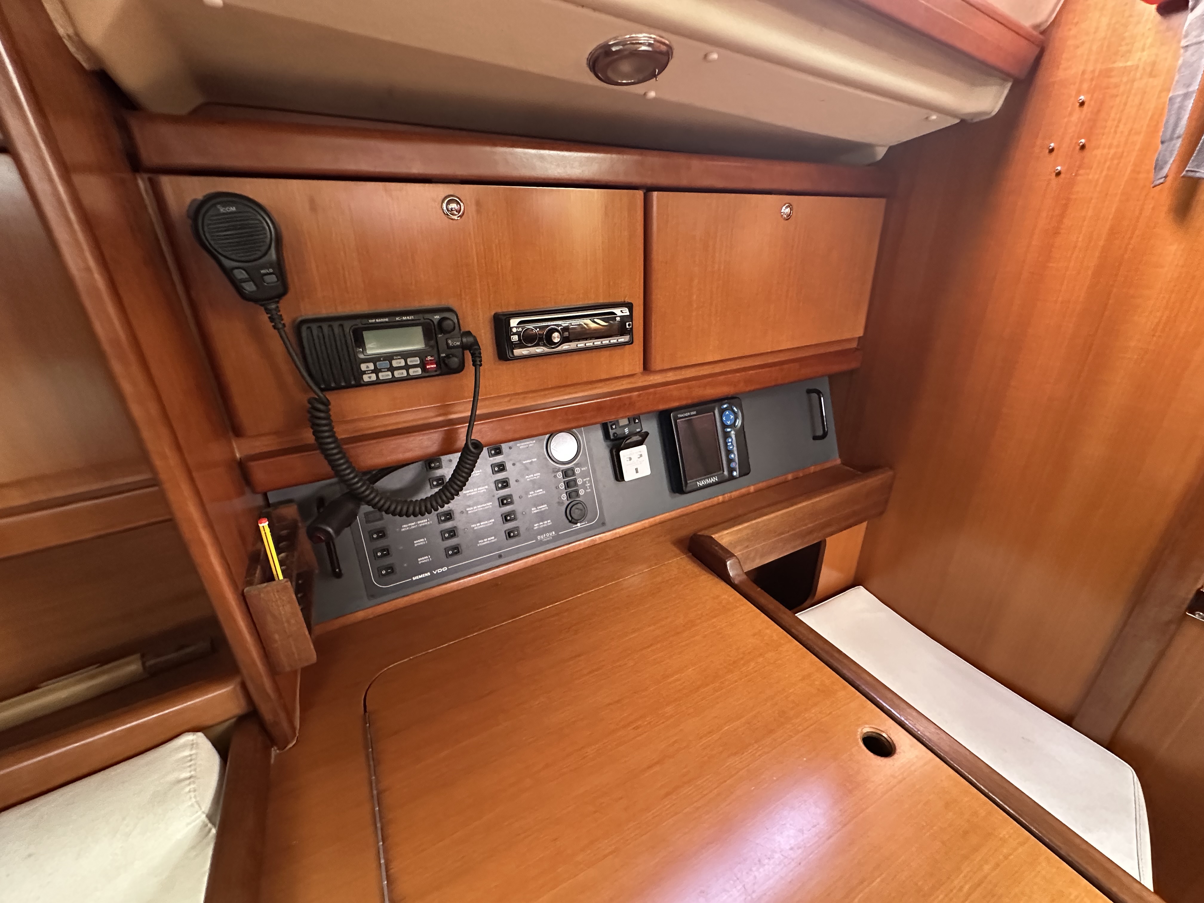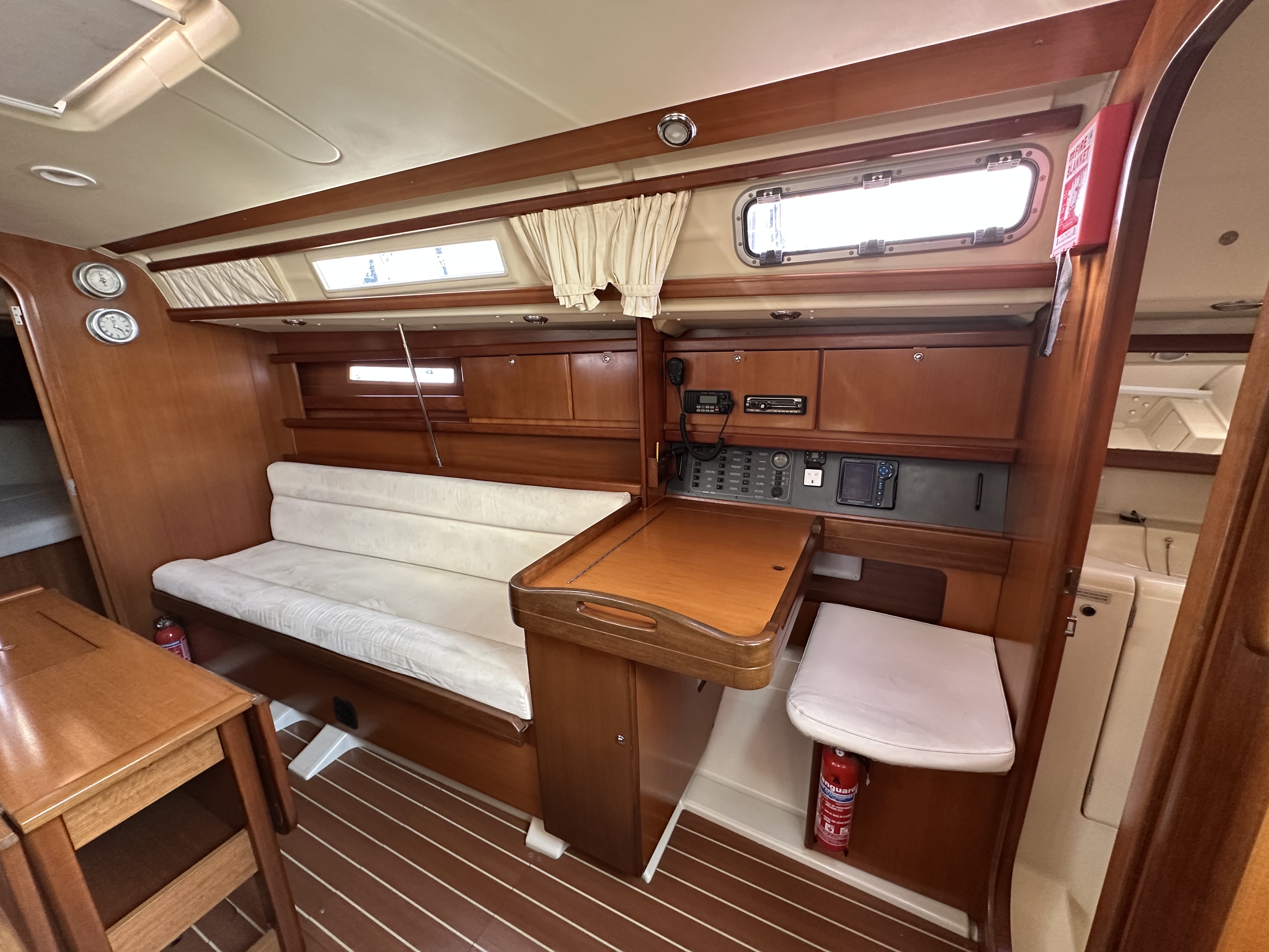 Forward facing chart table and seat to starboard