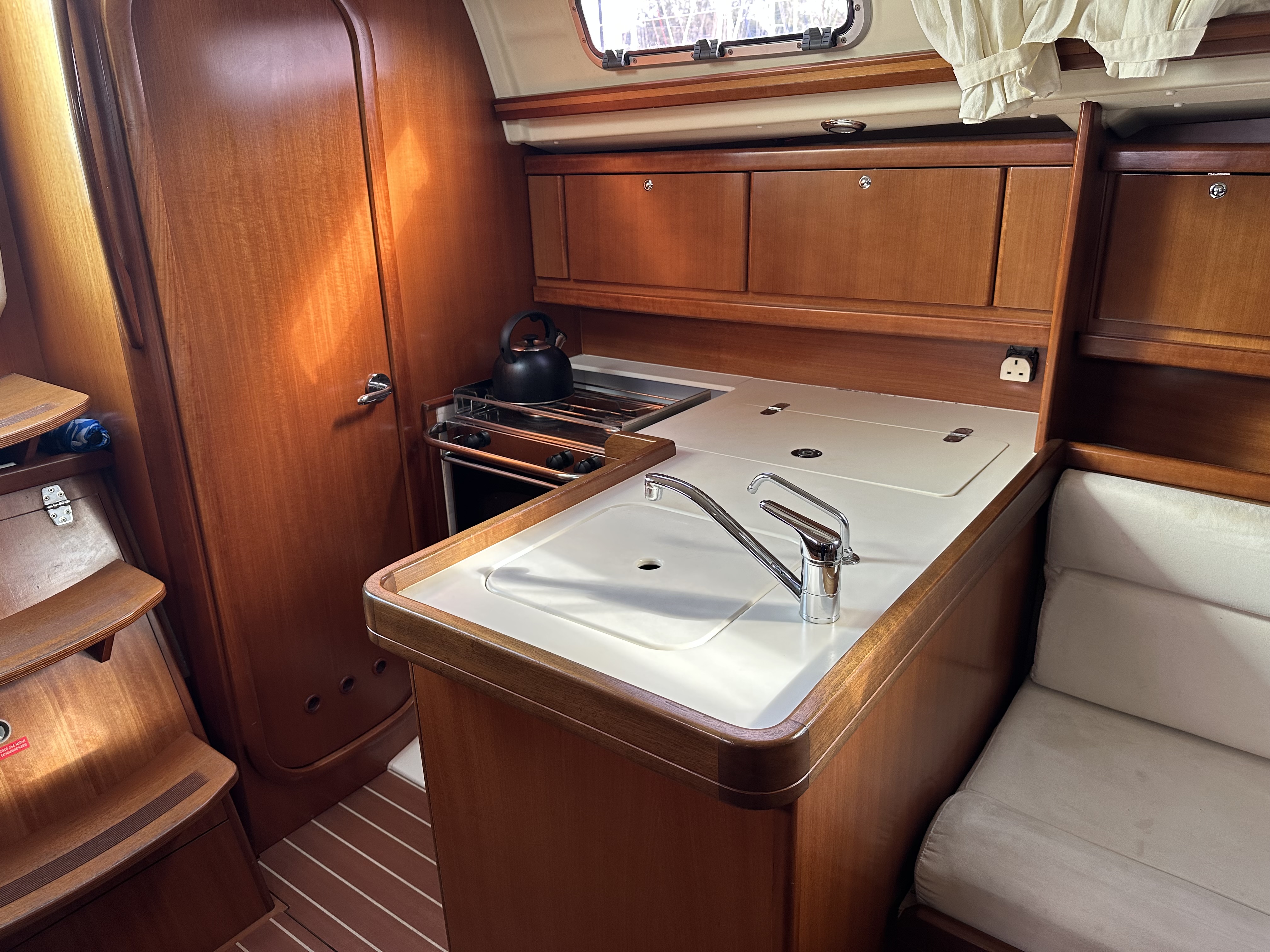 L shaped galley to port