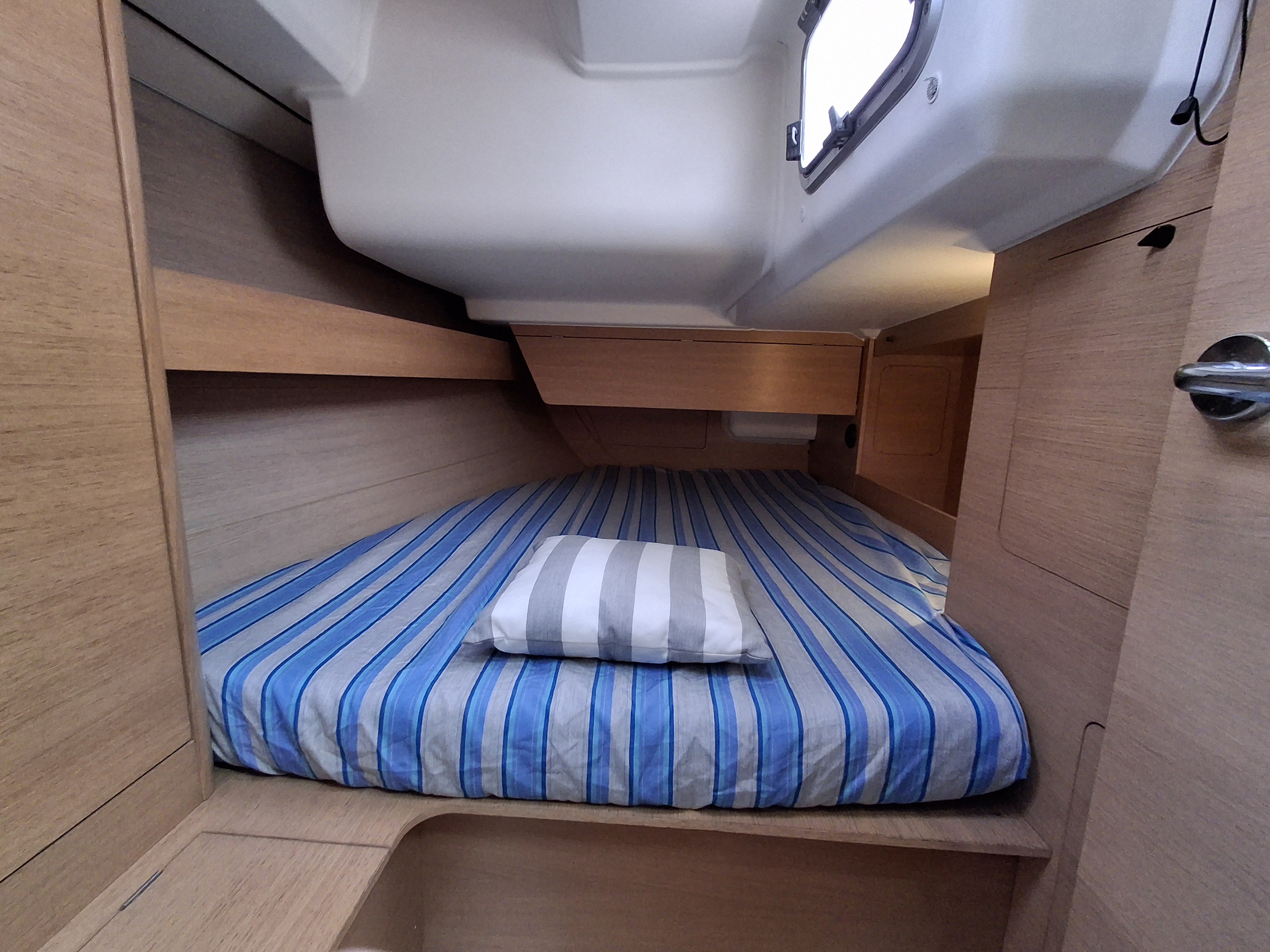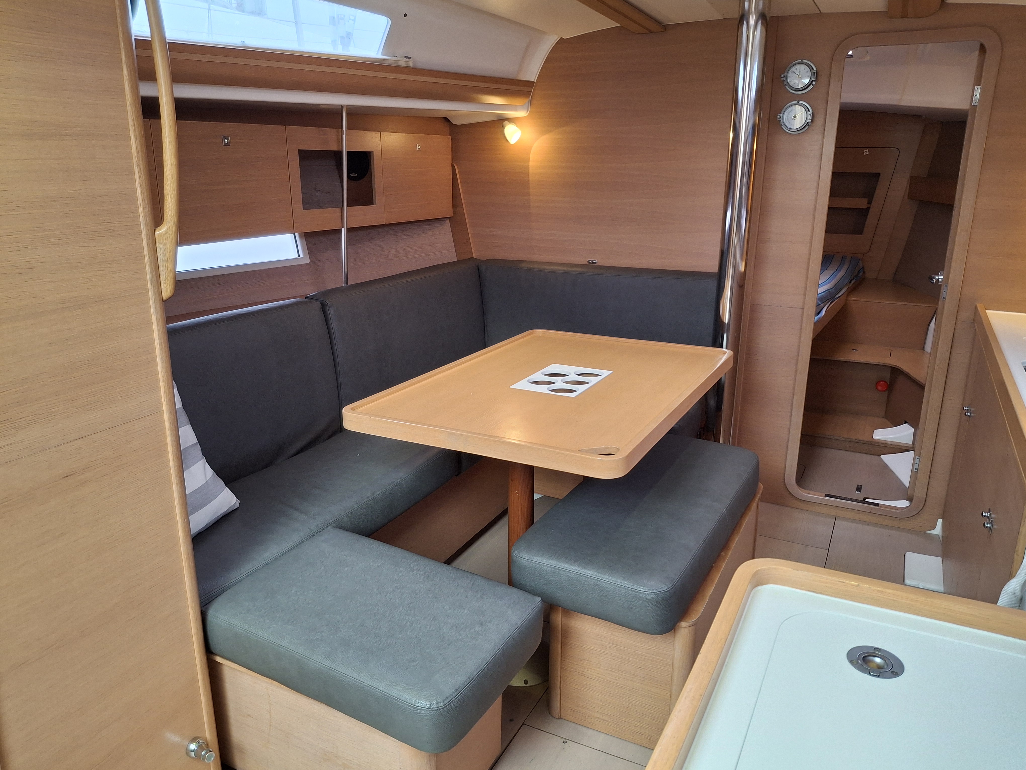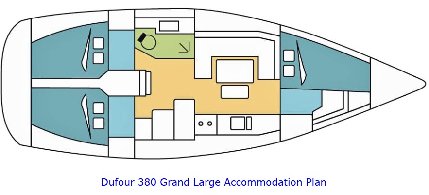 With three double cabins plus saloon conversion, she has ample berths for all plus the large cockpit with fold down transom is ideal for entertaining or fully crewed cruising. If short handed is more your thing, this Dufour 380 is perfectly set up plus the drop down bowthruster combined with the Yanmar 30hp engine to saildrive makes berthing very straightforward.