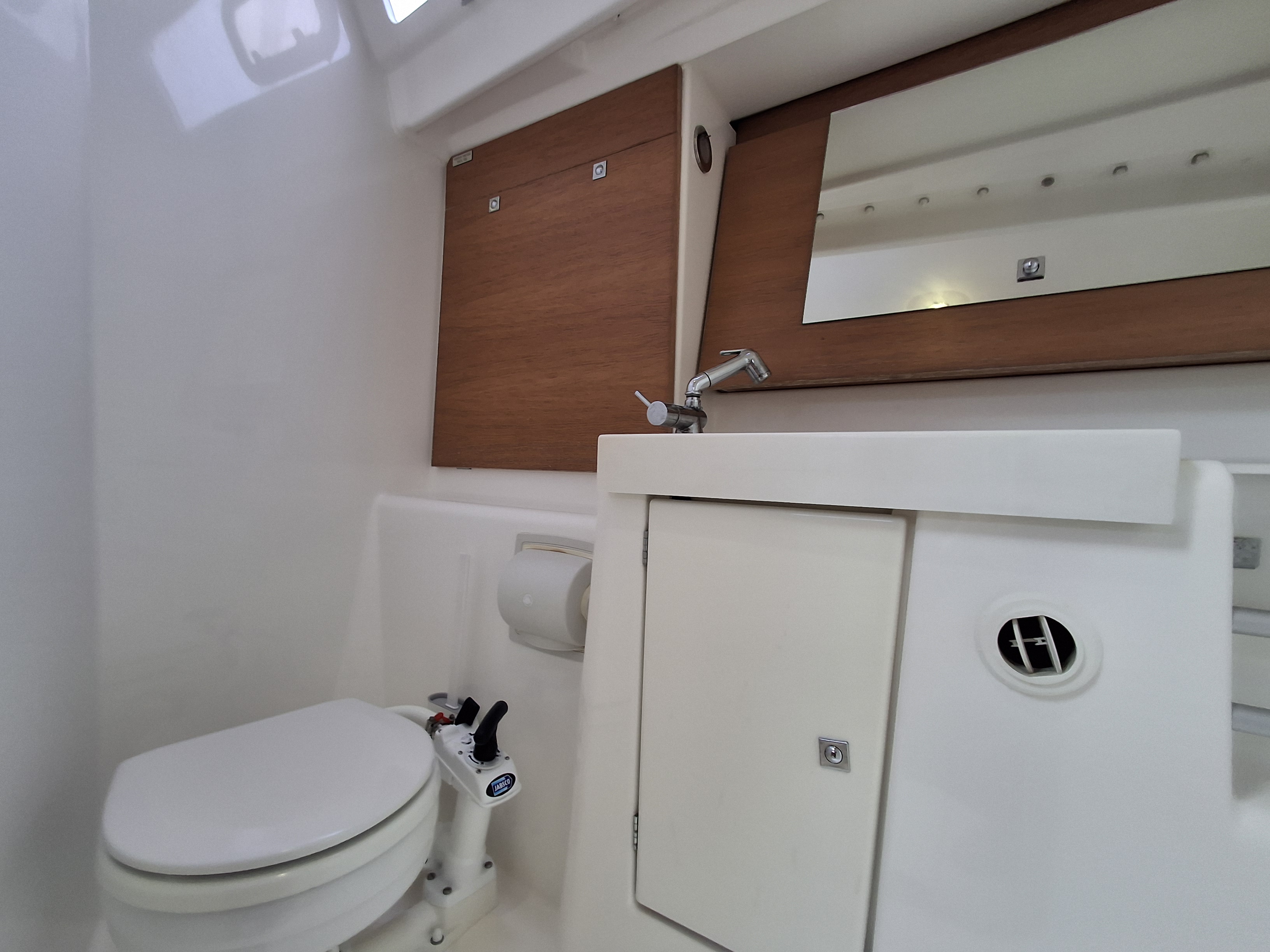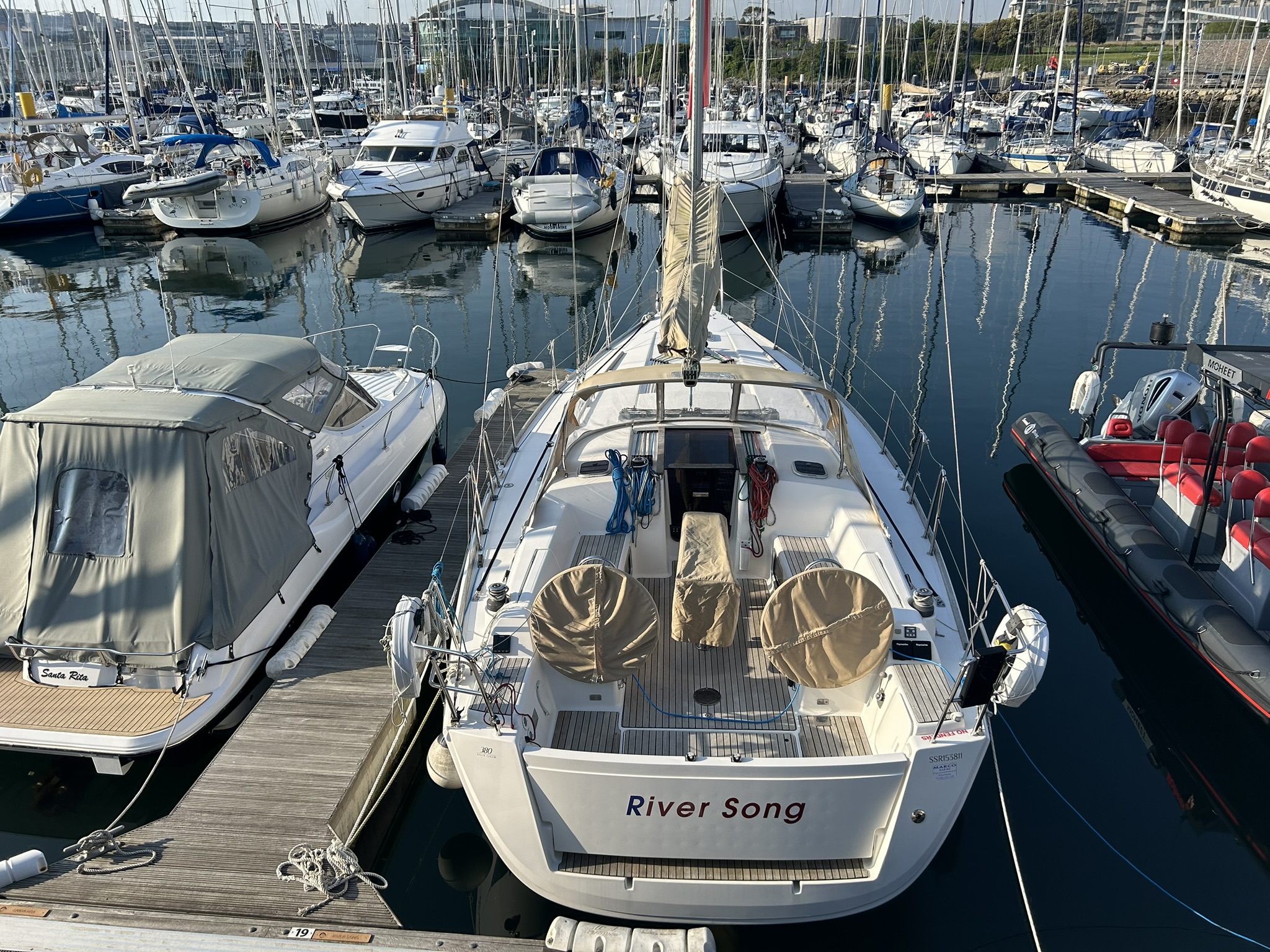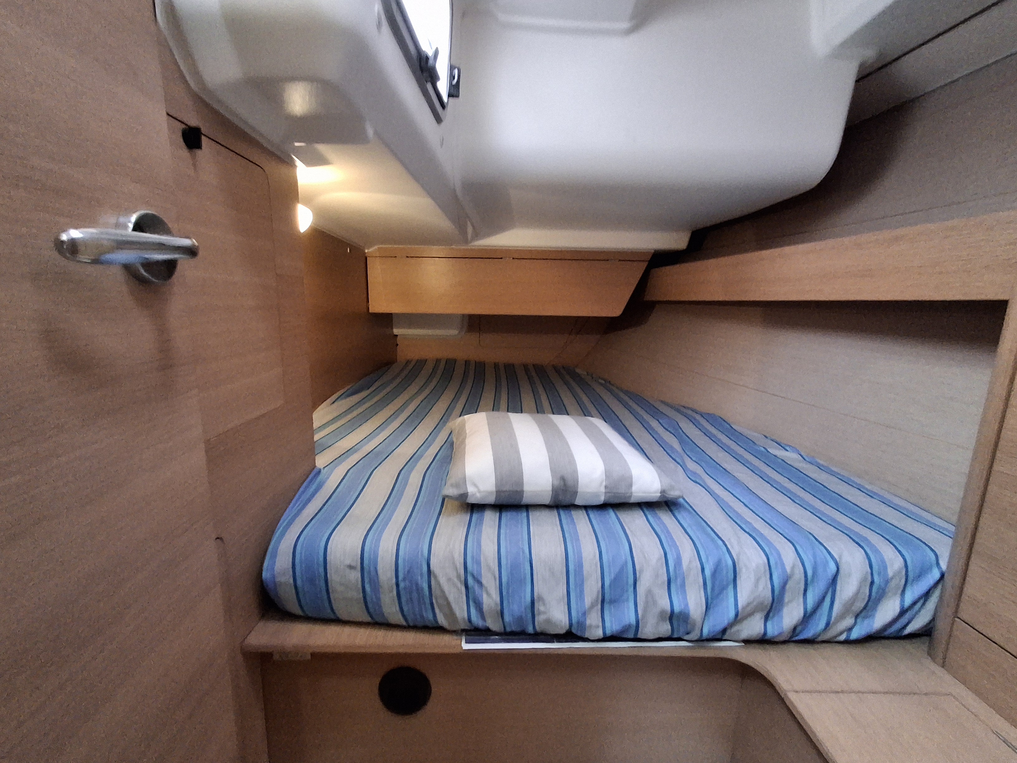 With three double cabins plus saloon conversion, she has ample berths for all plus the large cockpit with fold down transom is ideal for entertaining or fully crewed cruising. If short handed is more your thing, this Dufour 380 is perfectly set up plus the drop down bowthruster combined with the Yanmar 30hp engine to saildrive makes berthing very straightforward.