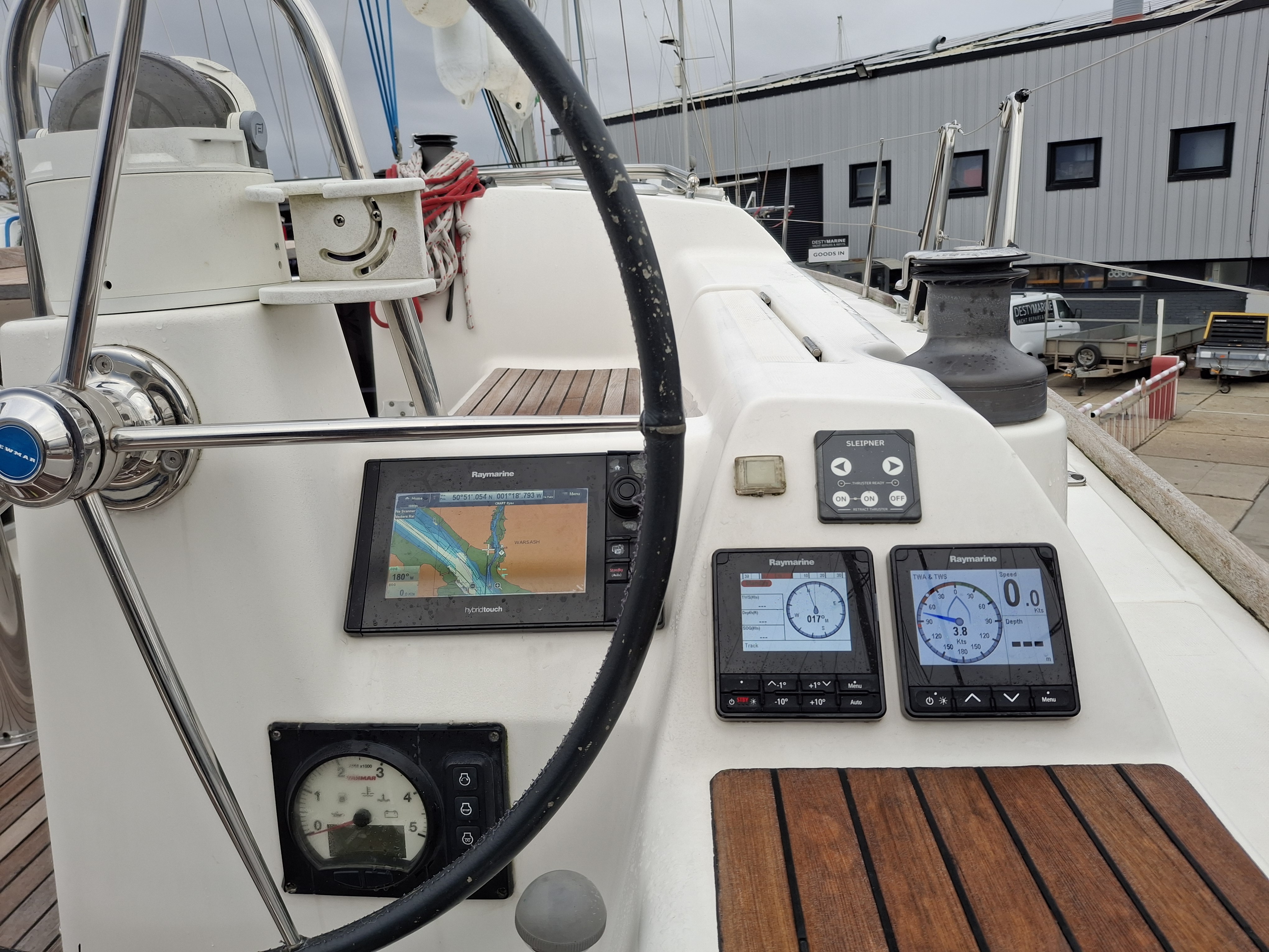 With more than a nod towards performance cruising, this Dufour 380 Grand Large comes well equipped with Raymarine navigation electronics including autopilot, drop down bowthruster, heating plus more.