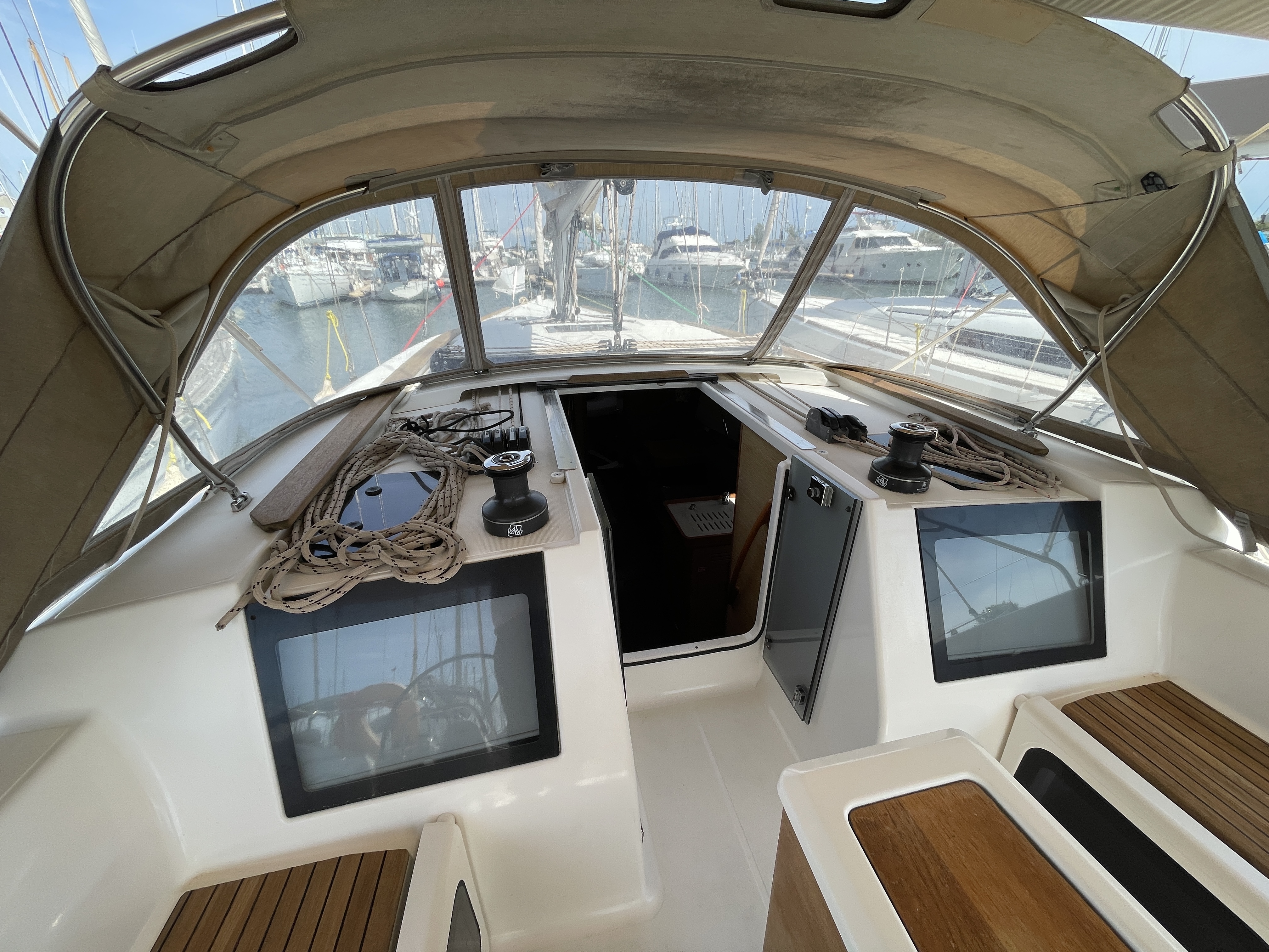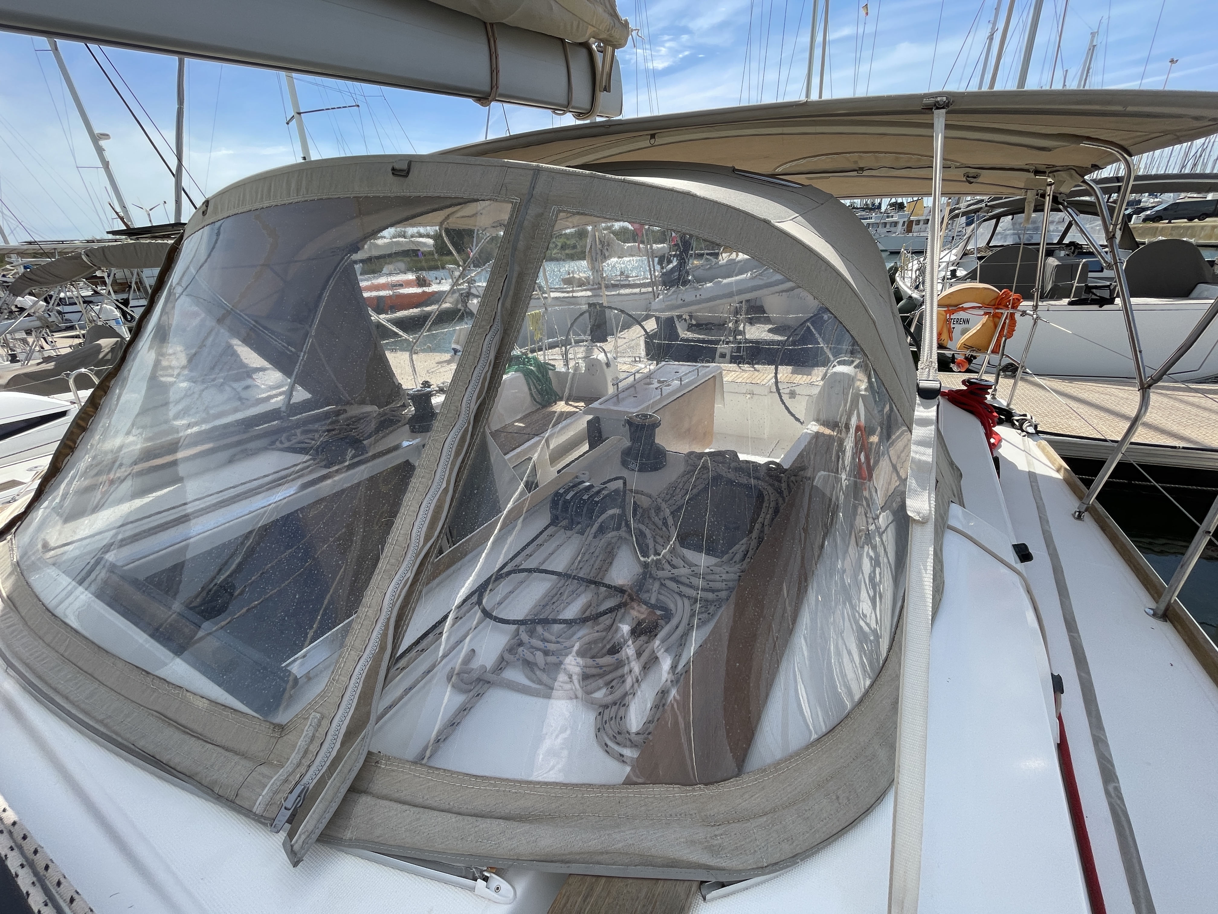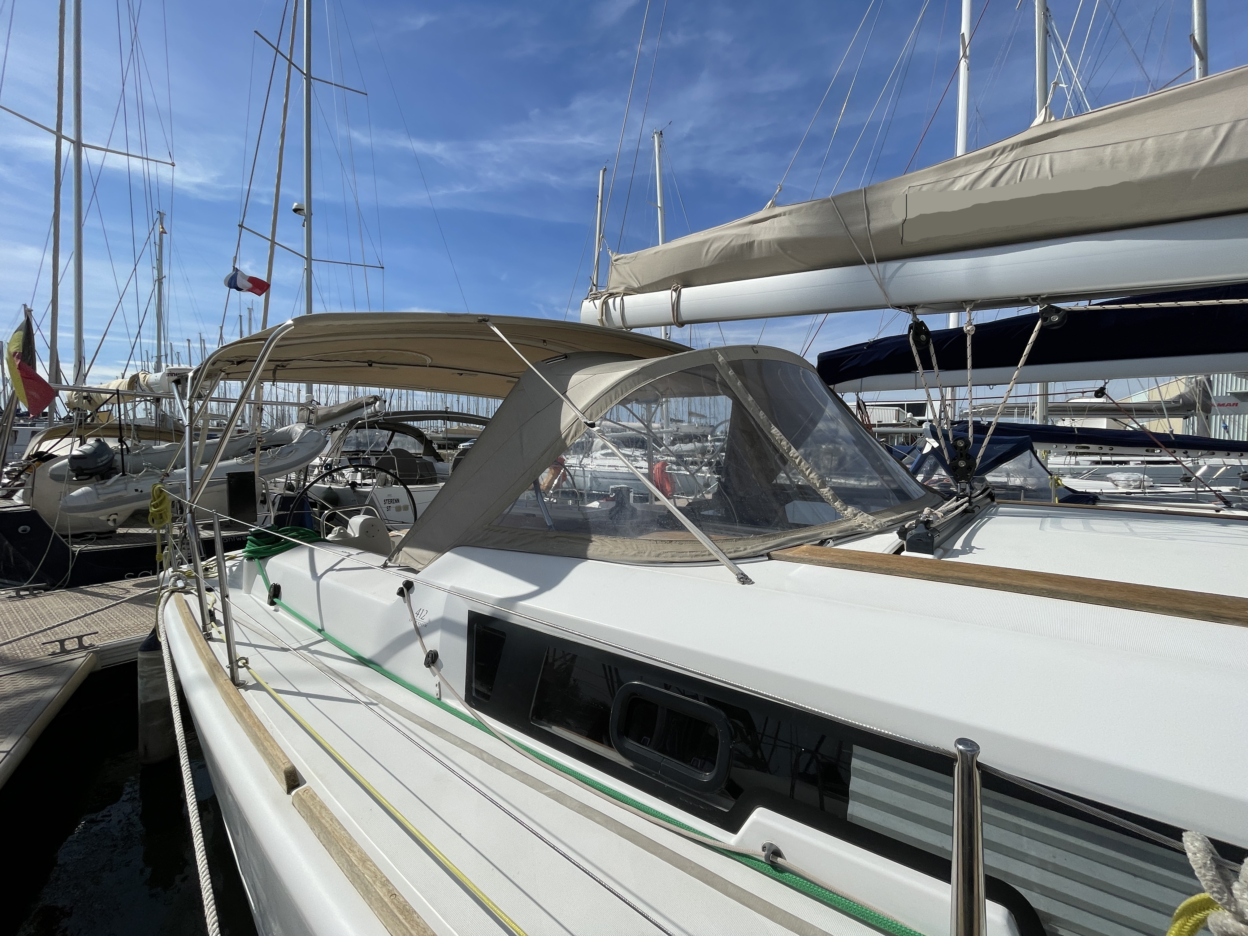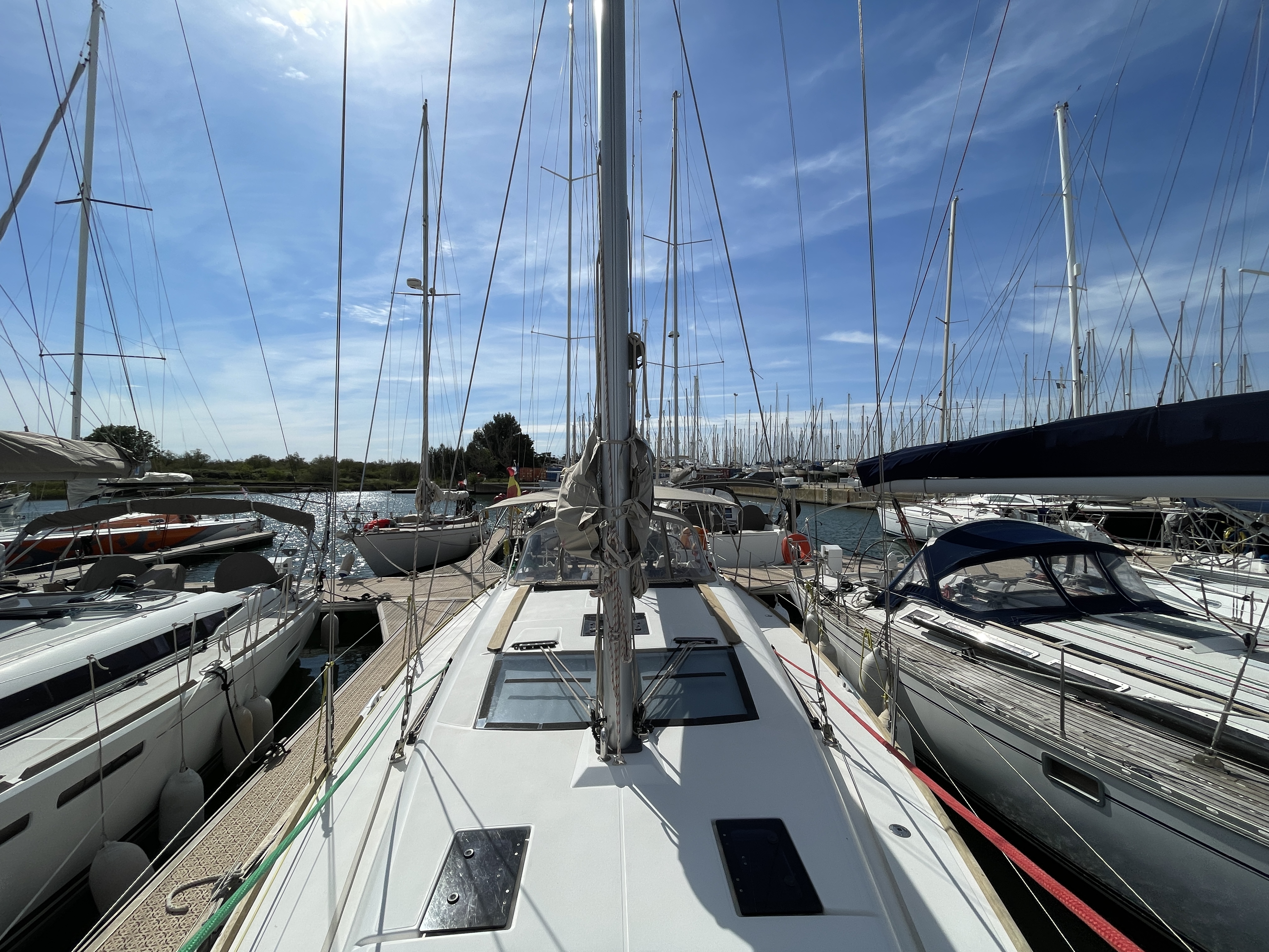 Equipment: Z-Spar aluminium stepped mast, Fully battened Elvstrom Dacron 38 m² from 2023, 20% used, ARIMAR Dinghy 240cm Yamaha 4-stroke 2.5 HP outboard. Volvo Penta D2-50F 50 HP diesel 2585h, Delta anchor with 60m 10mm chain.