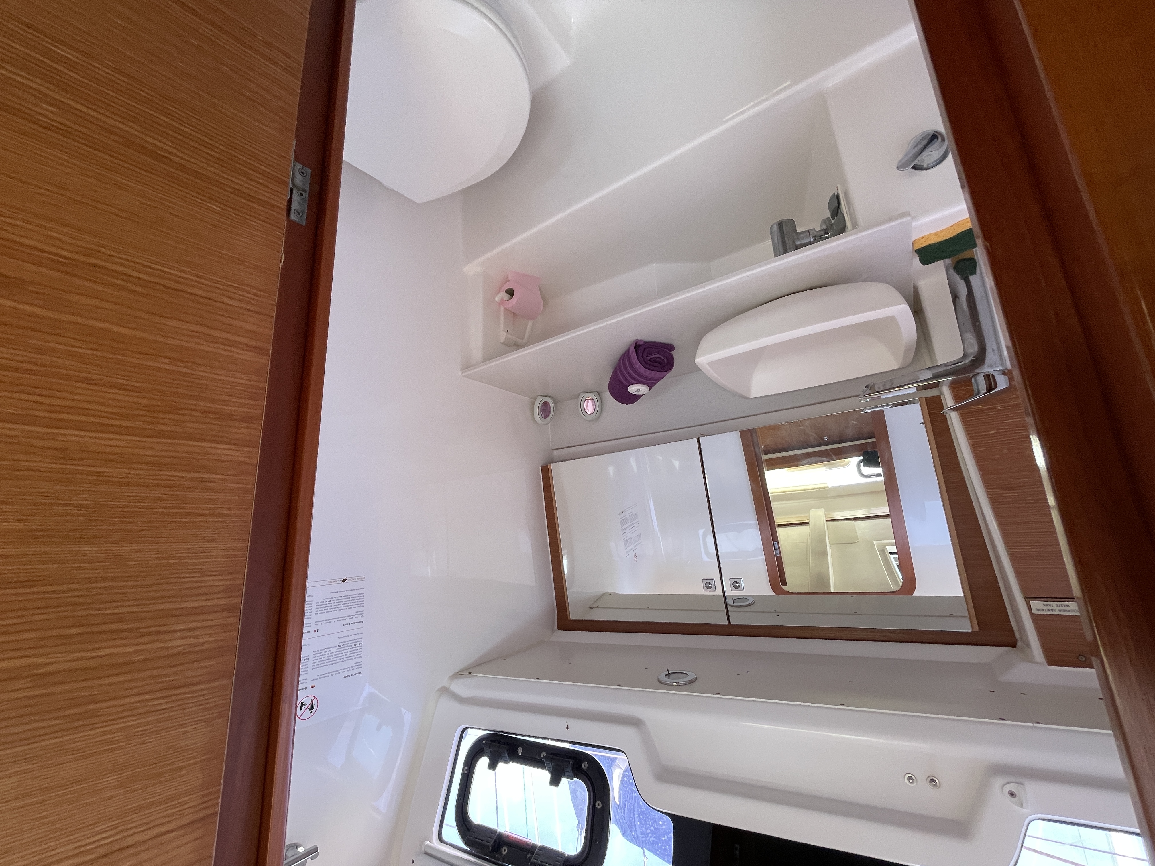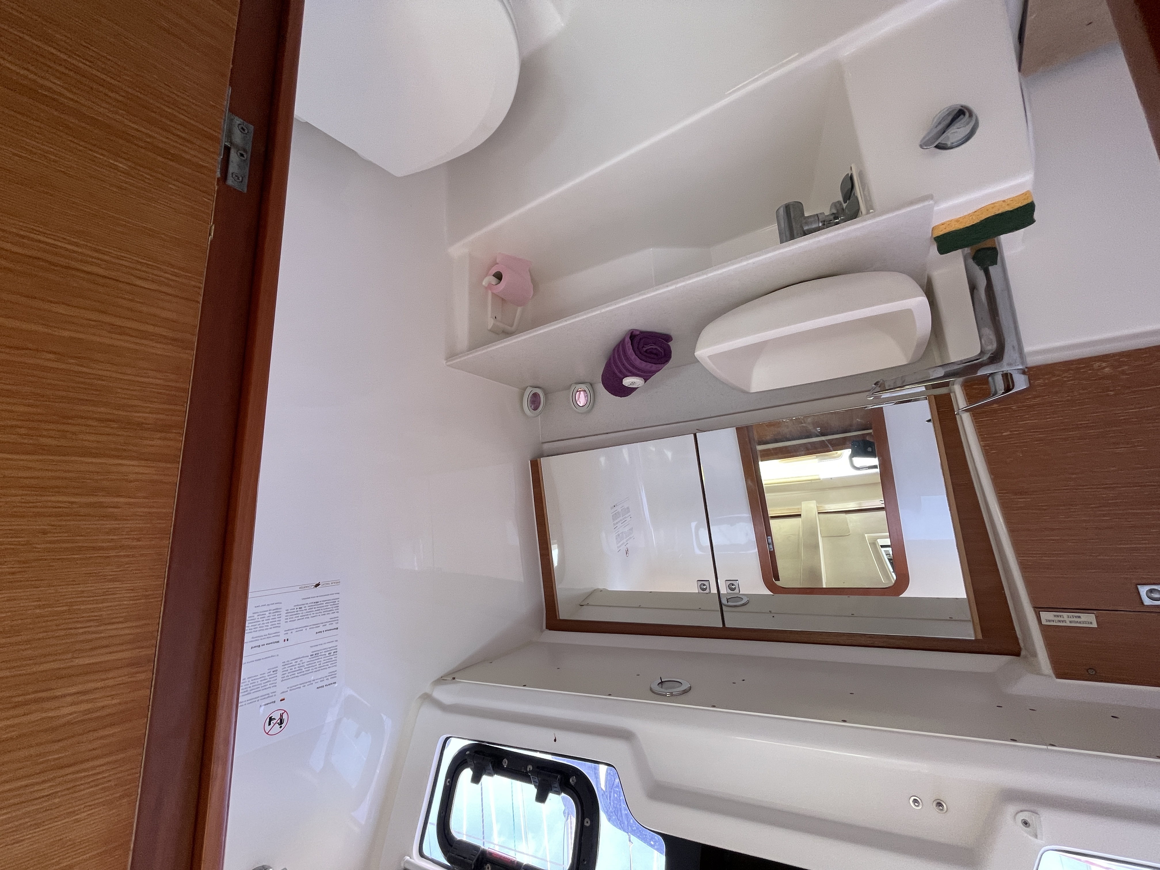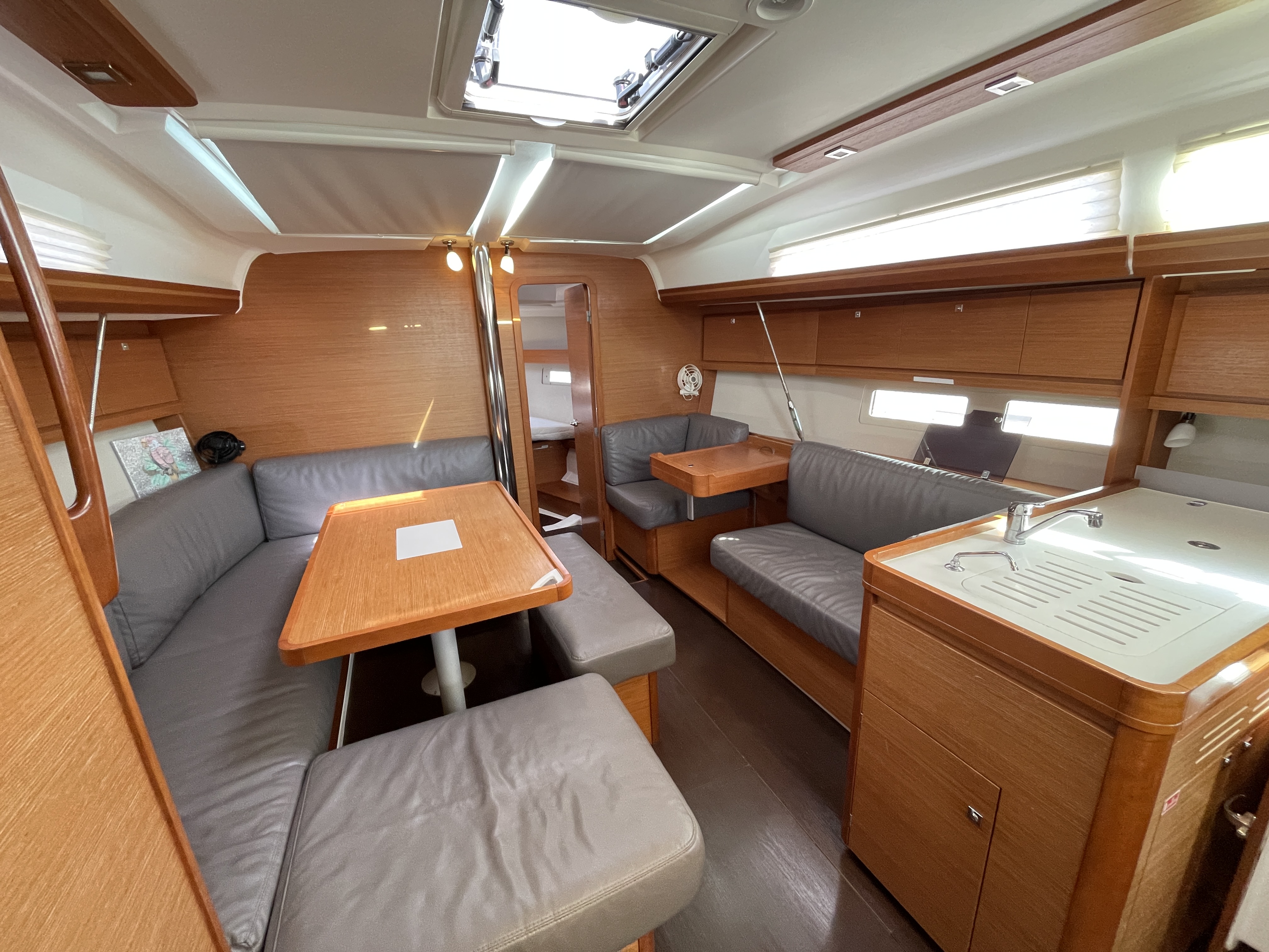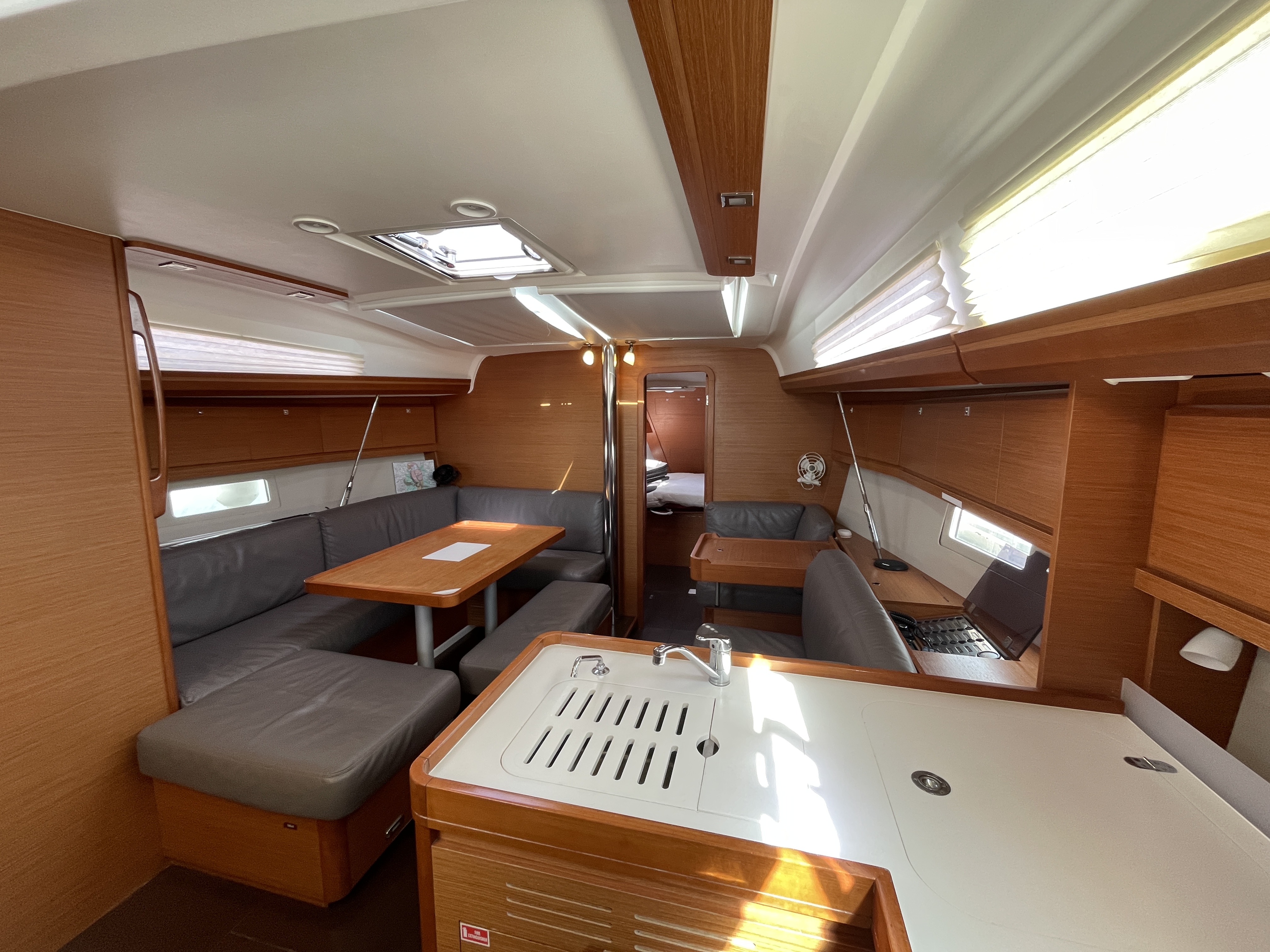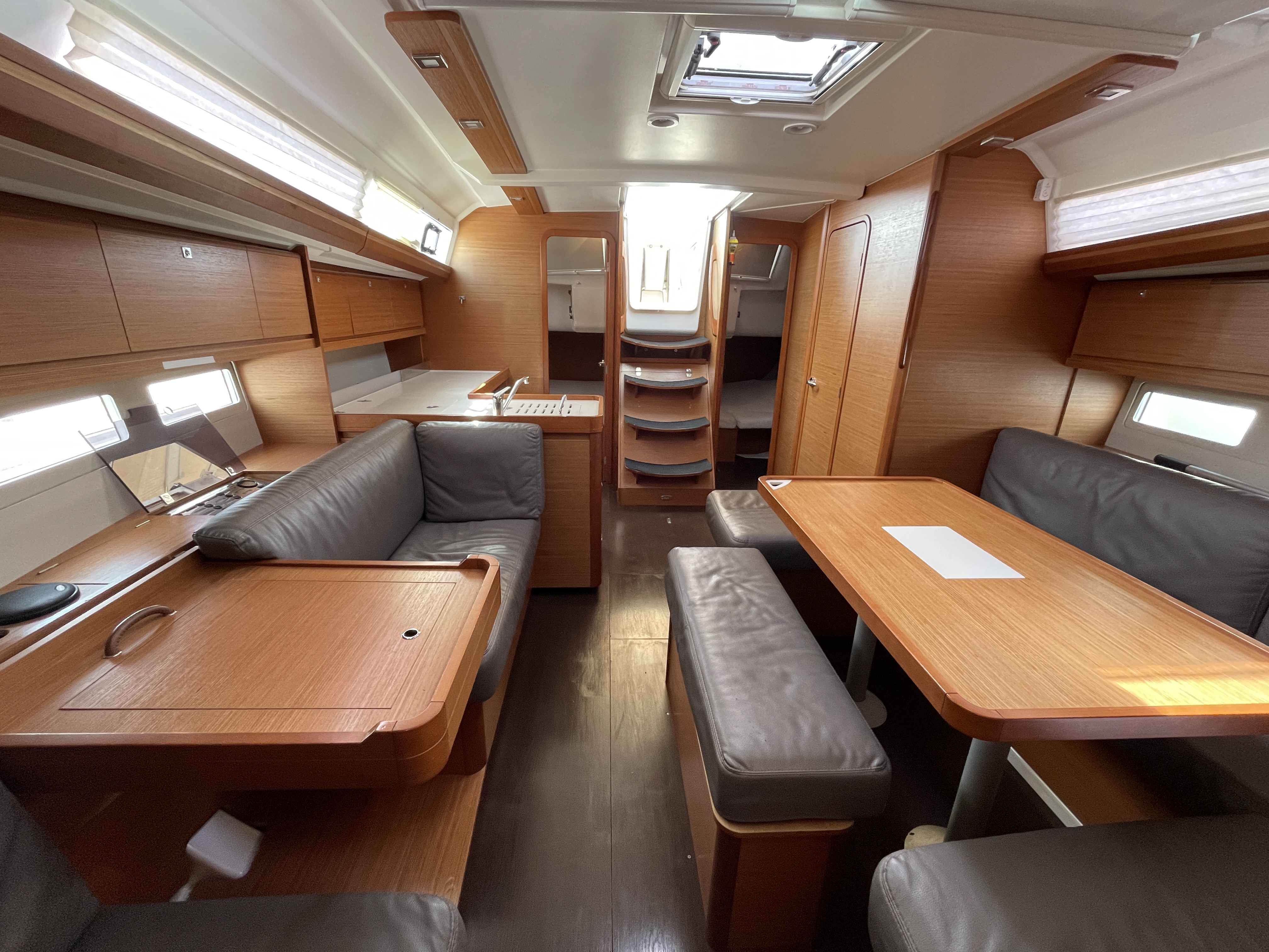 The saloon is very bright because of the six large portholes and opening deck hatch