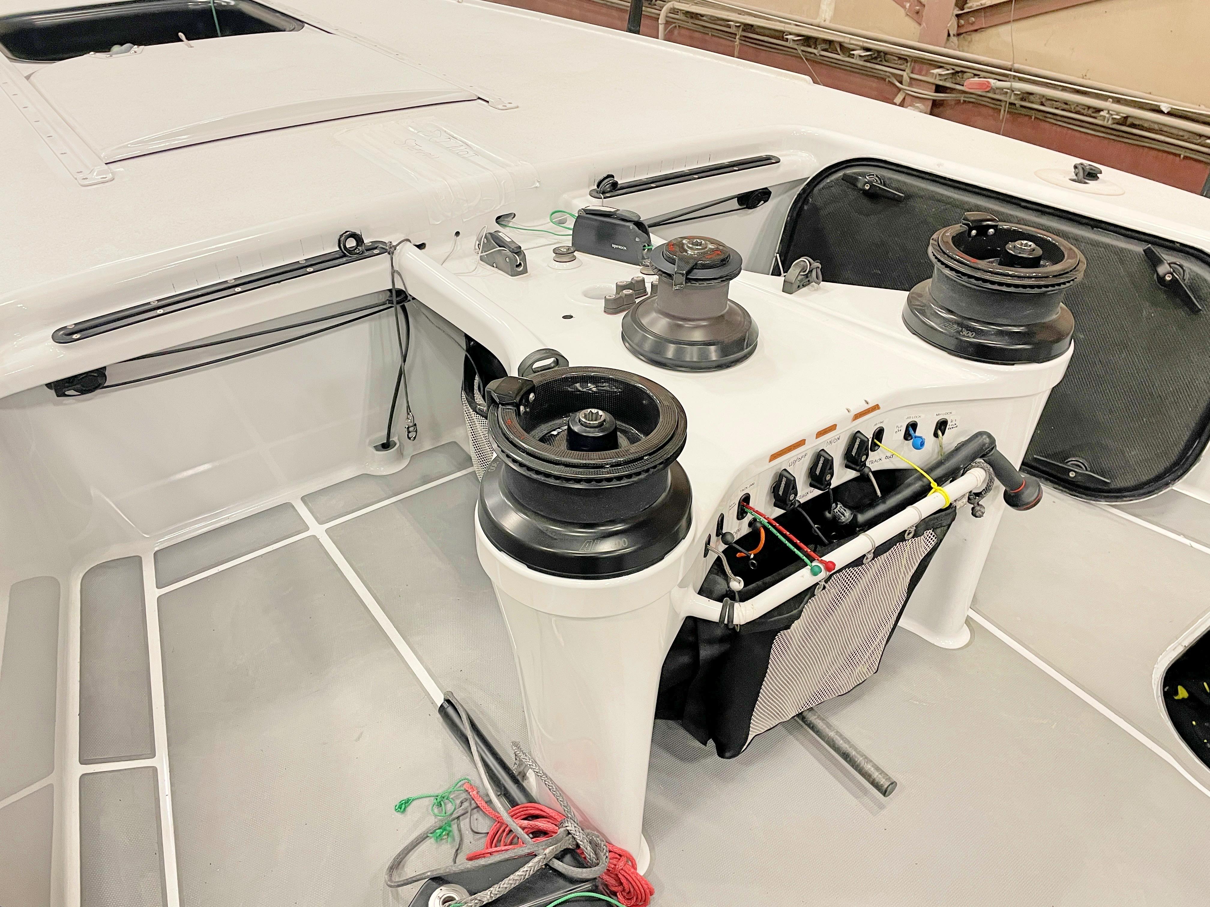 - Running Backstay- 2 x Harken 60.3 on angled plinths in the cockpit side.