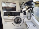 Semi covered aft large self-draining cockpit with helm station to starboard and easy access to spacious decks