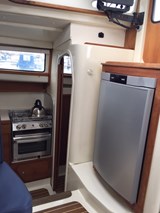 -port hull with toilet / shower compartment forward, chart table and access to aft guest cabin