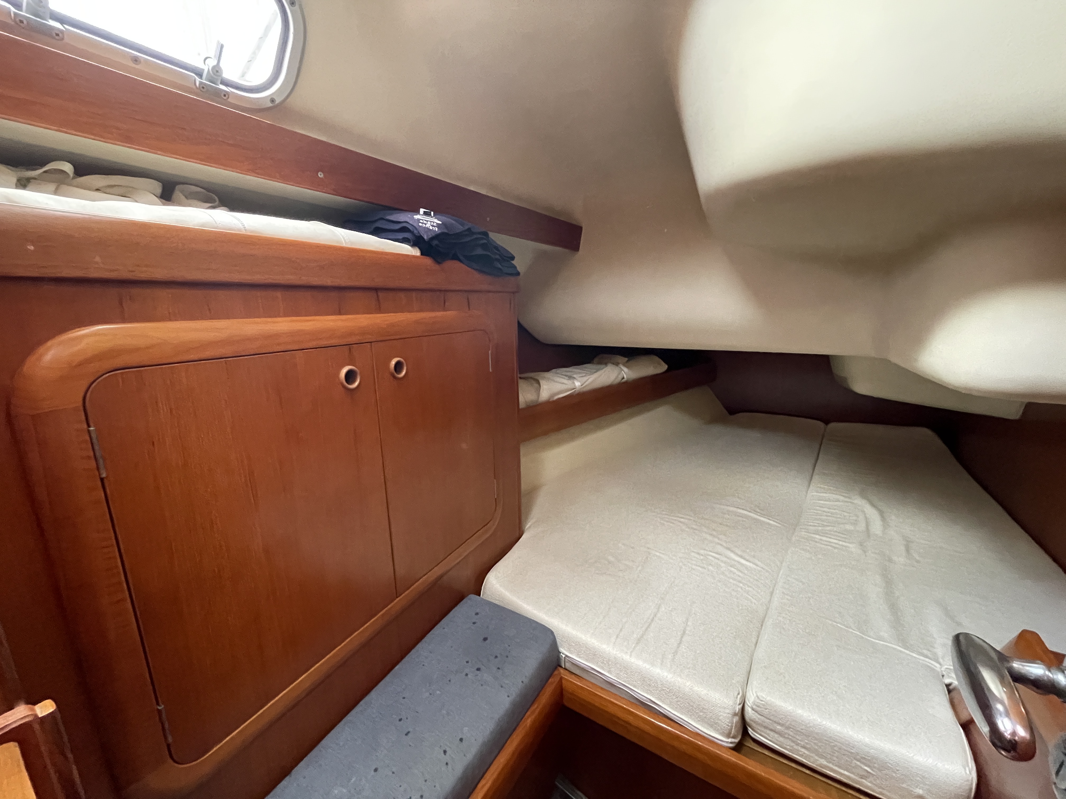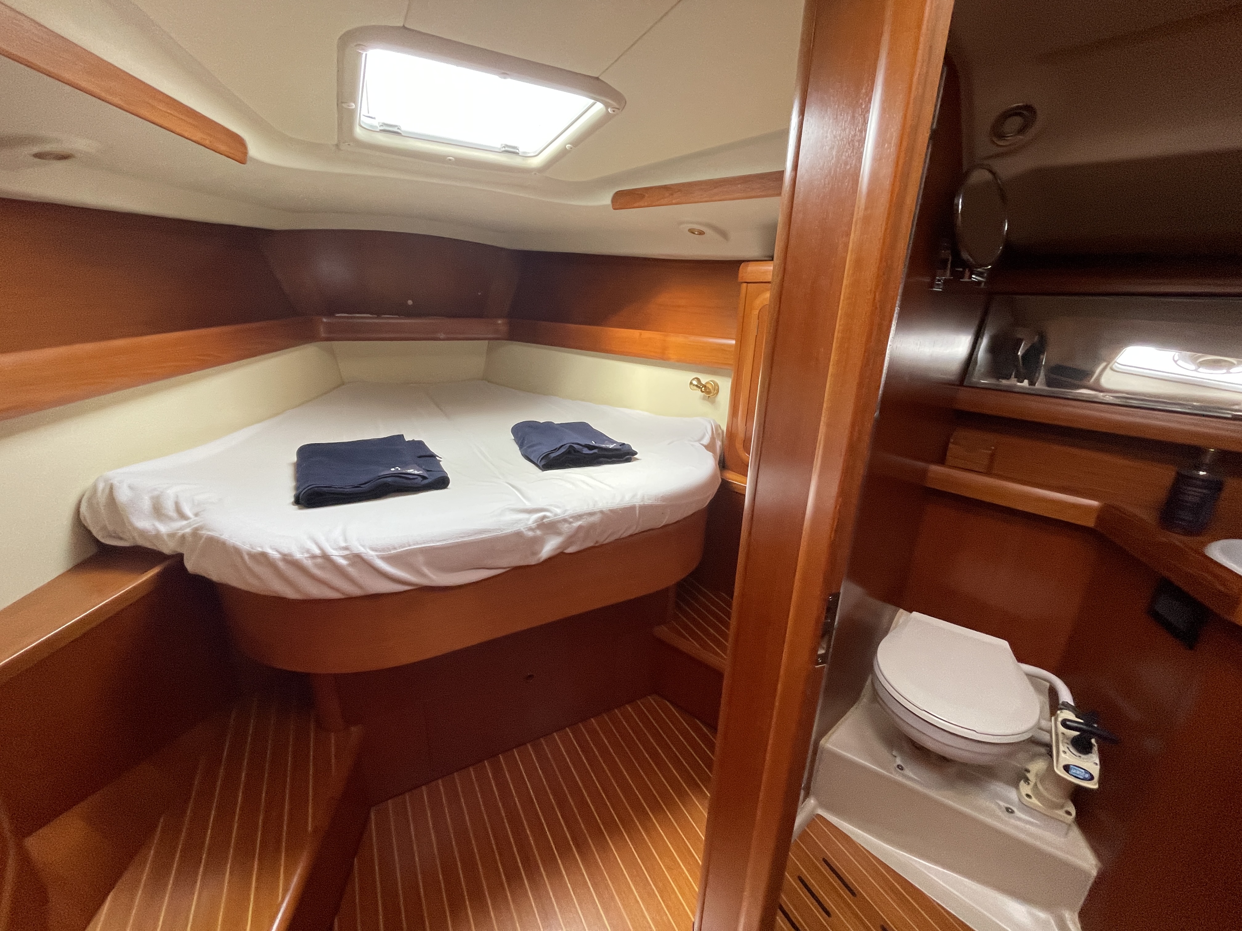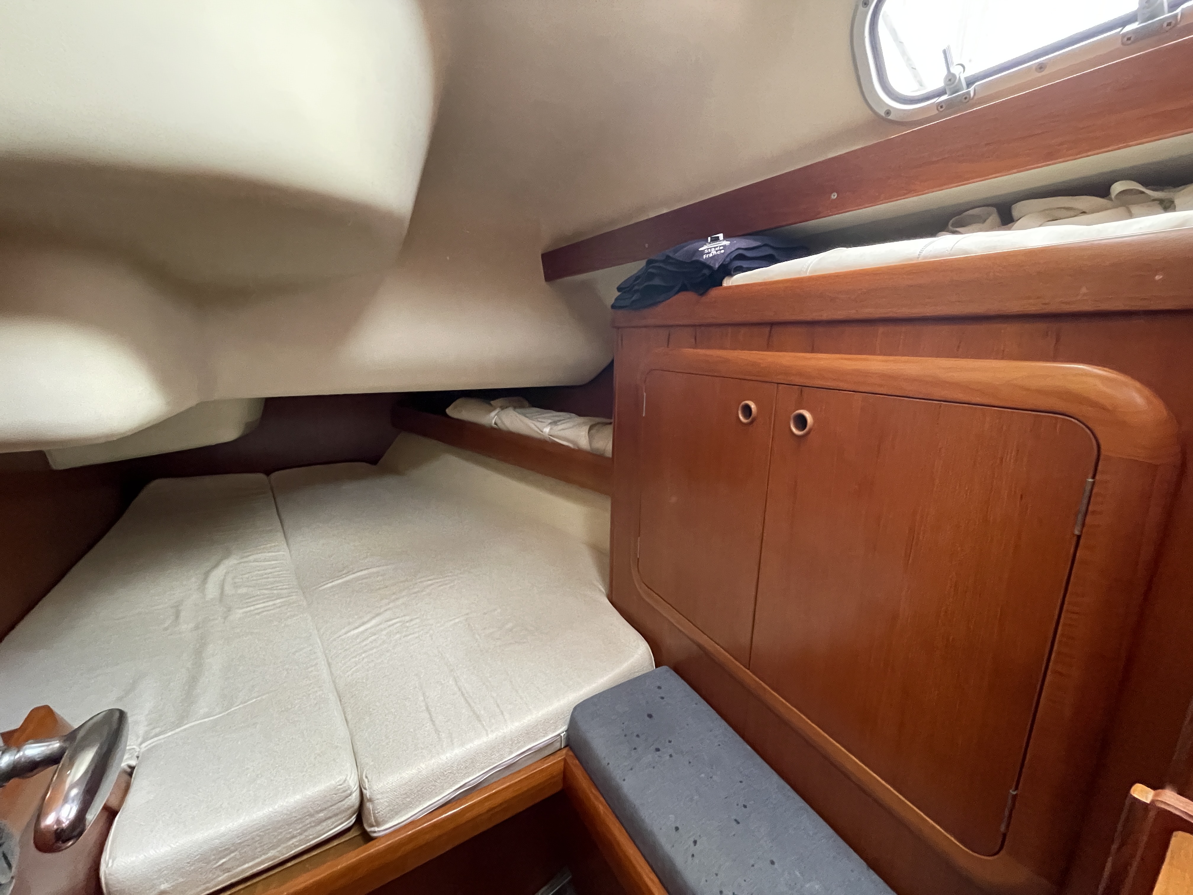 For sale Grand Soleil 43 built in Italy in 2002. This meticulously maintained 2002 Grand Soleil 43, registered in France, has a complete new Sparcraft rig (2023) and recent sails, including a solent and a triradial Delta code. Her hull was completely refitted with Coppercoat in 2023, and she is equipped with a reliable and regularly maintained 56 hp Yanmar engine and a bow thruster. Comfort on board is ensured by three double cabins, two bathrooms, a fully equipped galley, and a complete electrical system with recent batteries.