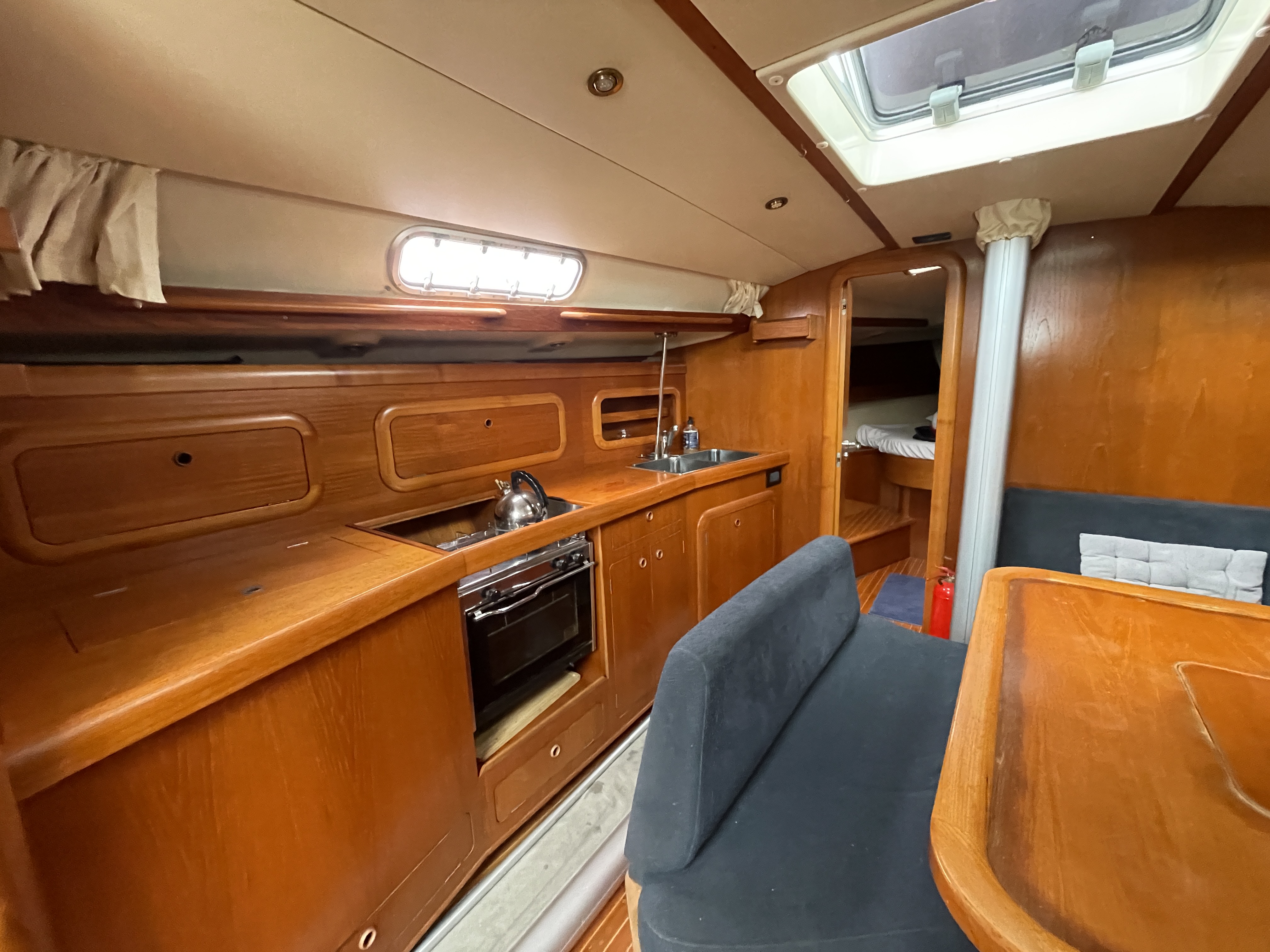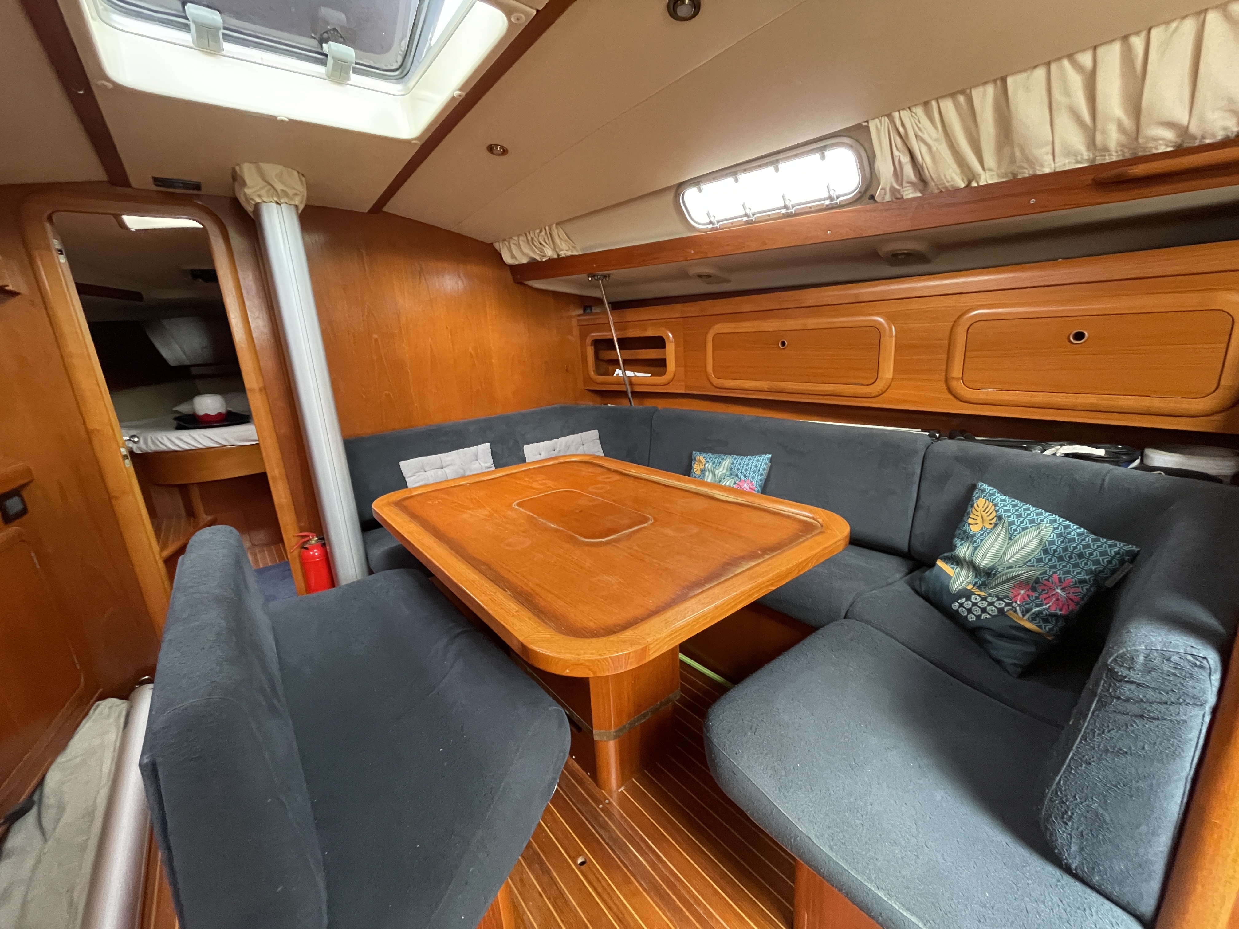 A vendre Grand Soleil 43 construit en Italie en 2002, pavillon français et méticuleusement entretenu, dispose d’un gréement complet Sparcraft neuf (2023) et de voiles récentes, dont un solent et un code Delta triradiaux. Sa carène a été entièrement refaite avec Coppercoat en 2023, et il est équipé d’un moteur Yanmar 56 ch fiable et régulièrement entretenu ainsi que d’un propulseur d’étrave. Le confort à bord est assuré par trois cabines doubles, deux salles d’eau, une cuisine équipée et un système électrique complet avec batteries récentes.