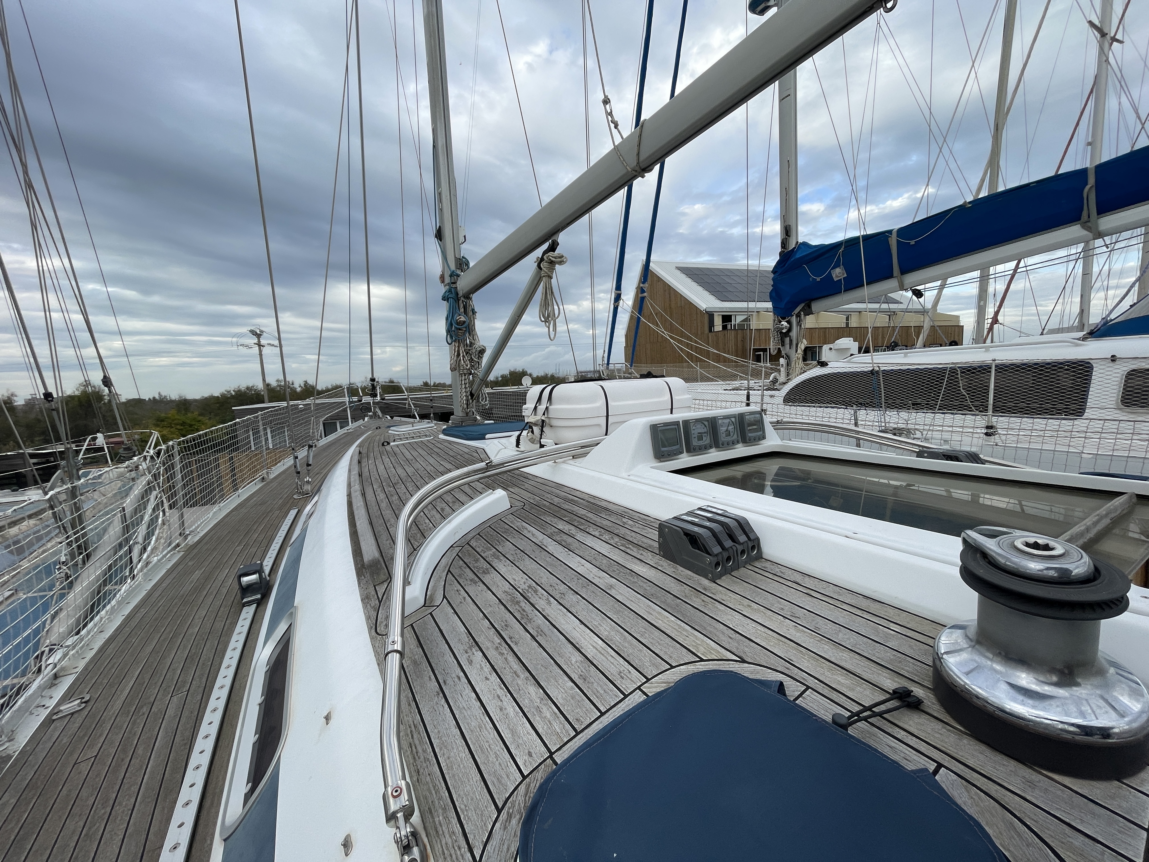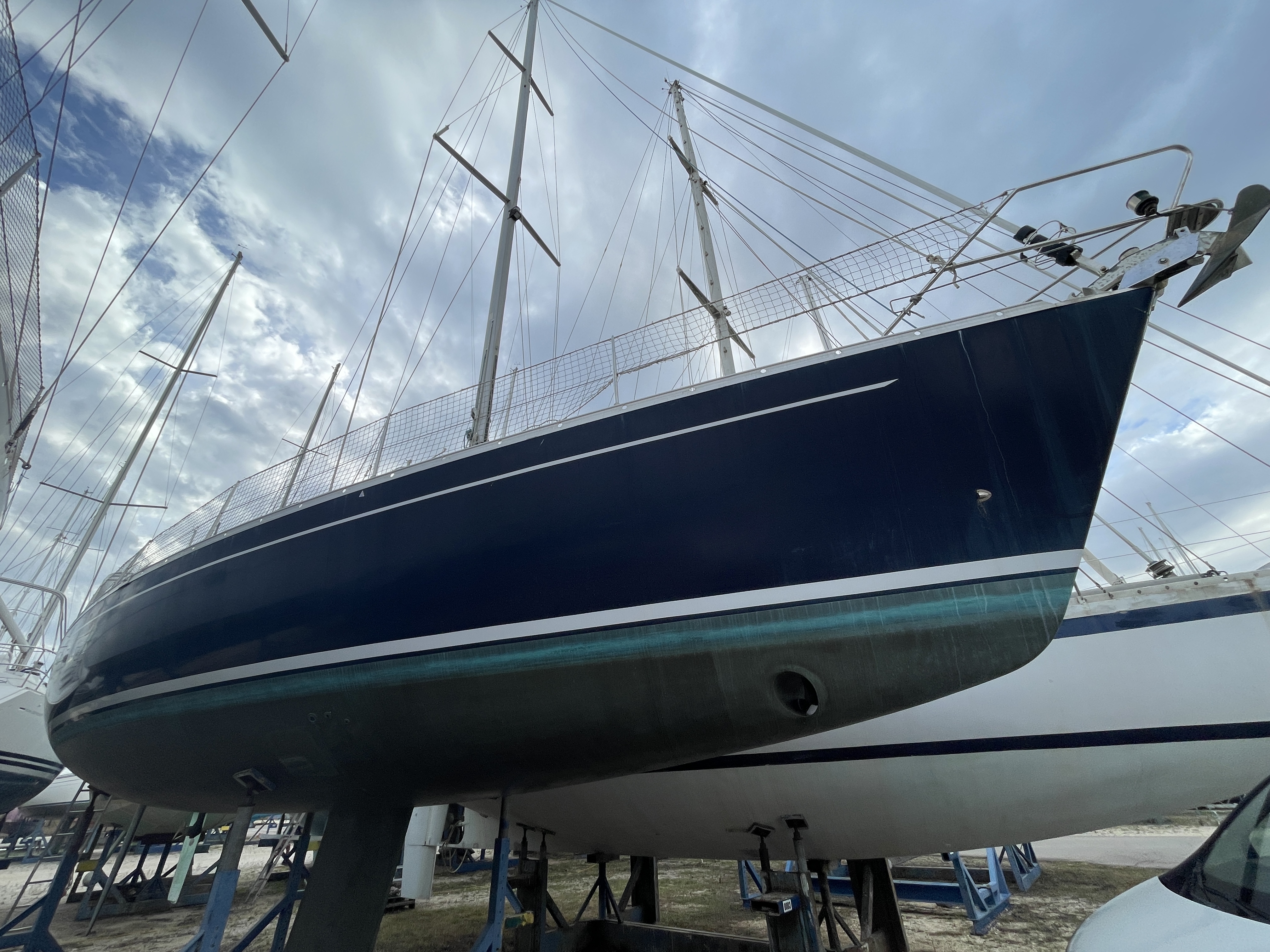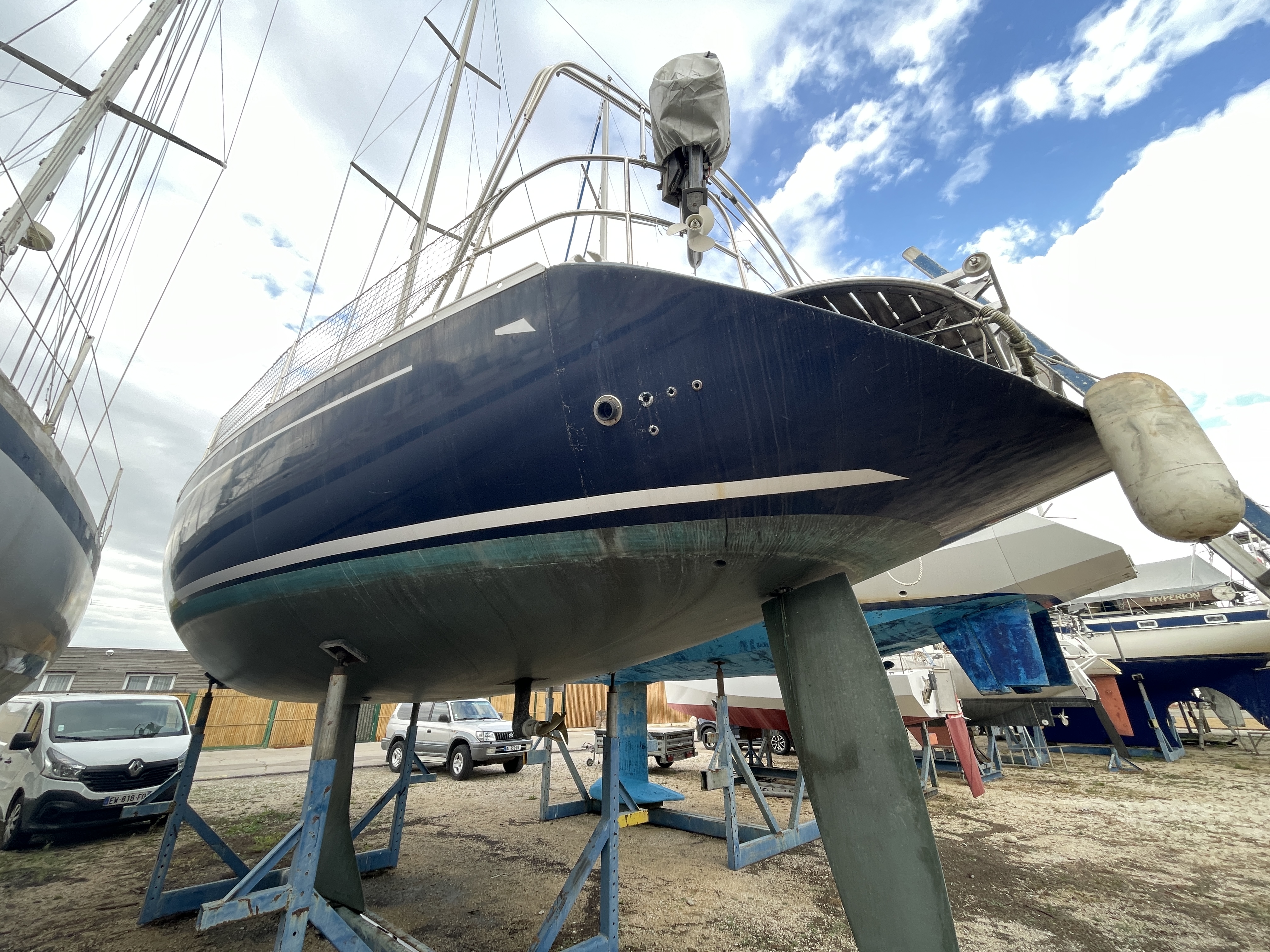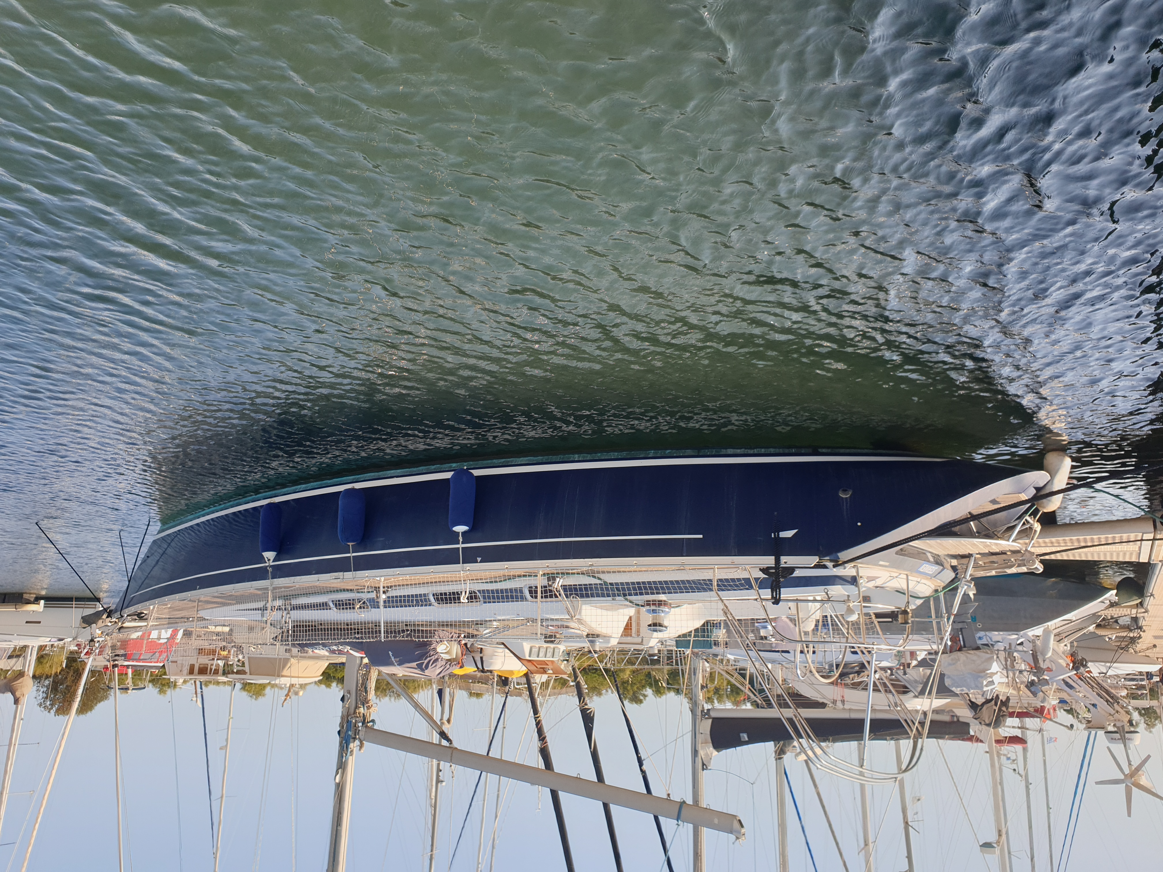Hull: old antifouling stripped, 2 coats of epoxy + 4 coats of Coppercoat (10-year antifouling) applied in 2023