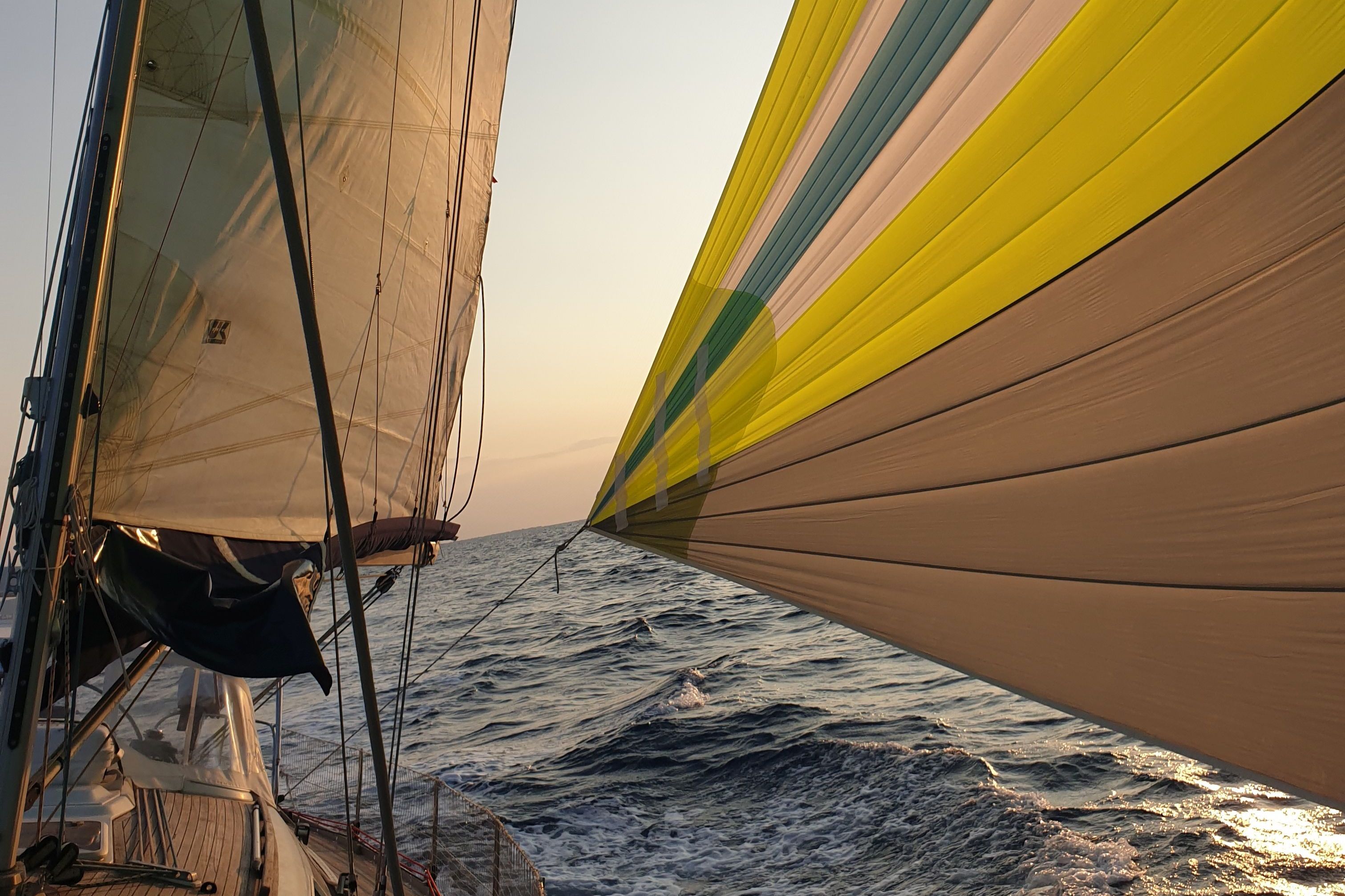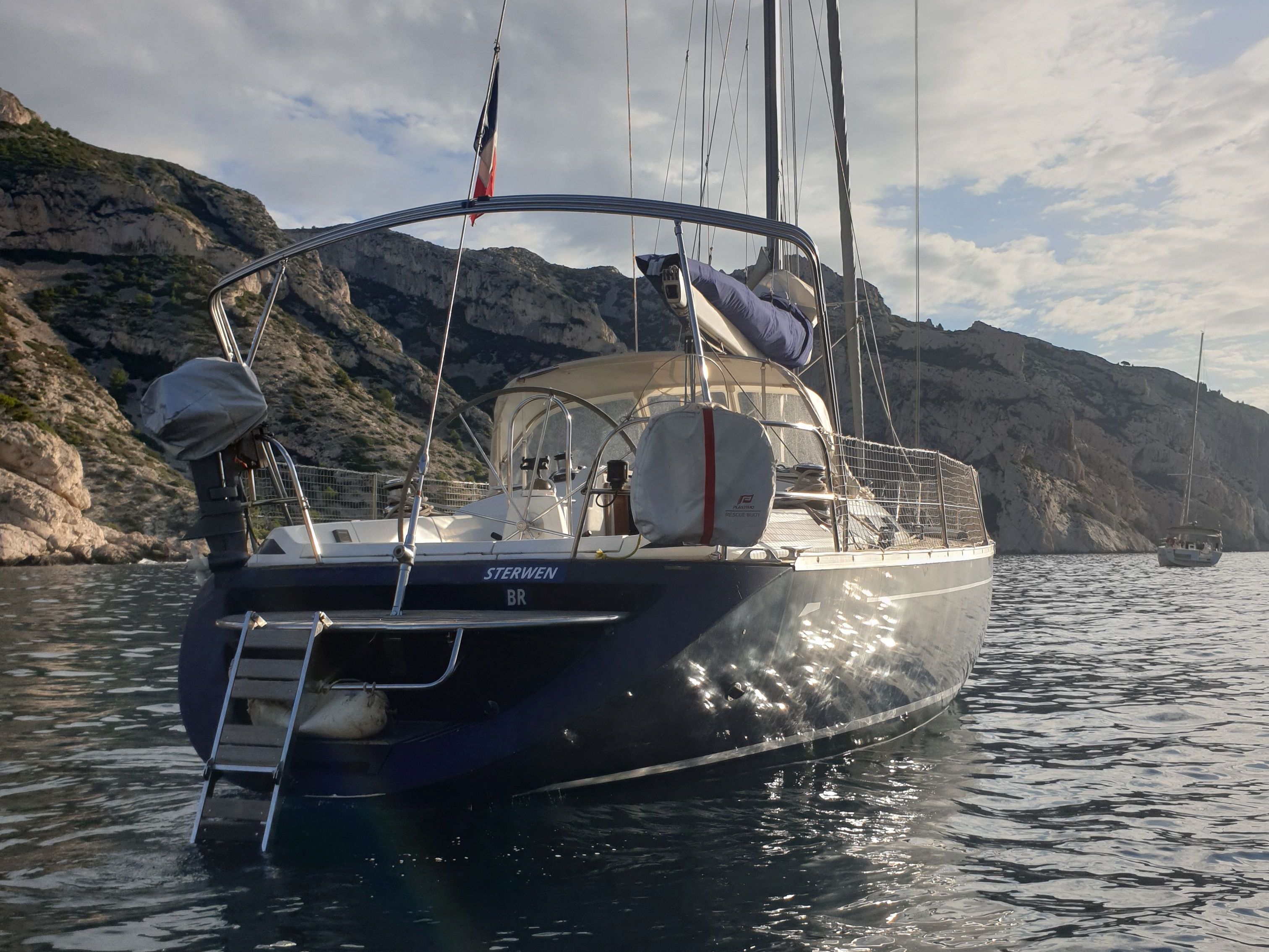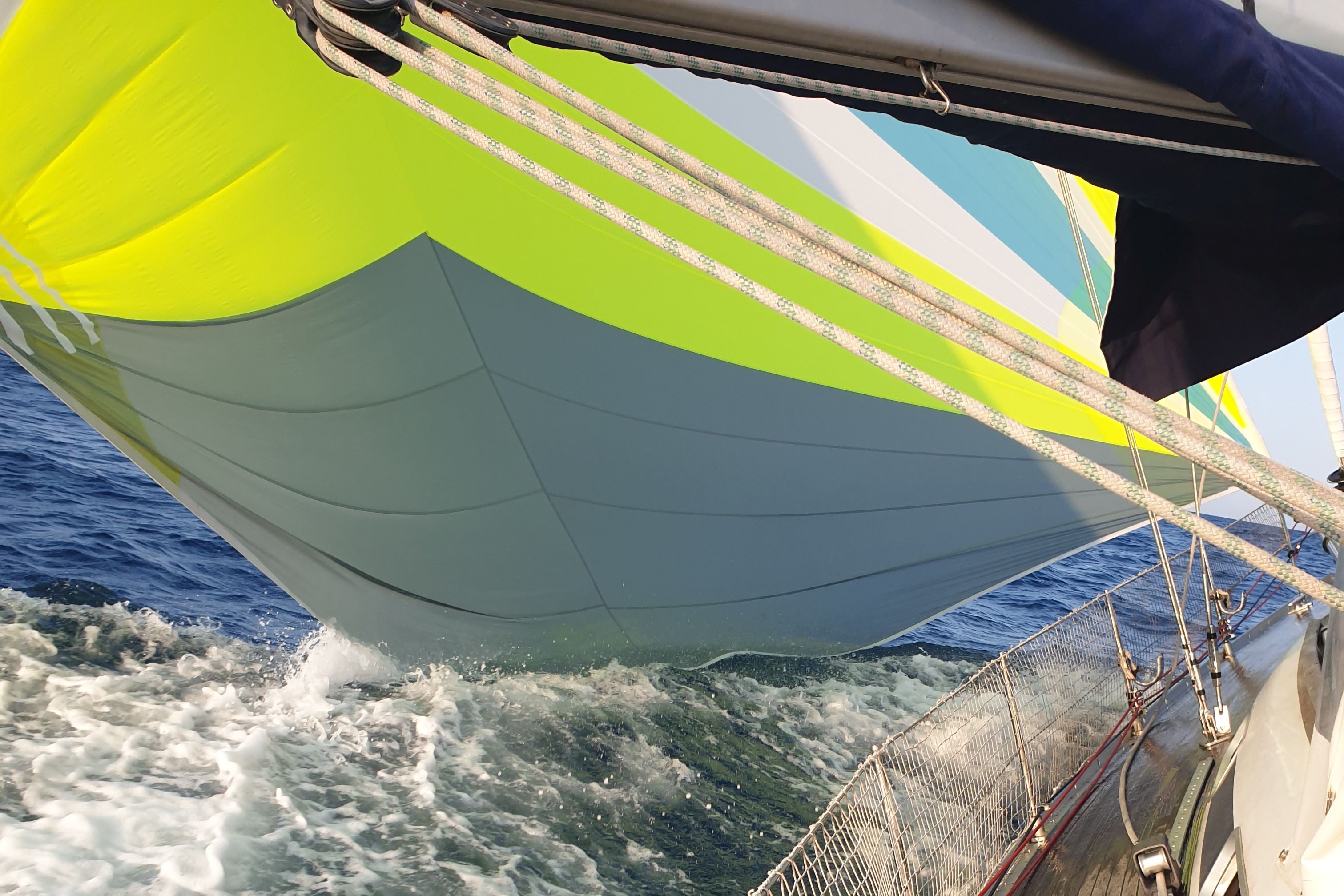 Delta 110 m² triradial cut, 1.5 oz nylon “Contender” fabric, Profurl Nex 2.5 furler, 99 mm aluminum Selden bowsprit (2023)