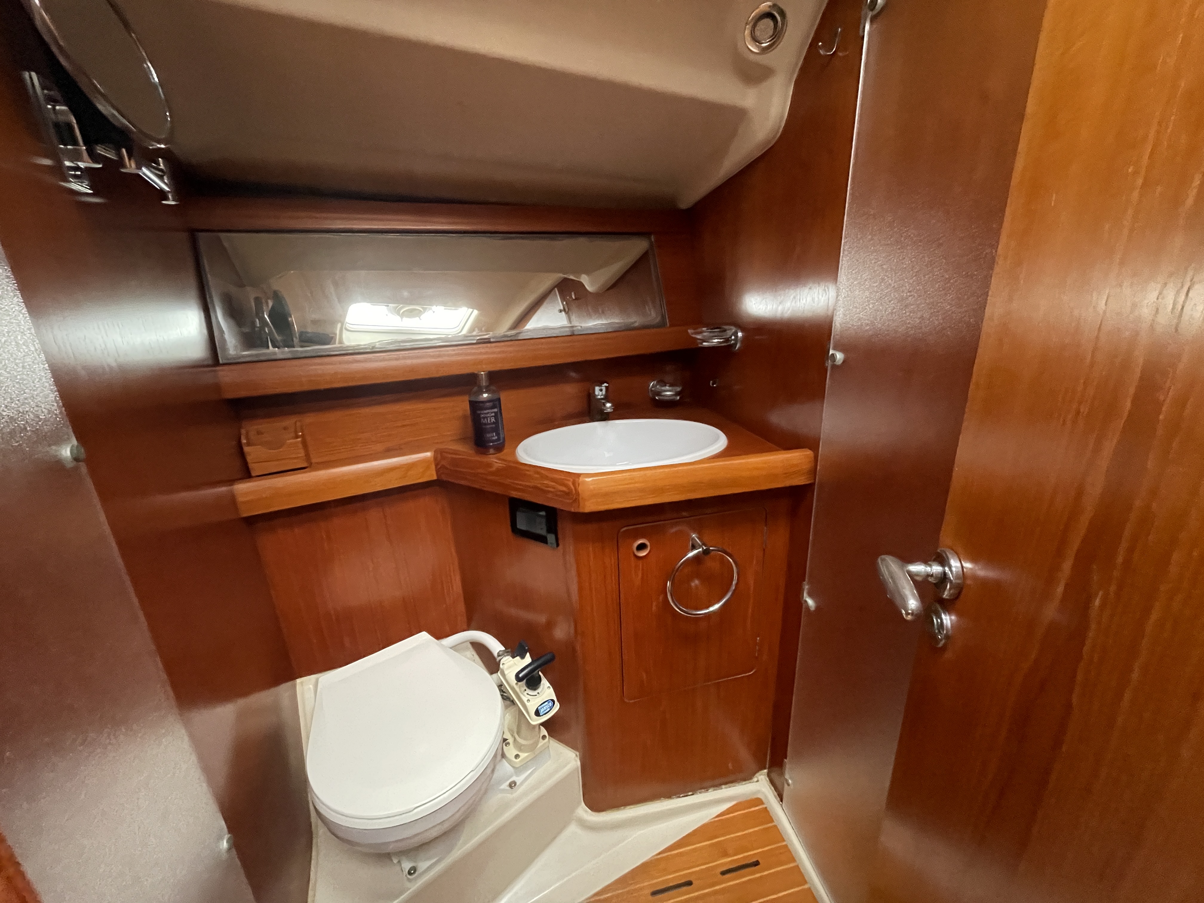 Pompe de cale manuelle située dans le cockpit.