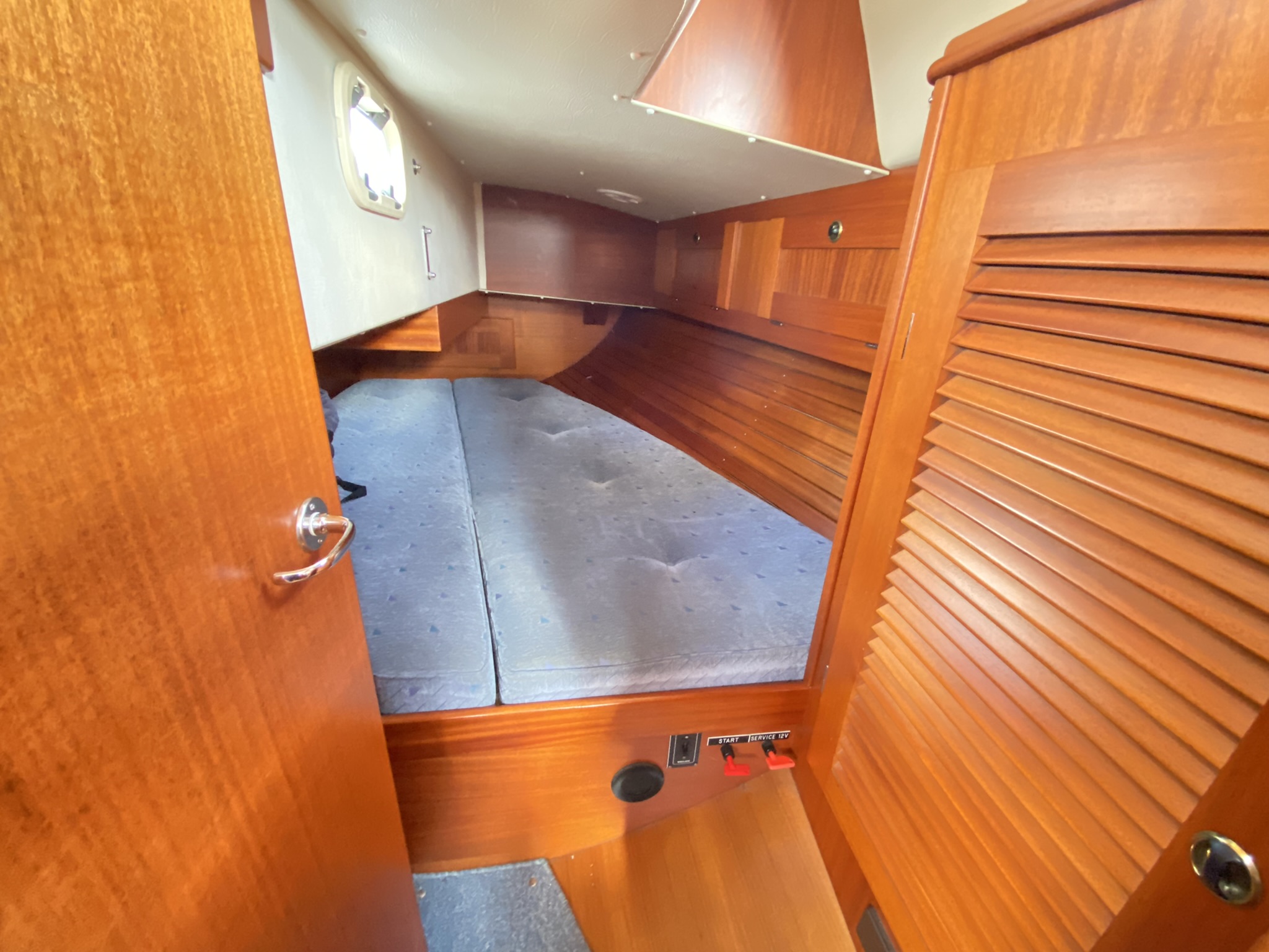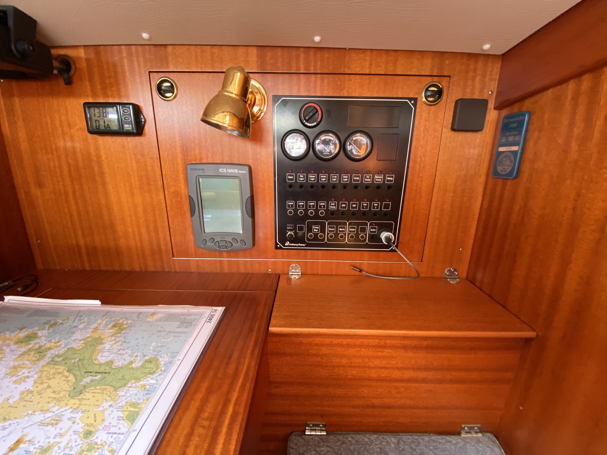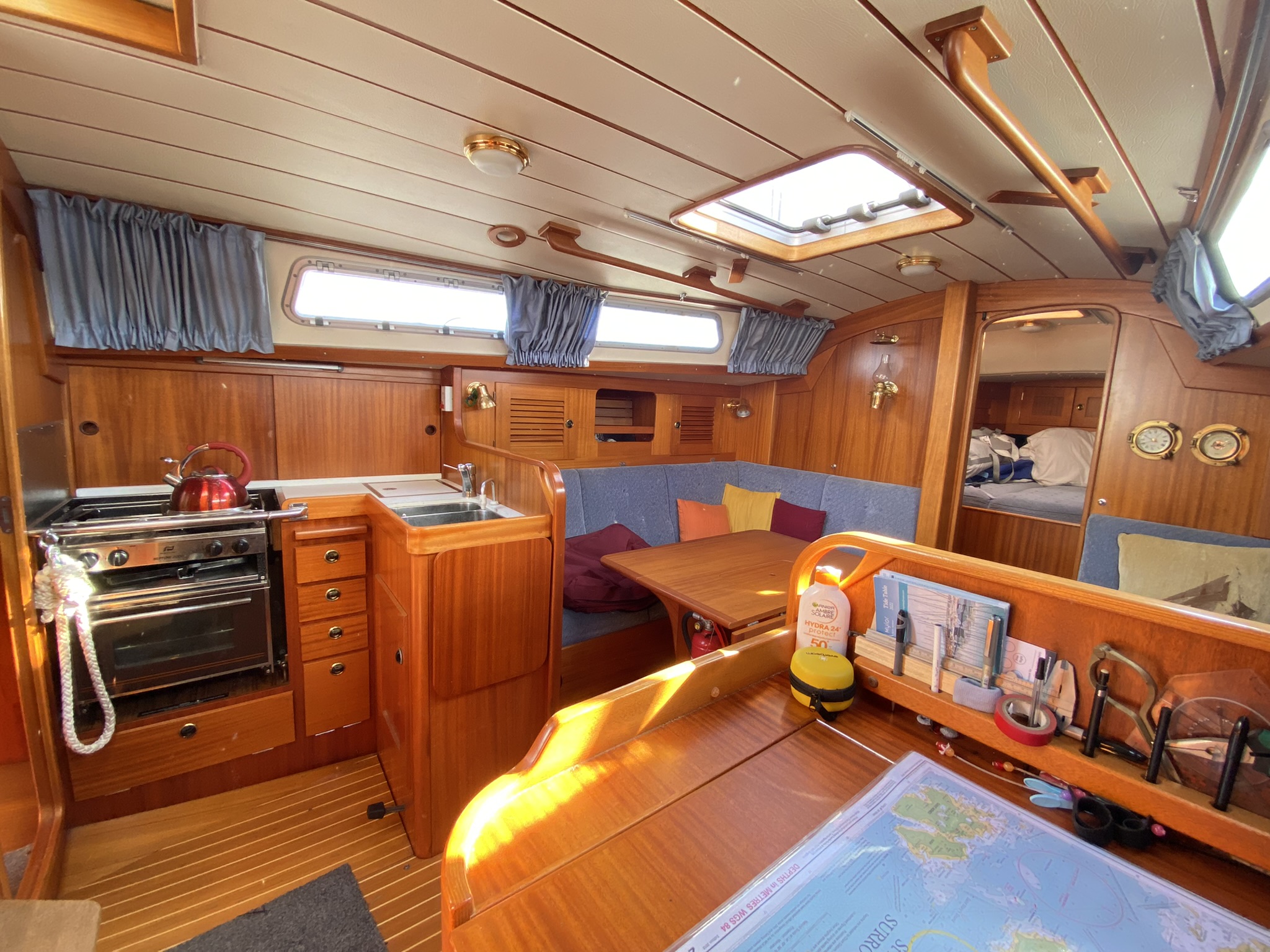 She has a big specification that includes teak decks & coachroof. Also Webasto Airtop heating, hot water system, holding tank, solar panel, electric windlass, sprayhood & extension, Raymarine autopilot pack & more.