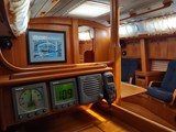 For sale Hallberg Rassy 43 MKI, Launched in September 2009. Stored inside from delivery in August 2006 for over three years due to health issues of the first Owner. This luxurious Hallberg Rassy boasts a stunning teak interior and signature easy chairs. Hydraulic furlers on all three sails and electric winches enhance the ease and pleasure of sailing. This provides “Push Button Sailing” from the comfort and safety of the helm position protected by the hard top dodger. Redundant electronics for safety and reliability on your passage.