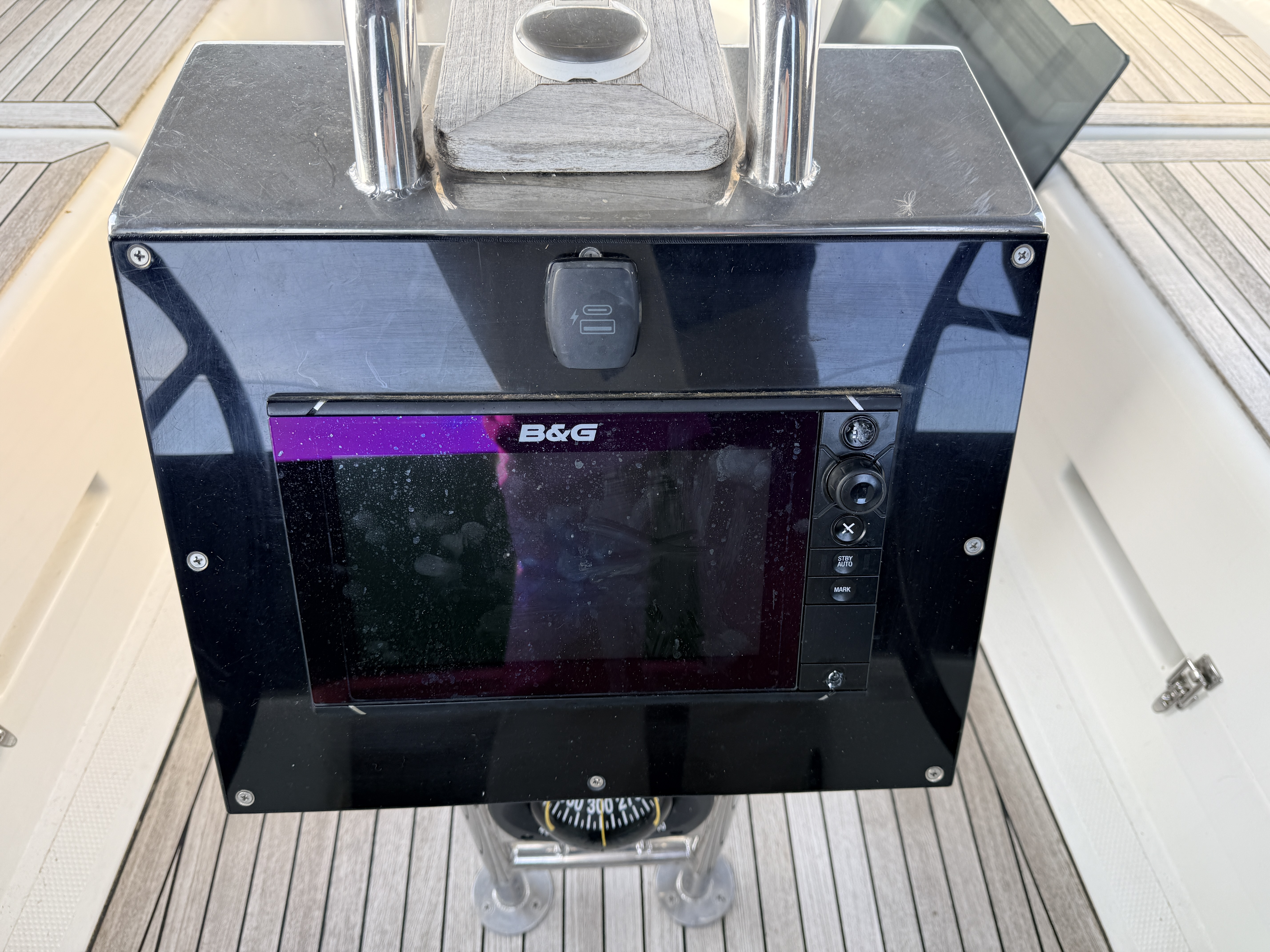 B&G Zeus 9 inch chart plotter mounted in the cockpit table