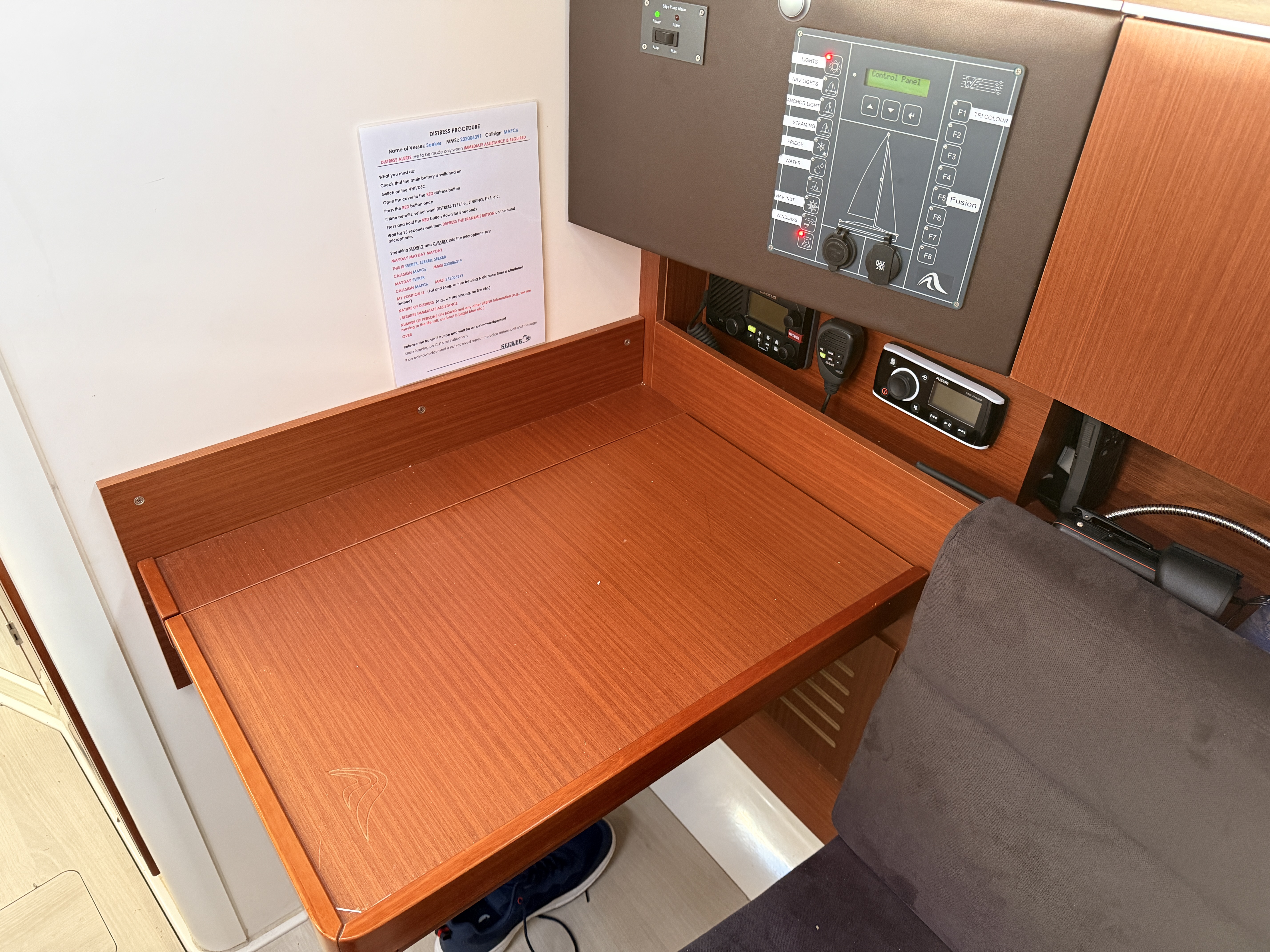 Seeker has the mahogany interior joinery contrasting with the light