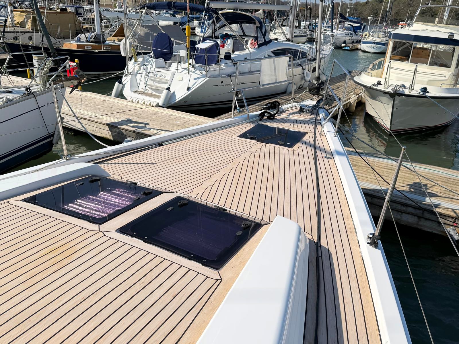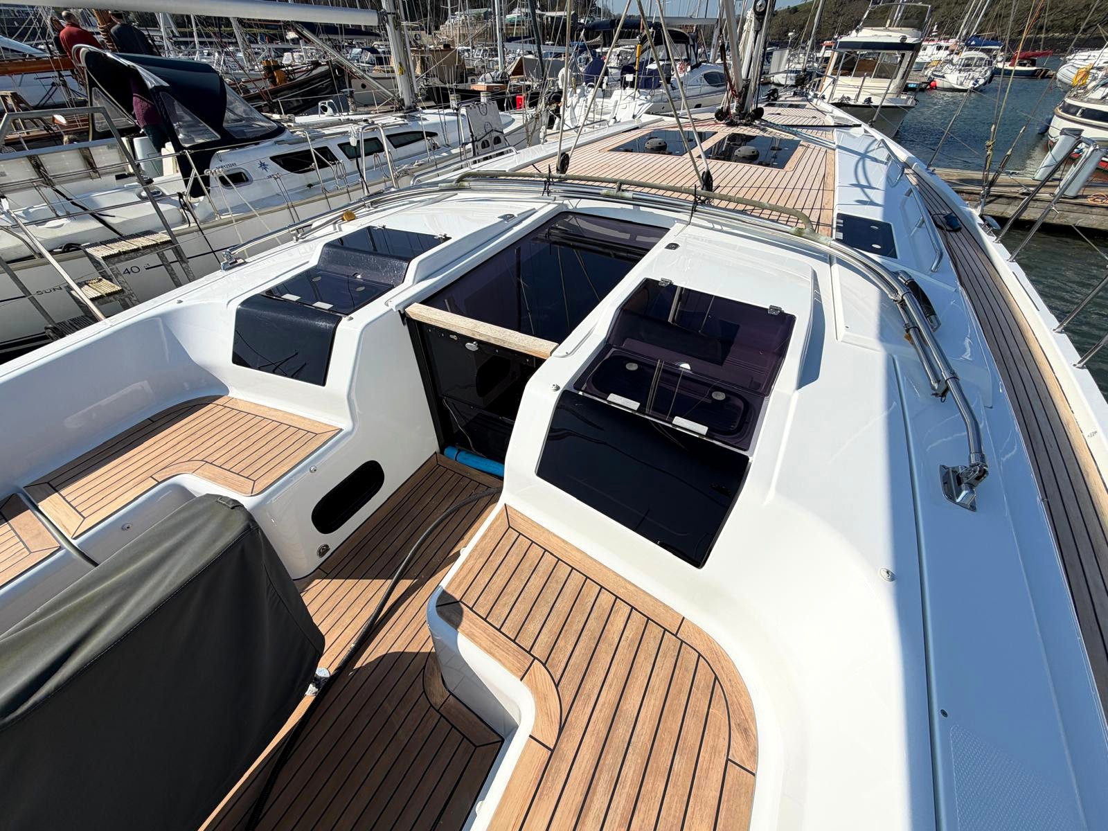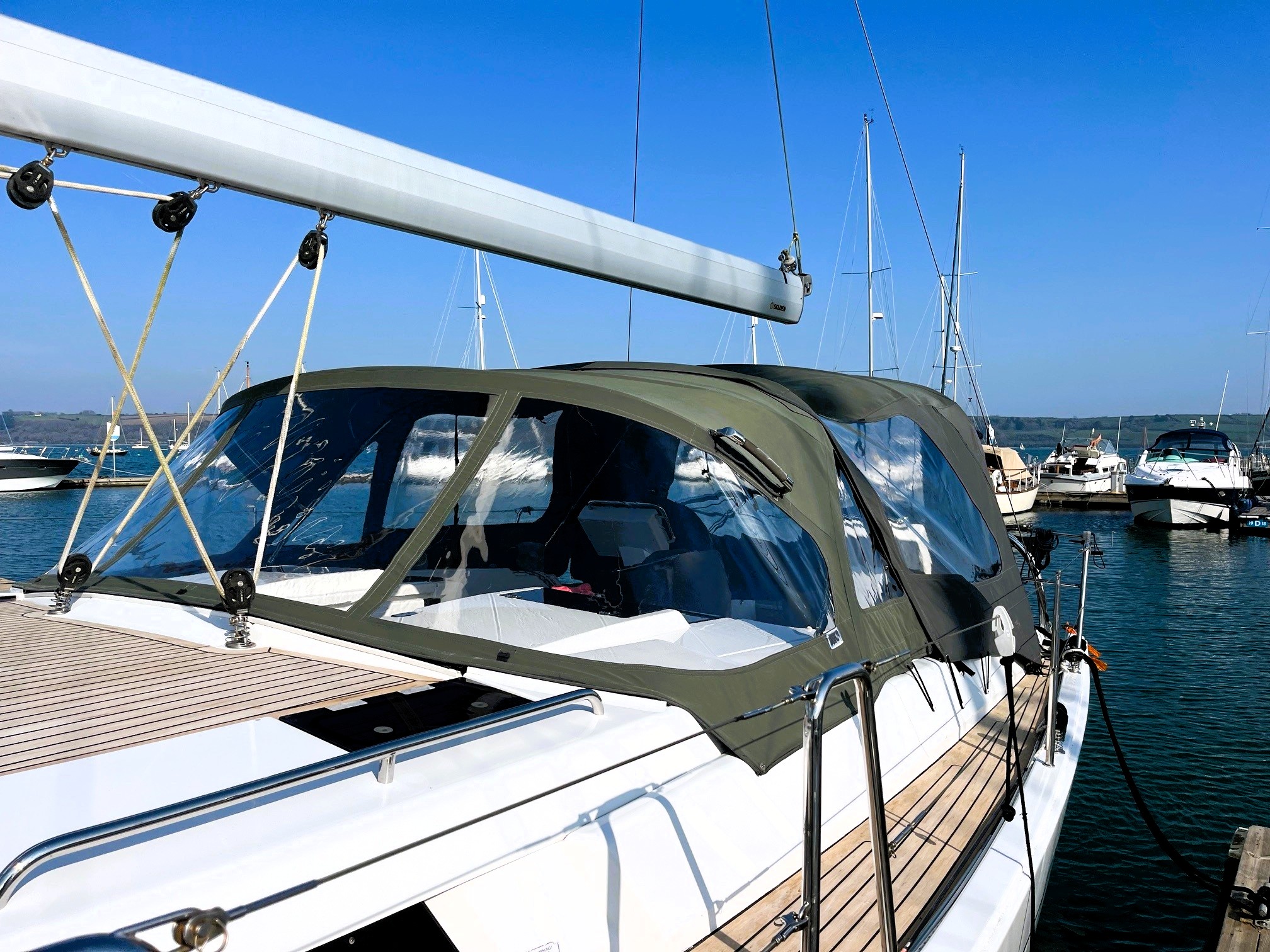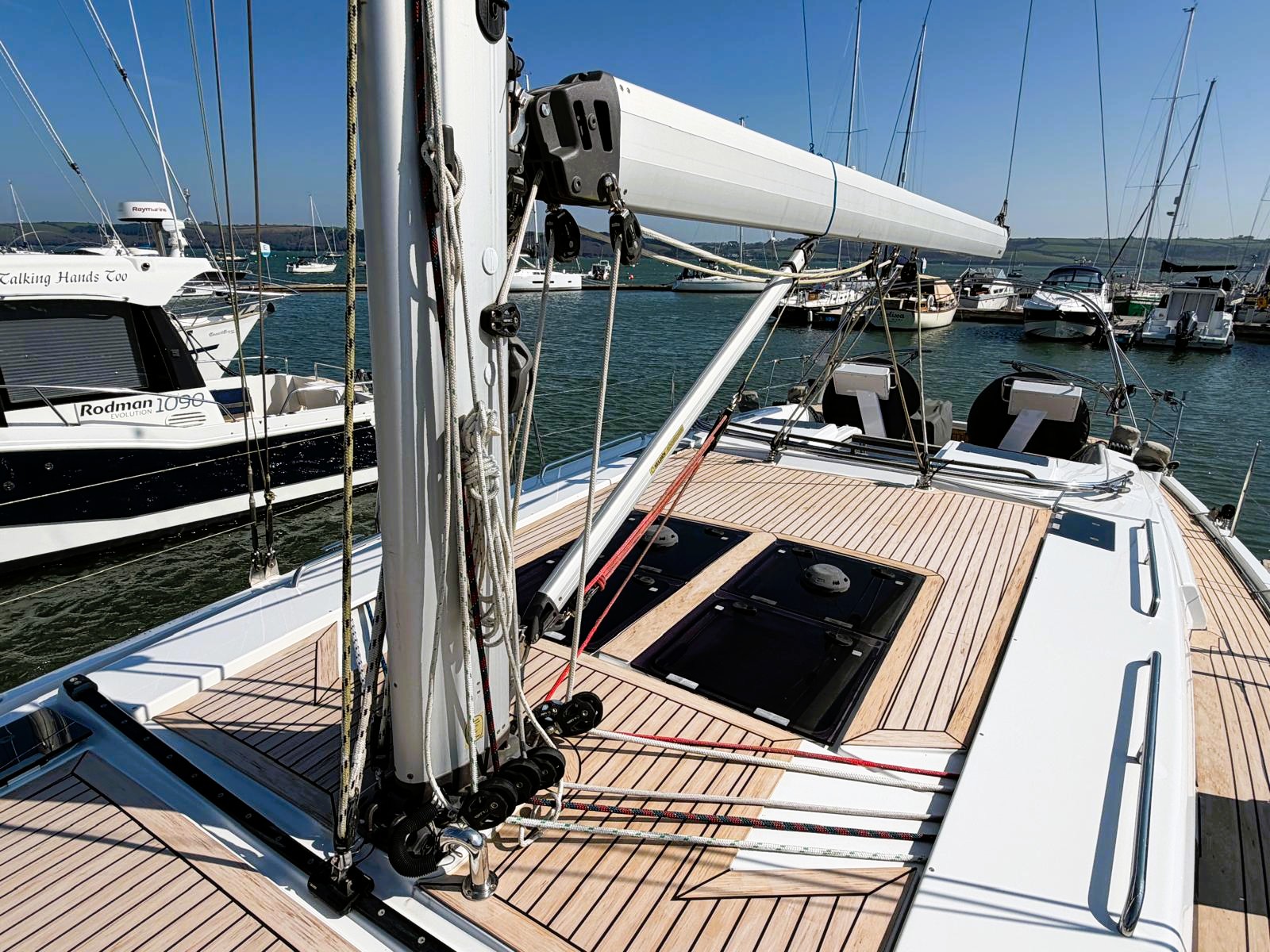 Self-tacking jib and clean deck layout — sail short-handed with confidence