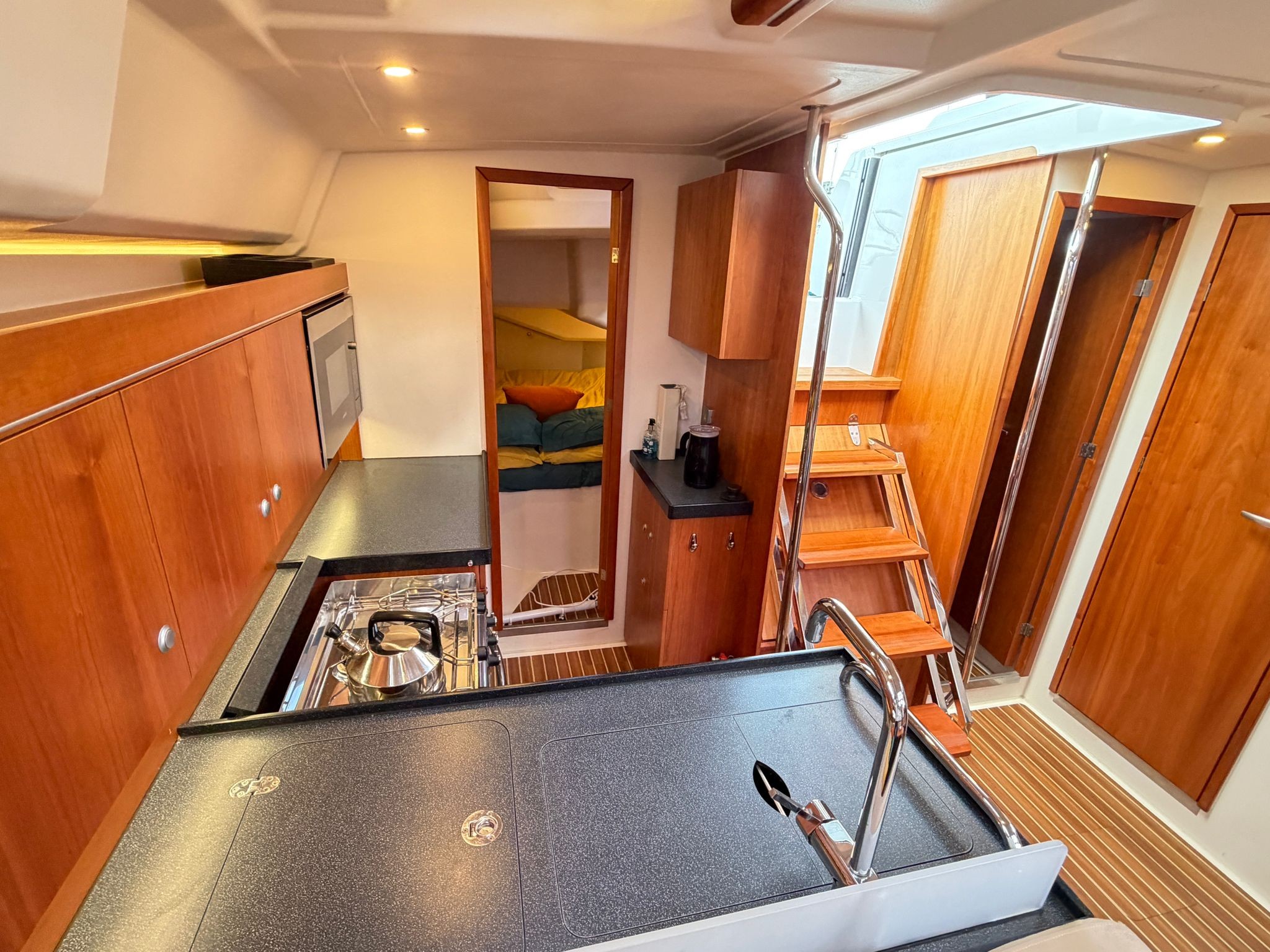L shaped galley on starboard