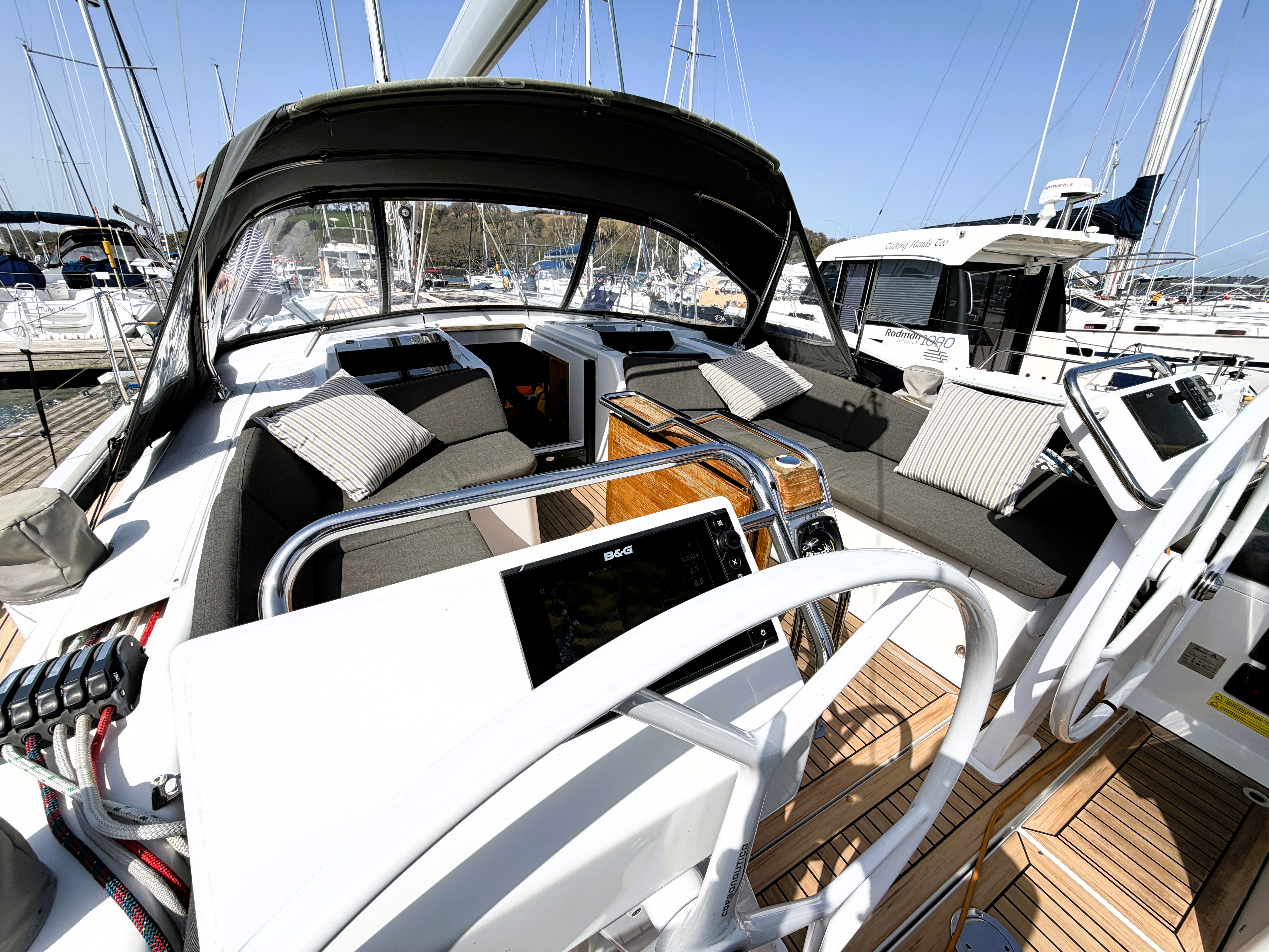 A stunning example of this extremely capable cruising yacht. Designed as a cruising boat with a pedigree sailing performance yet all the luxurious comfort and ease of sailing one would expect from a modern family boat. Her spacious and bright interior provides ample accommodation with a large owners cabin and ensuite heads and shower forward making extended stays aboard a pleasure. Lightly used from new and presented to the market in excellent condition throughout.