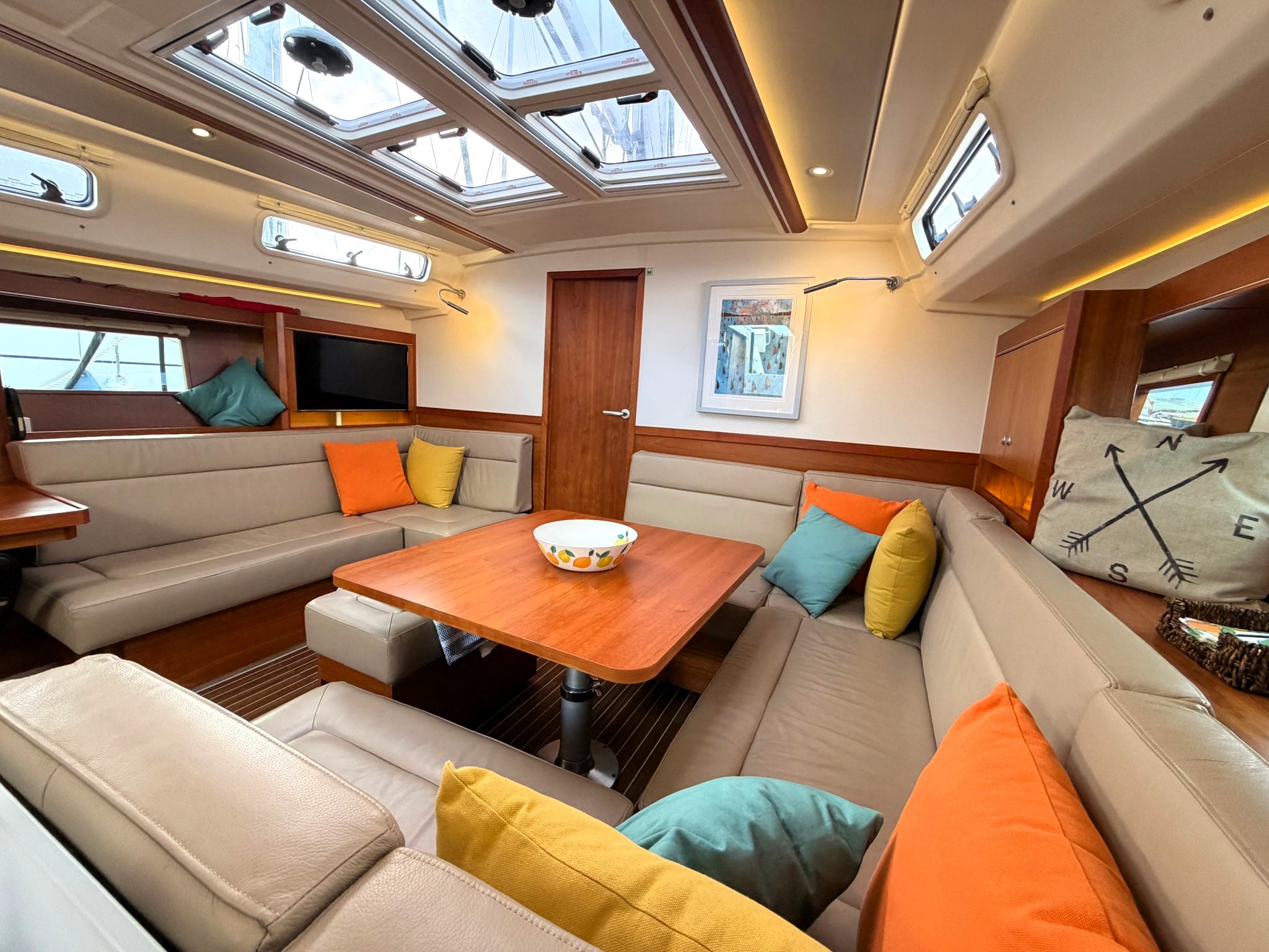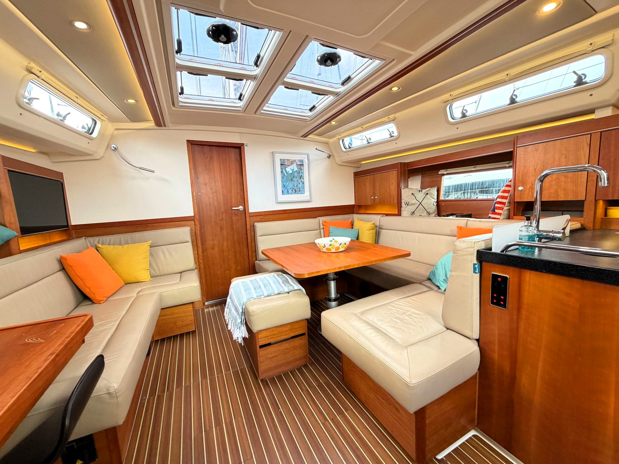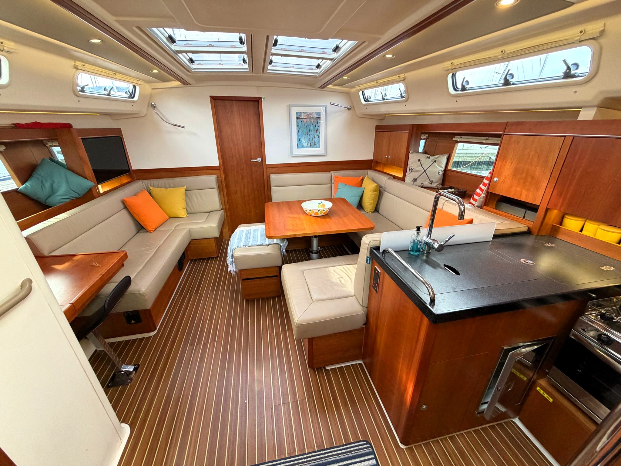 Saloon with U-shaped settee on starboard