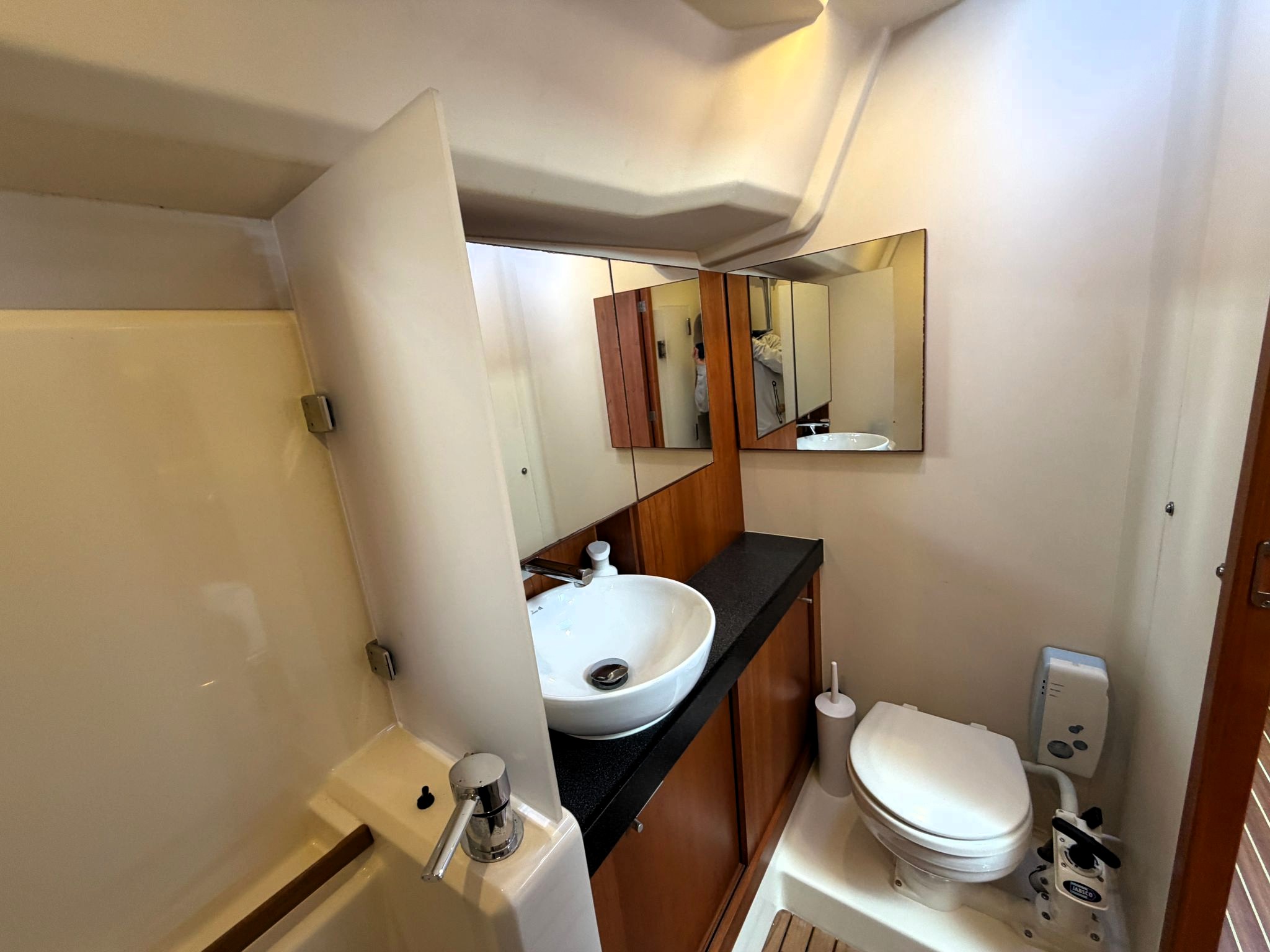 Jabsco electric toilet and wash basin on port side