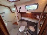 En suite access from Forward Stateroom and access from forward passageway. Dometic Sealand wc. Washbasin with hot & cold mixer tap. Hot & cold shower in a separate compartment. Shaver point. Cupboards. Mirror. Opening hatch and two opening ports.