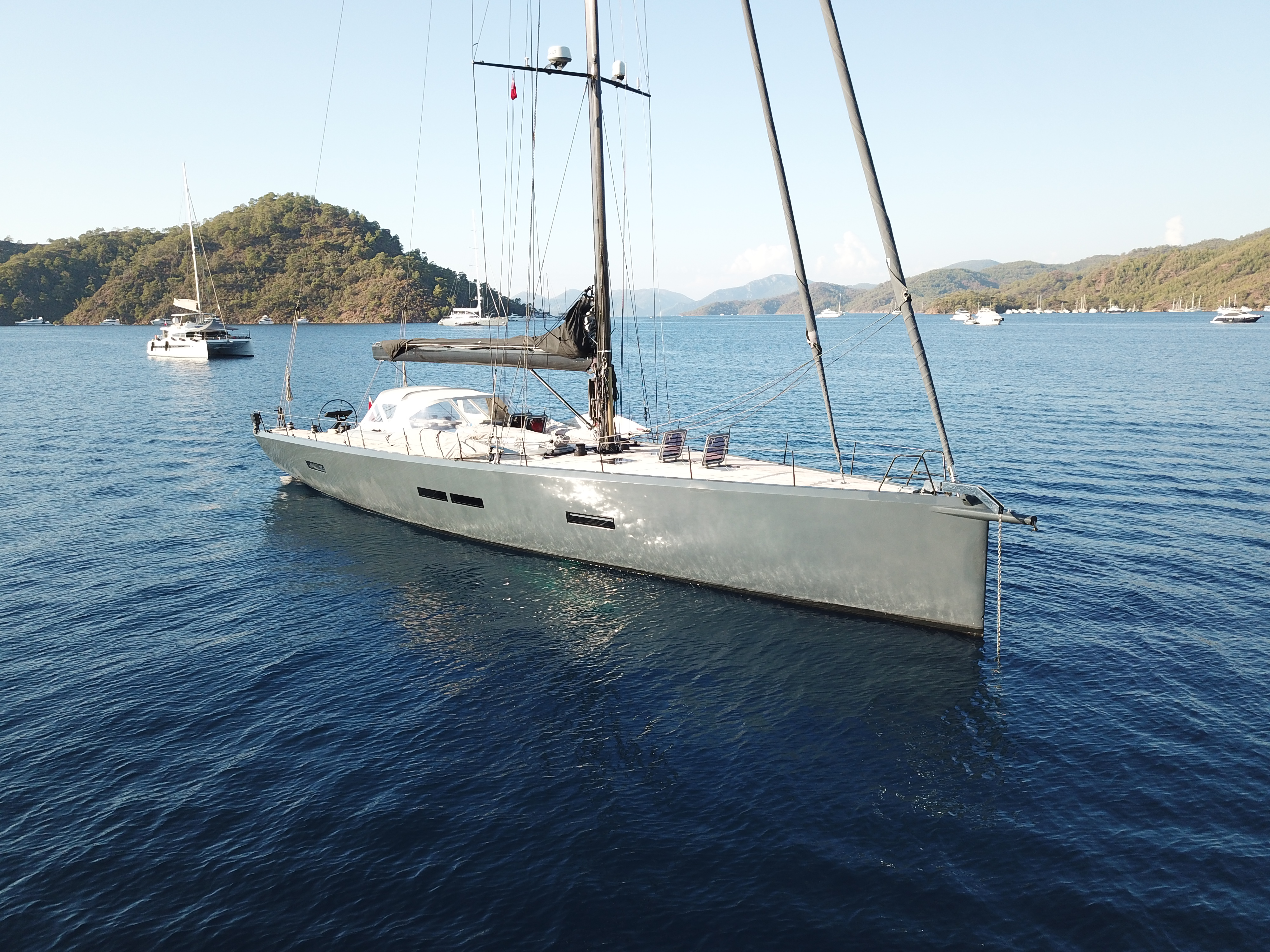 With her Lifting Keel she allows high performance sailing with 5,00 m draft and the possibility to reach shallow waters with only 3,30 m draft.