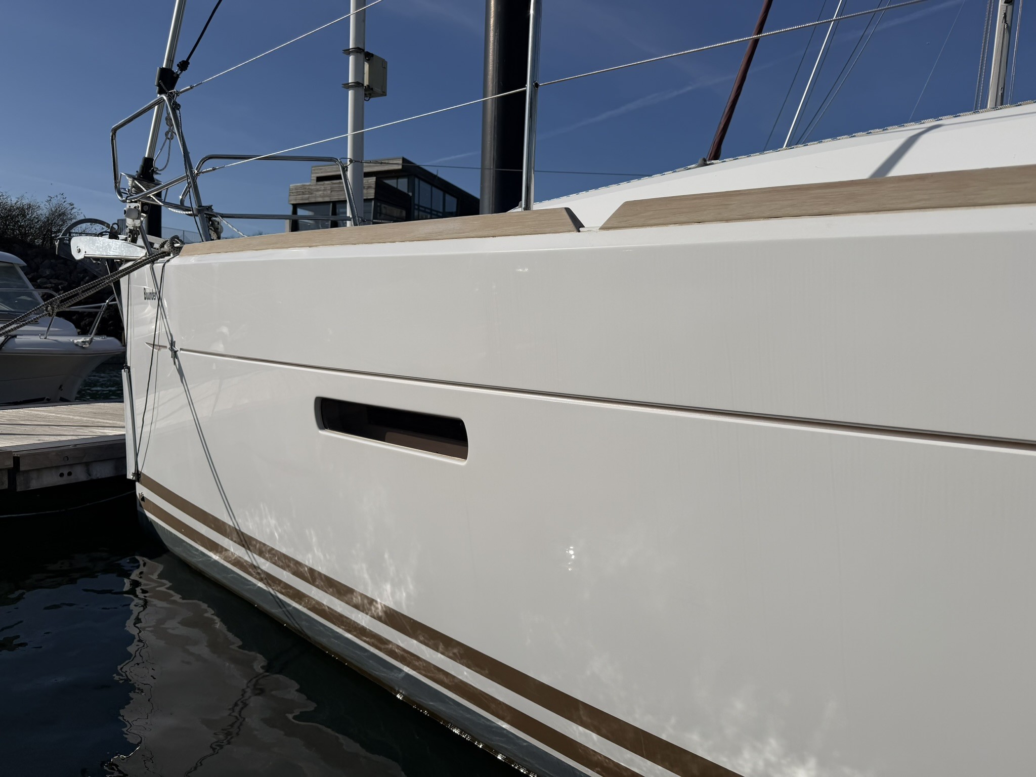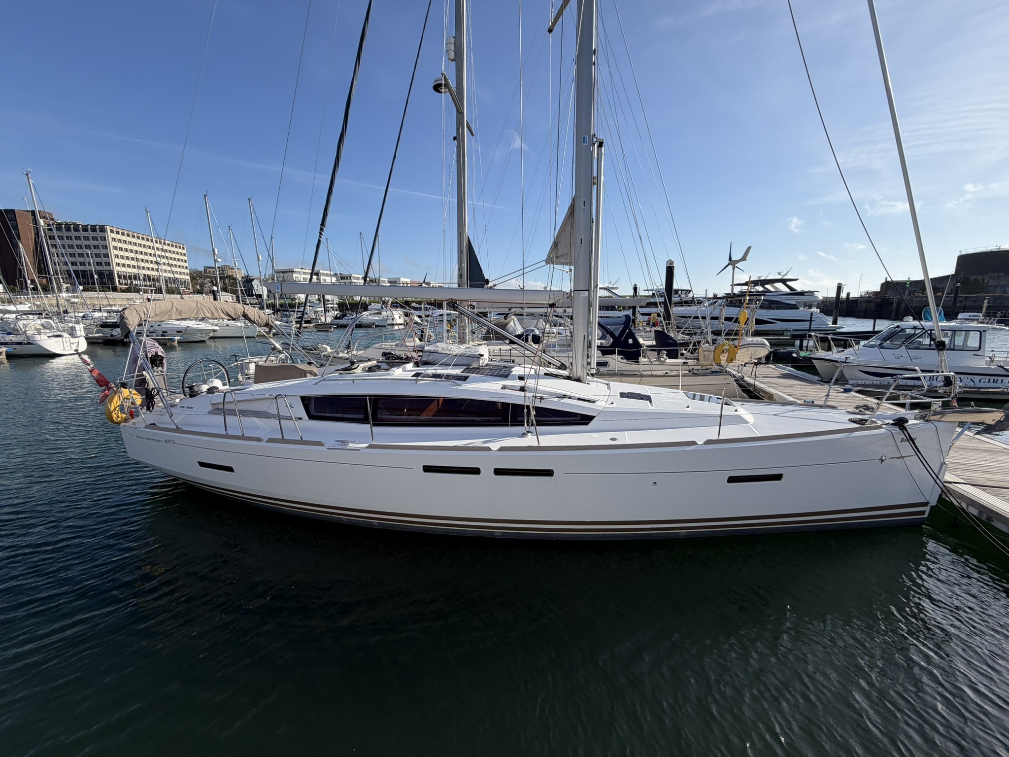 Jeanneau Sun Odyssey 41 DS built in 2013 to a 2014 model year.- This is a wonderful example of the well-regarded DS range, known for its sleek, modern design, featuring clean lines and a bright, open interior. With an emphasis on light and space below decks, this Owner's version has a large aft master cabin and spacious VIP guest cabin forward divided by an airy saloon. A Yanmar 40hp engine and new saildrive diaphragm, 360 Docking System with joystick control, bow thruster, Code 0 with snuffer, electric winch and furling main makes an attractive package for someone looking to expand their sailing horizons without needing lots of crew. Full inventory includes Raymarine electronics with autopilot and AIS, solar panels, liferaft, Bose sound system, dinghy and outboard.