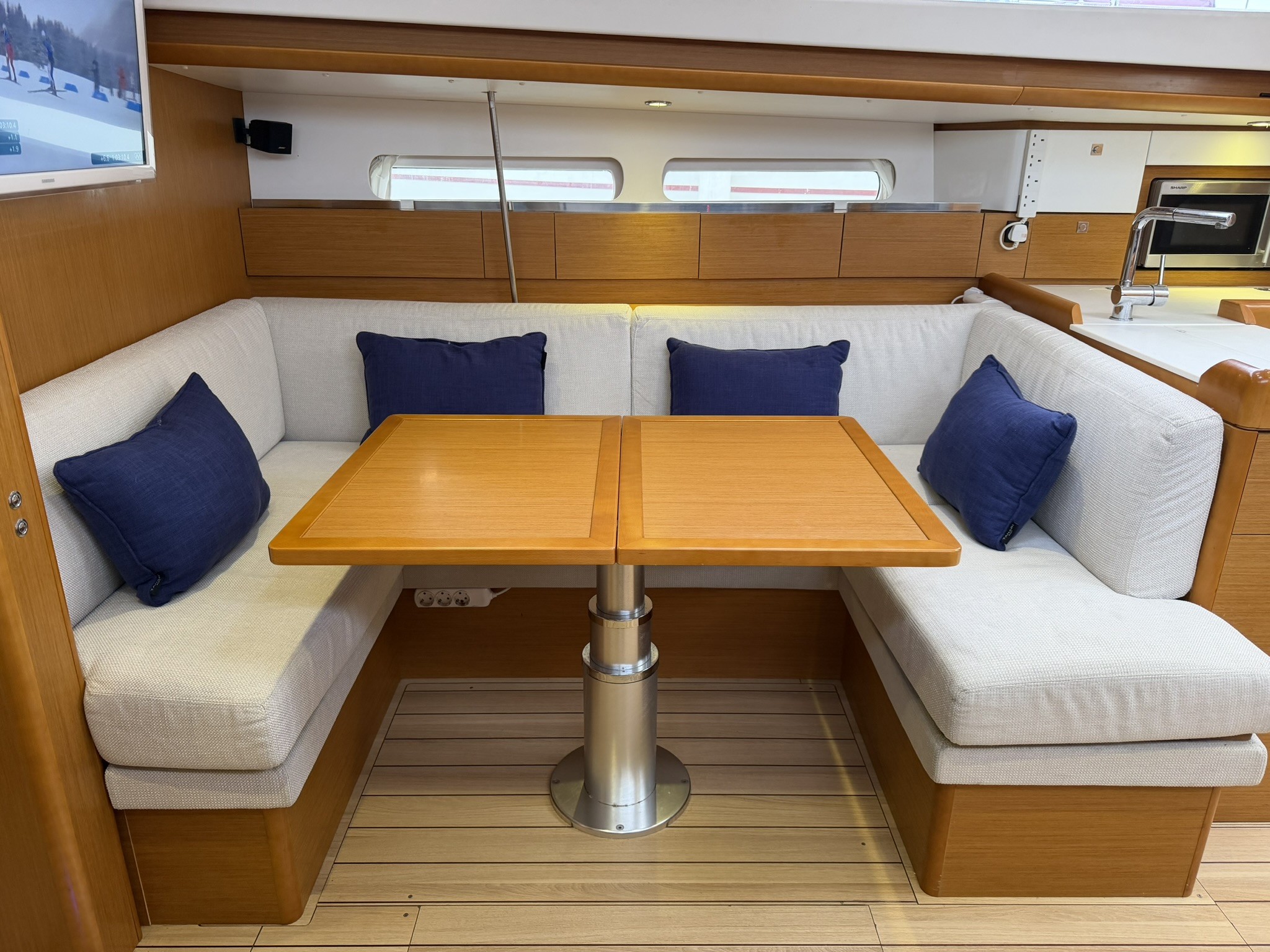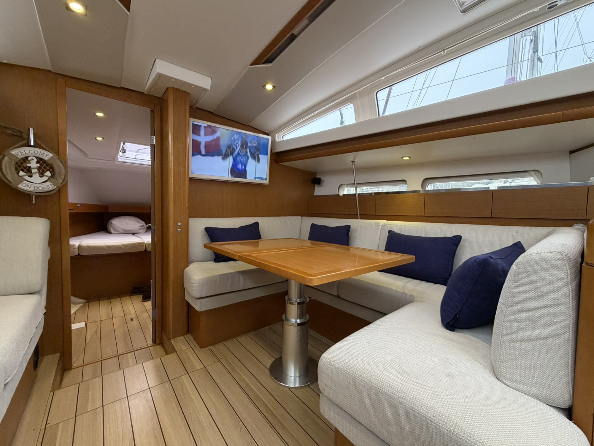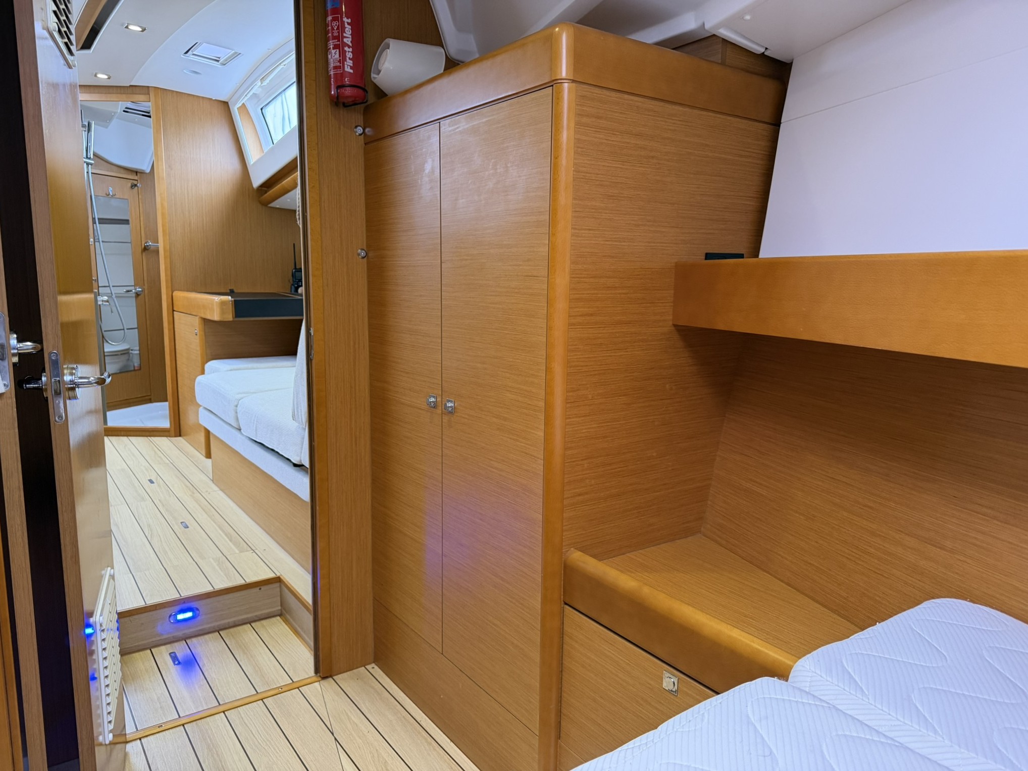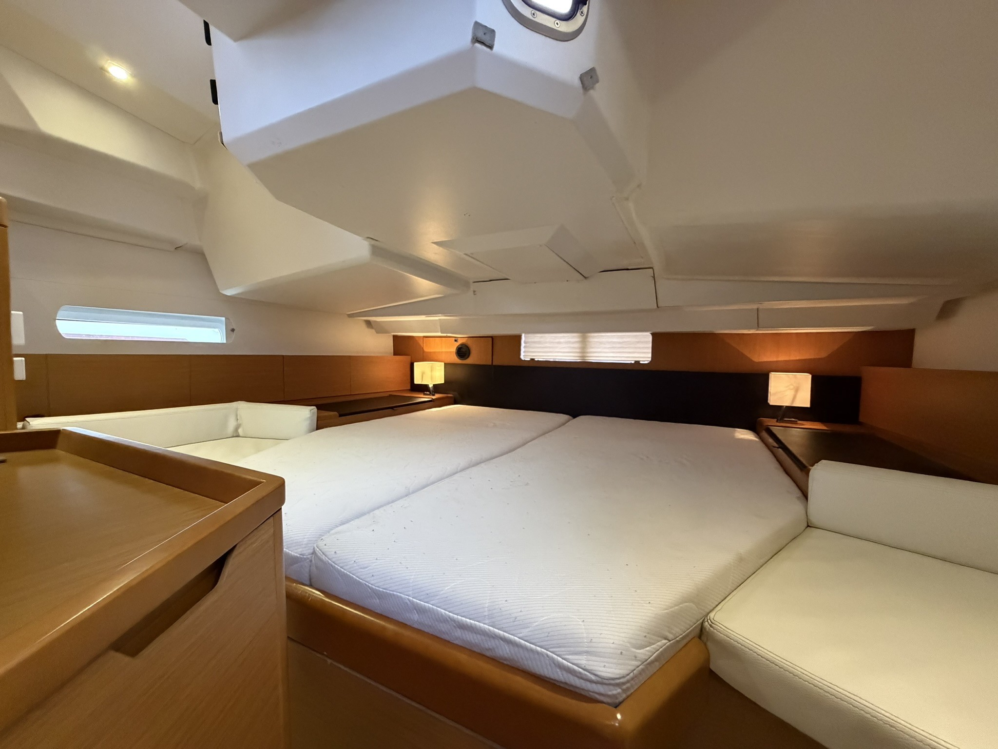 The Sun Odyssey 41 DS was designed for relaxation and comfort, but retains the thrill of responsive sailing. A spacious Owner’s cabin aft features an ensuite head and shower compartment and plenty of storage for life on board. Forward, a VIP guest cabin with private head compartment provides guests with the privacy and comfort of home. Whether cruising, living aboard, or entertaining friends, you will find functional and aesthetic design in every detail.