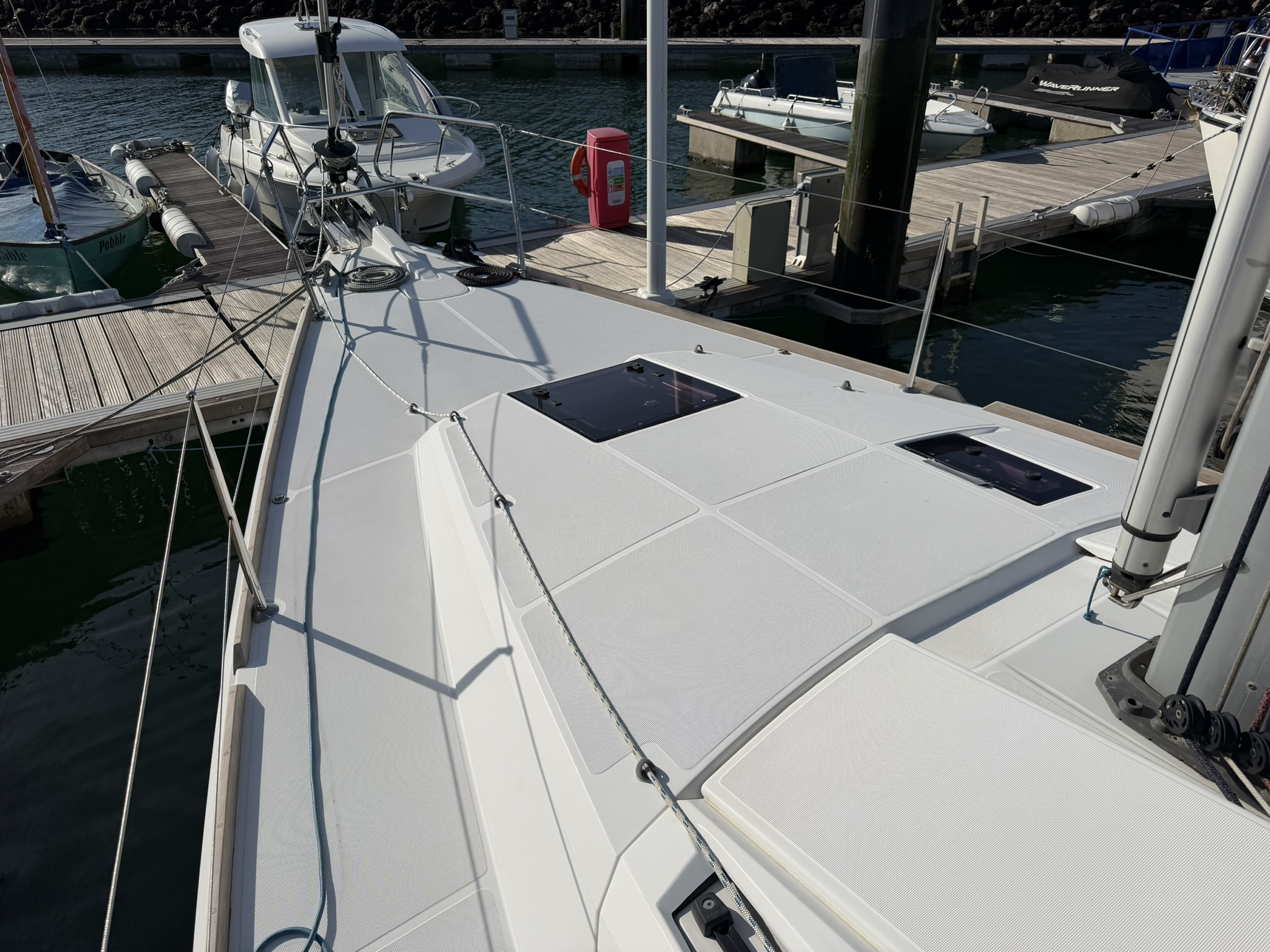 - Stainless-steel stanchions with twin guard wires (port and starboard side gates)