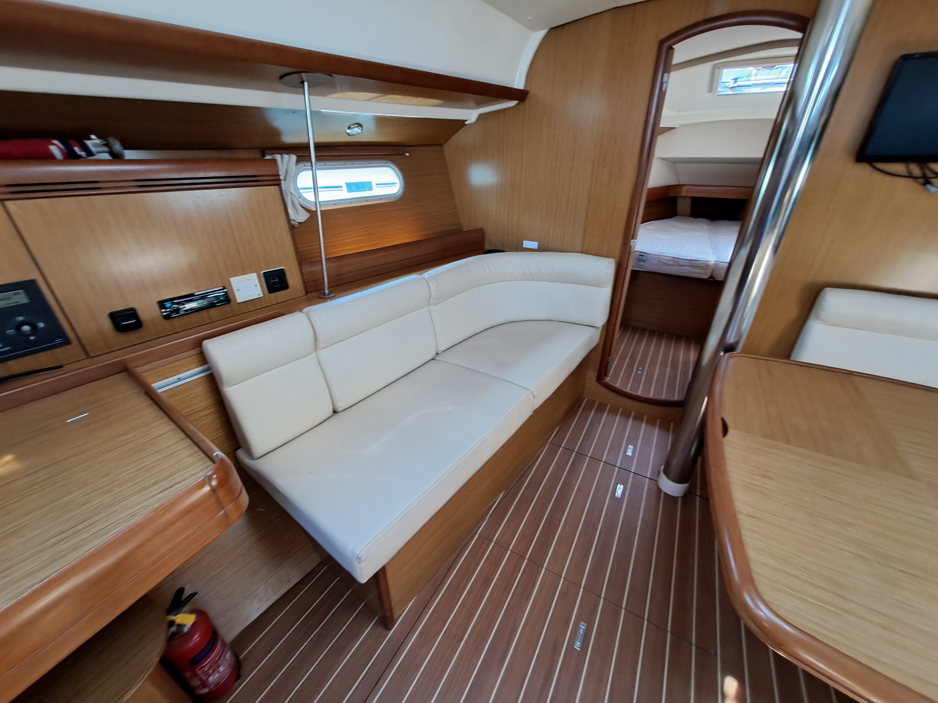 Nefertari is the performance version of the Jeanneau 42i, featuring a slightly deeper keel, a taller mast, an adjustable backstay, and a feathering propeller. This particular example is the 3-cabin / 2heads variant offering accommodation for up to 9 in 3 cabins plus saloon, she is very well appointed and equipped with many other additional options including bow thruster, autopilot, plotter, teak side decks & heating. Thoroughly enjoyed by her current owner and well worth viewing.