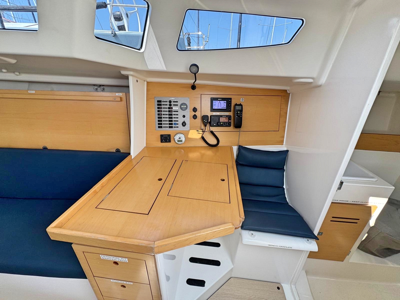 Anti-slip flooring on cockpit floor and decks.