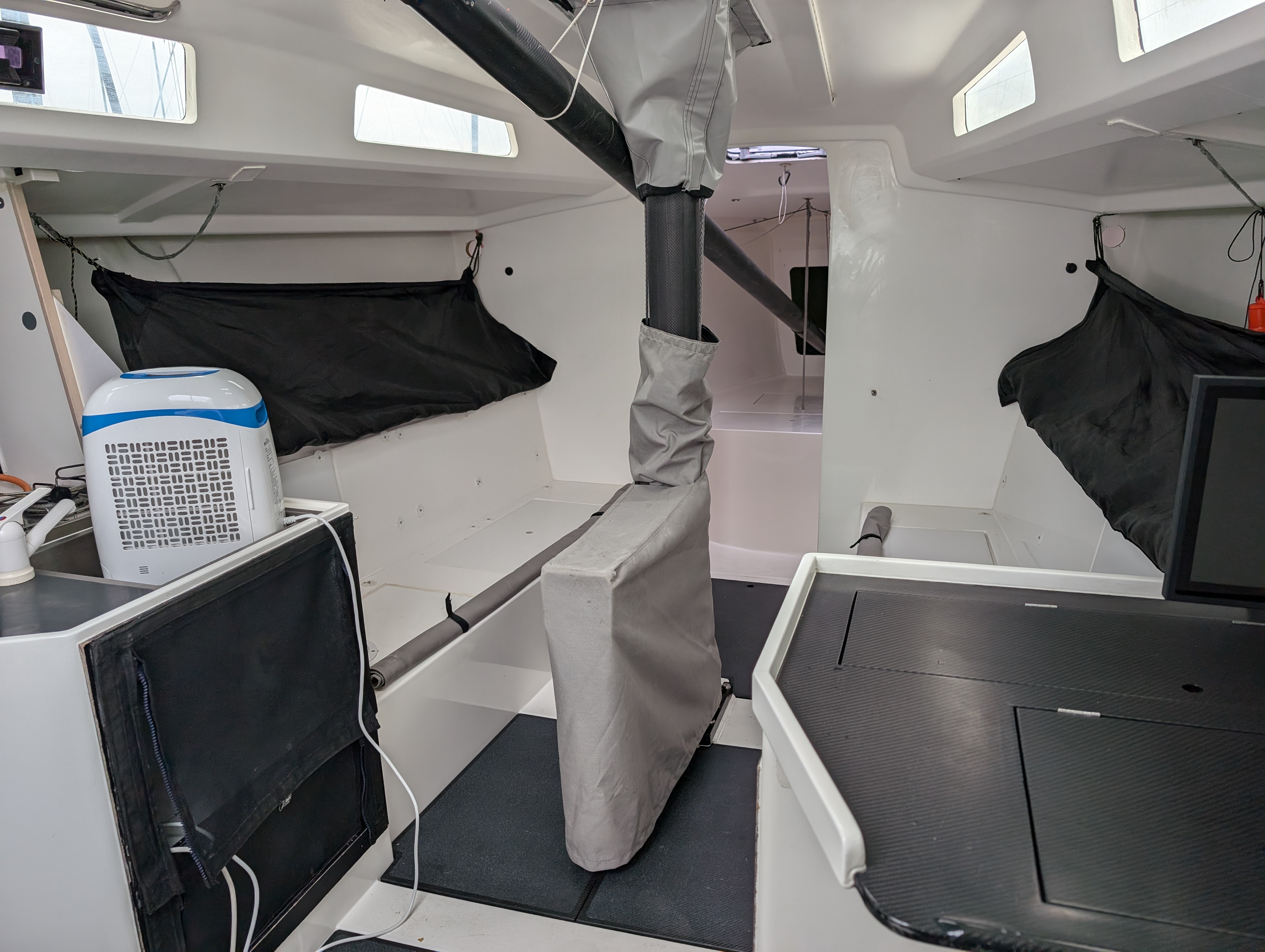 Hull and Deck constructed of Airex & balsa cored. Polyester infusion sandwich construction.