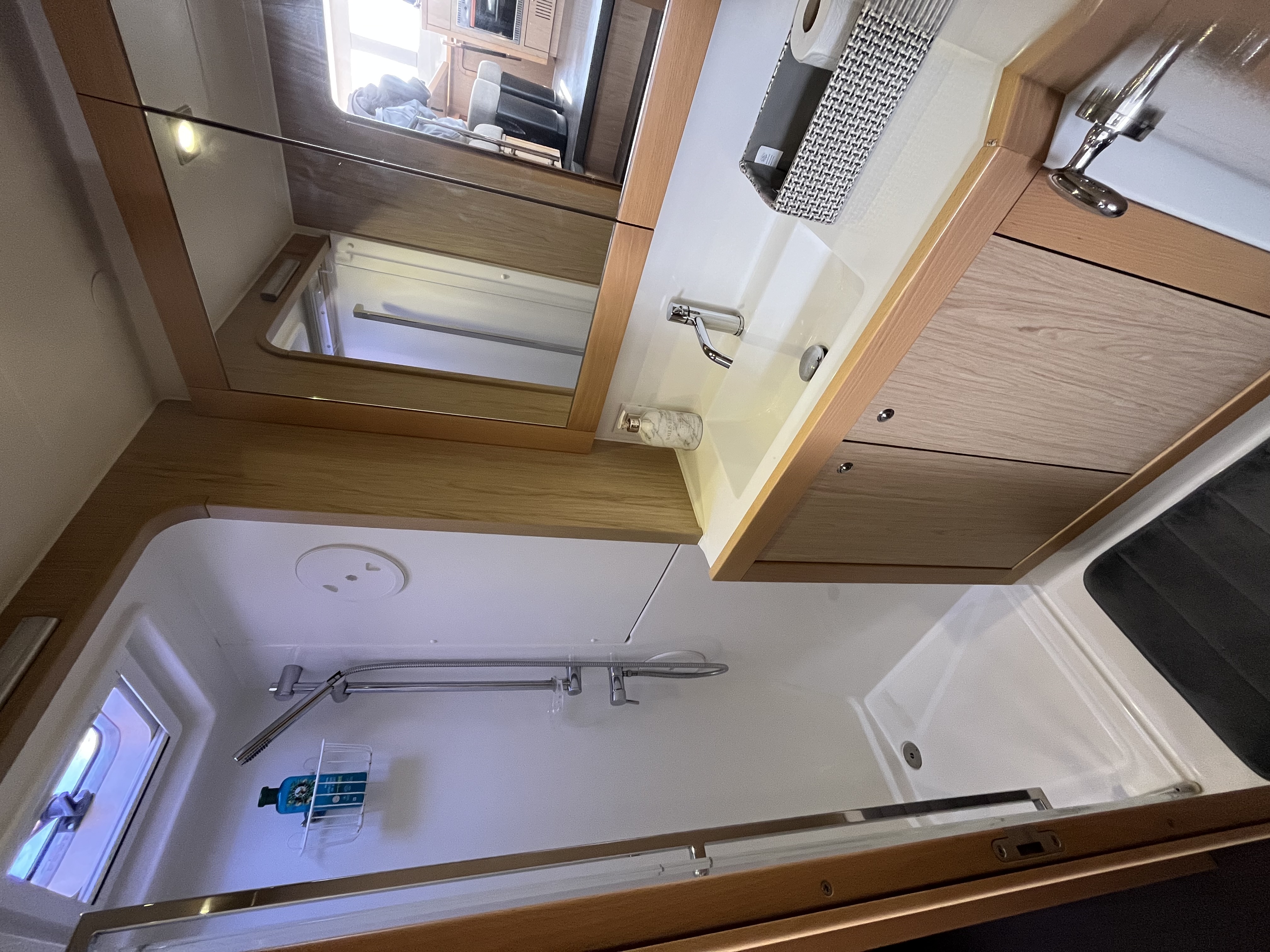Three steps down to port and starboard leads you to the double cabins, fore and aft.