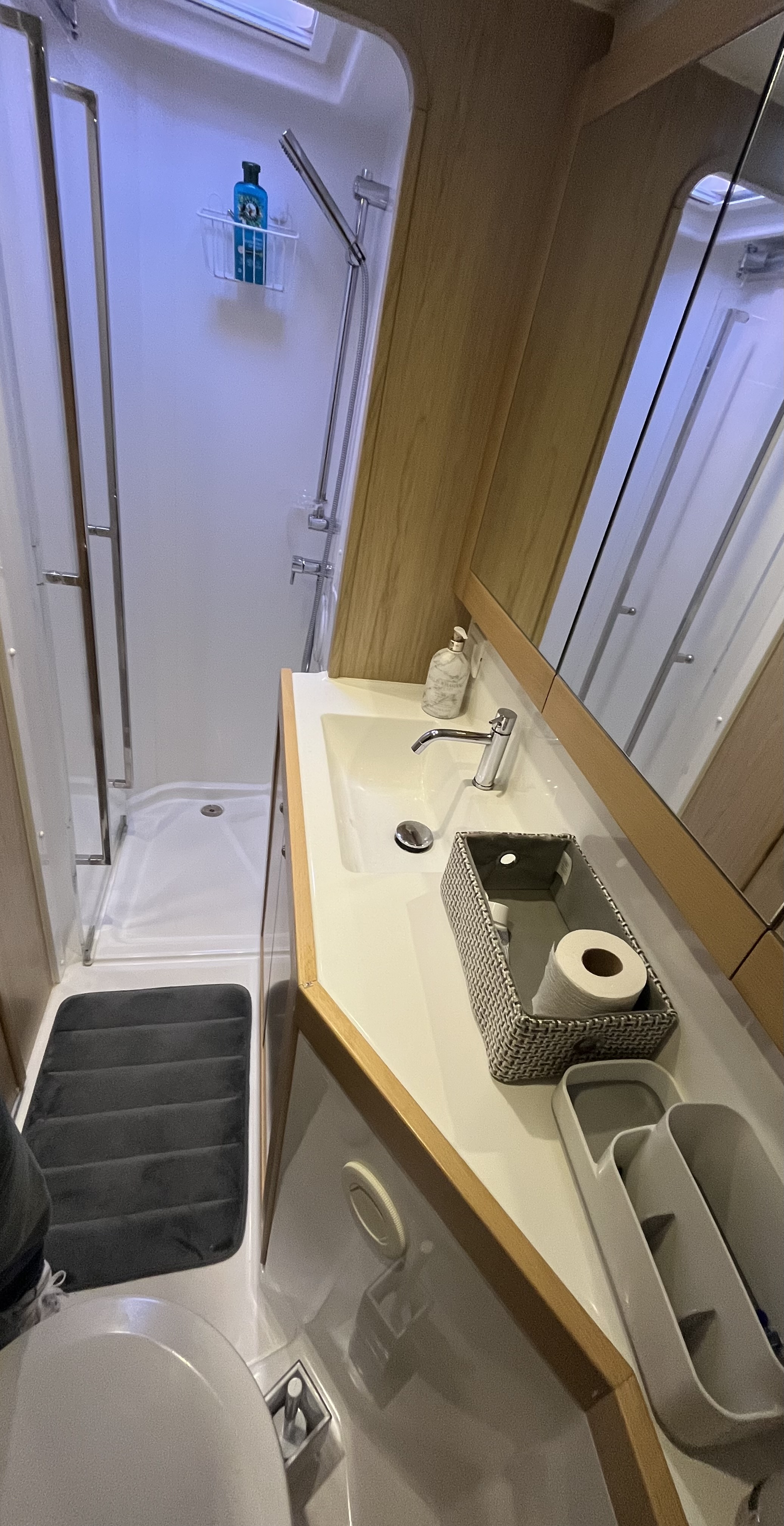 Sea and fresh water foot pumps plus pressurised hot & cold water.