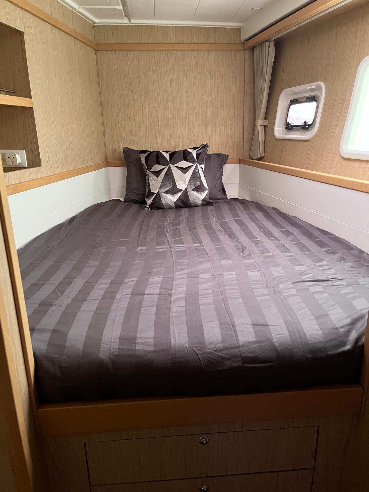 All cabins benefit from large double berths, opening hatches for ventilation, and ample natural light through hull windows.