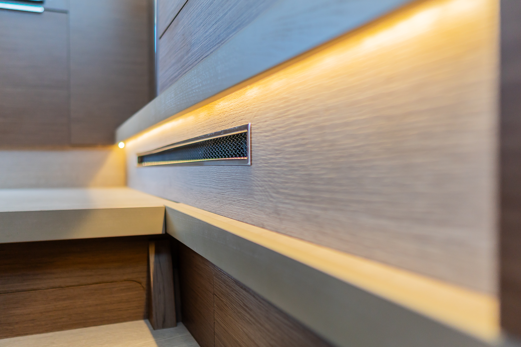 Interior finish in Alpi Walnut with Asburgo (light grey oak) floors