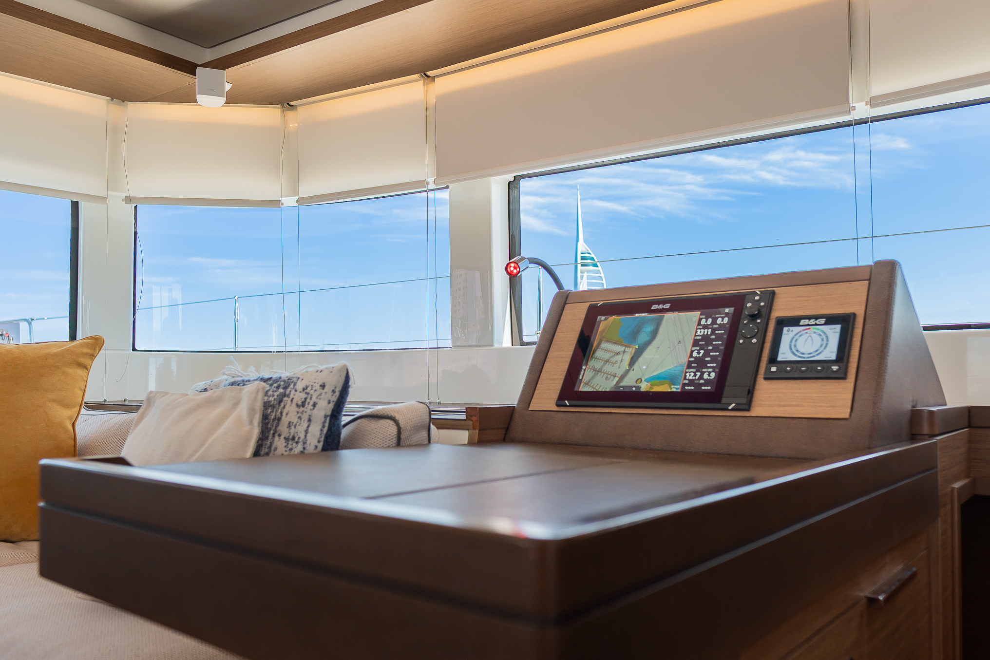 B&G Zeus 12" plotter at navigation station in faux leather covered pod