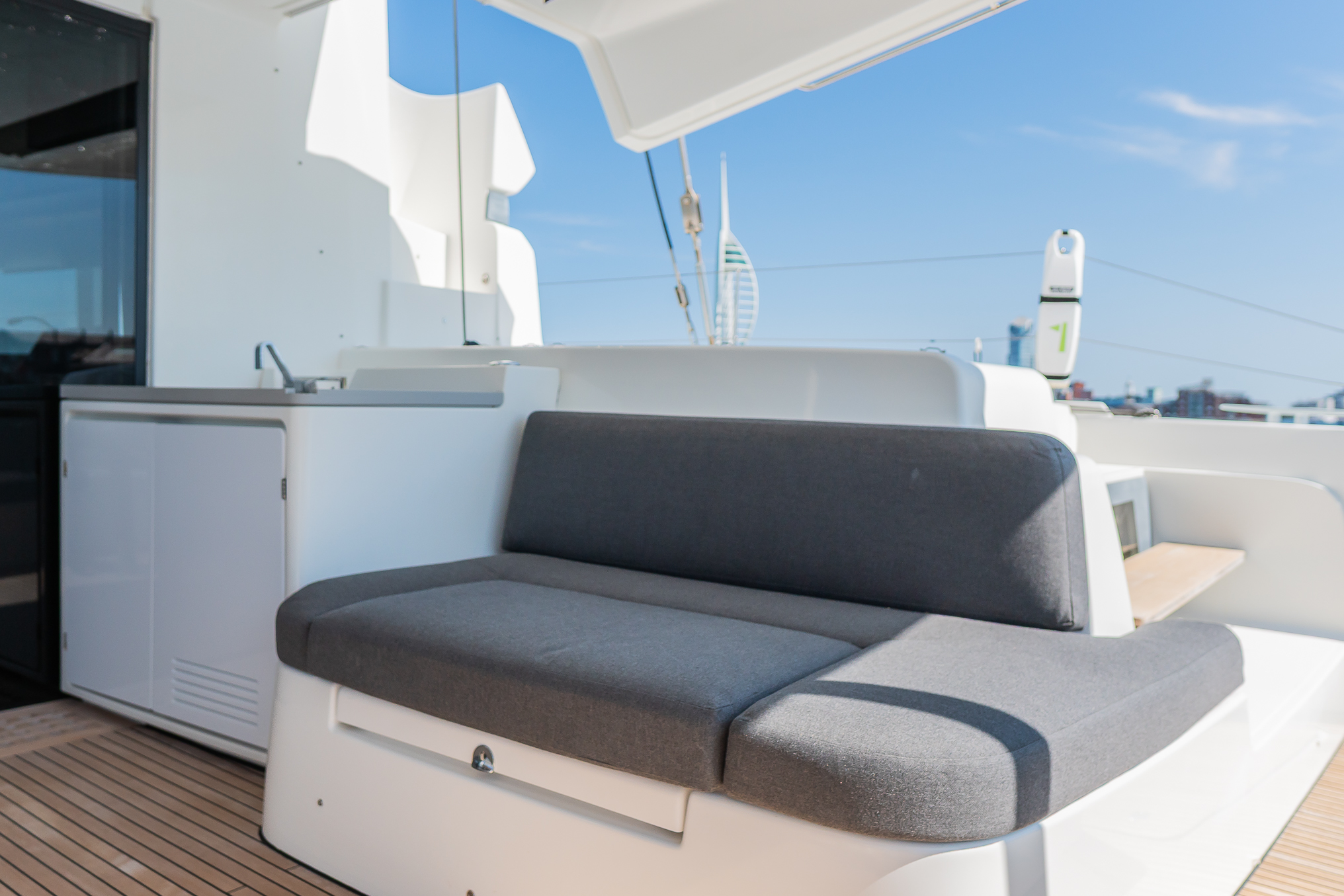 Removable GRP cockpit bench with upholstery in Dark Grey