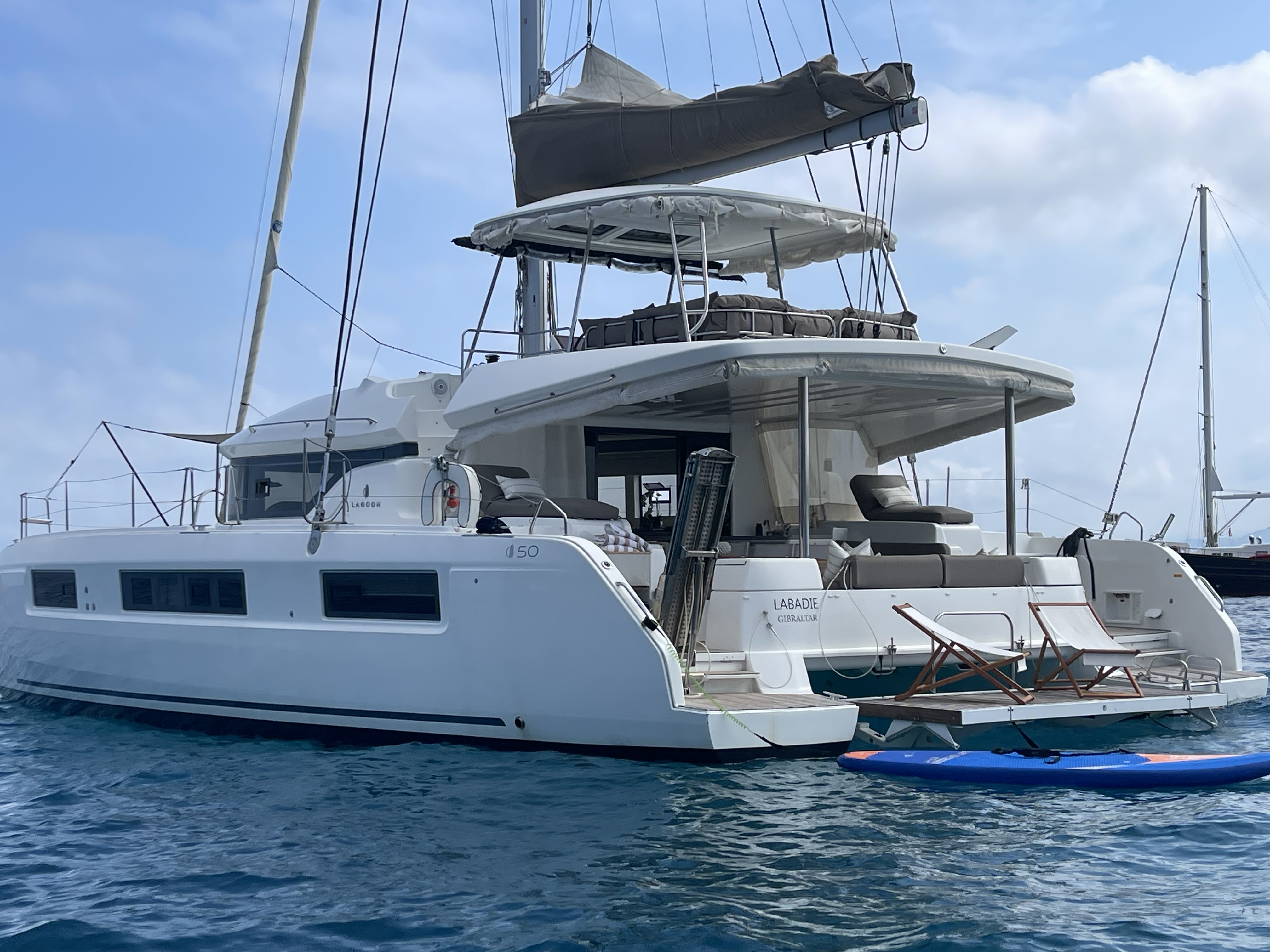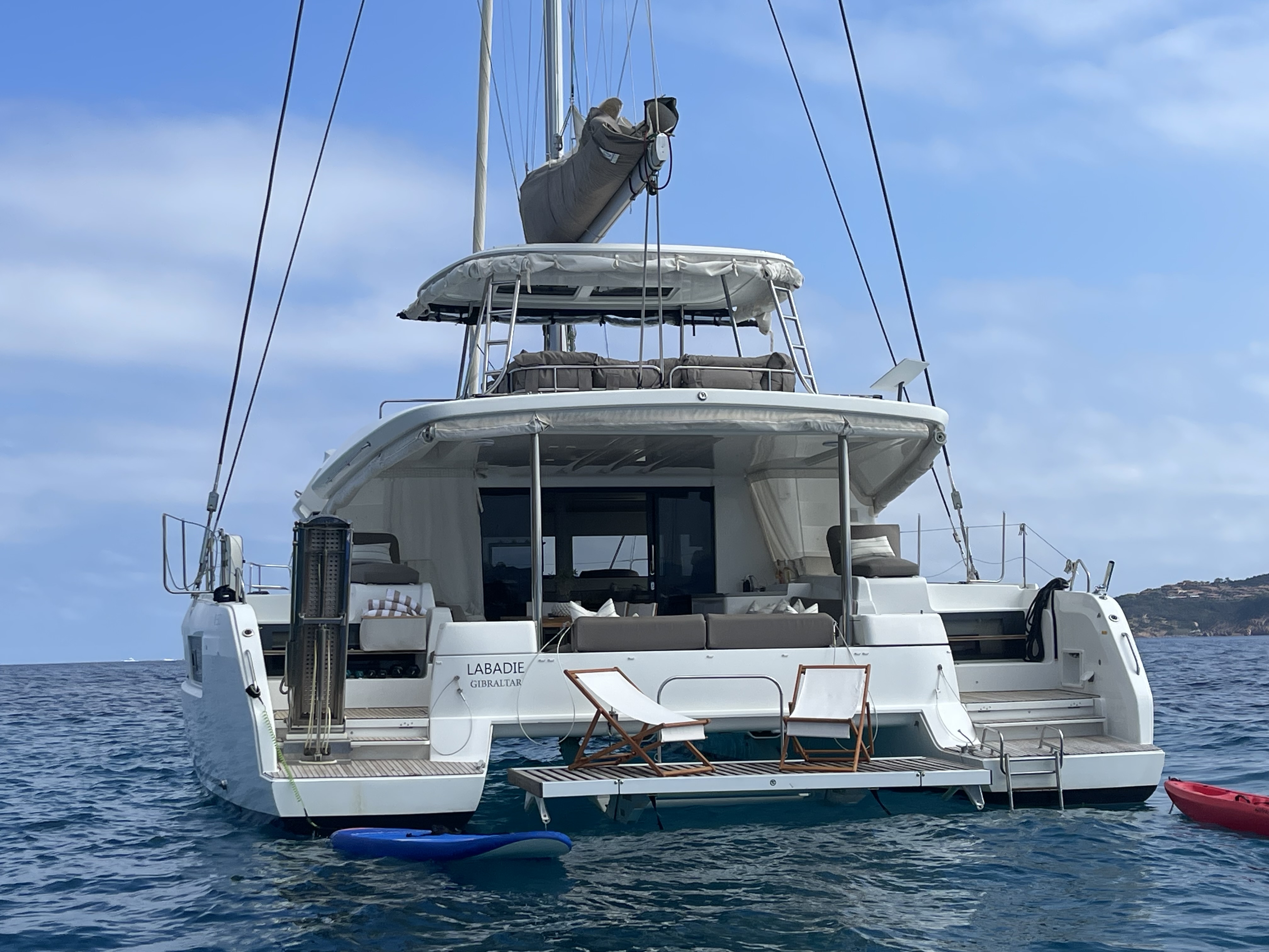 LABADIE is the highest spec'd Lagoon 50 that I can see on the market. She been very well cared for. She has benefitted from a full time captain by a previous owner who had very high expectations. The current owner has enjoyed using her for the 2023/24/25 seasons. LABADIE has been equipped with high-end factory options and several custom upgrades, including :- • Fully customised lounge on the fly bridge and a beautiful shaded foredeck • 2 super silent generators in inox boxes (FISCHER PANDA) • 2 water makers • Cold water purifier • Hydraulic platform • Aft and transom in teak. • Composite hardtop • Custom made enclosure for flybridge and aft cockpit. • Shade sail for forward lounge. • Interior furnished with Lagoon’s Elegance Line design Multiple fridges, freezer and washer/dryer. LABADIE will have your navigation made effortless with upgraded Yanmars 80hp, B&G rear camera, upgraded 16” navigation autopilot, folding props, Dacron square top mainsail, and all electric winches. LABADIE has always been maintained with full time captain and never chartered. Let LABADIE take you to your new adventure.
