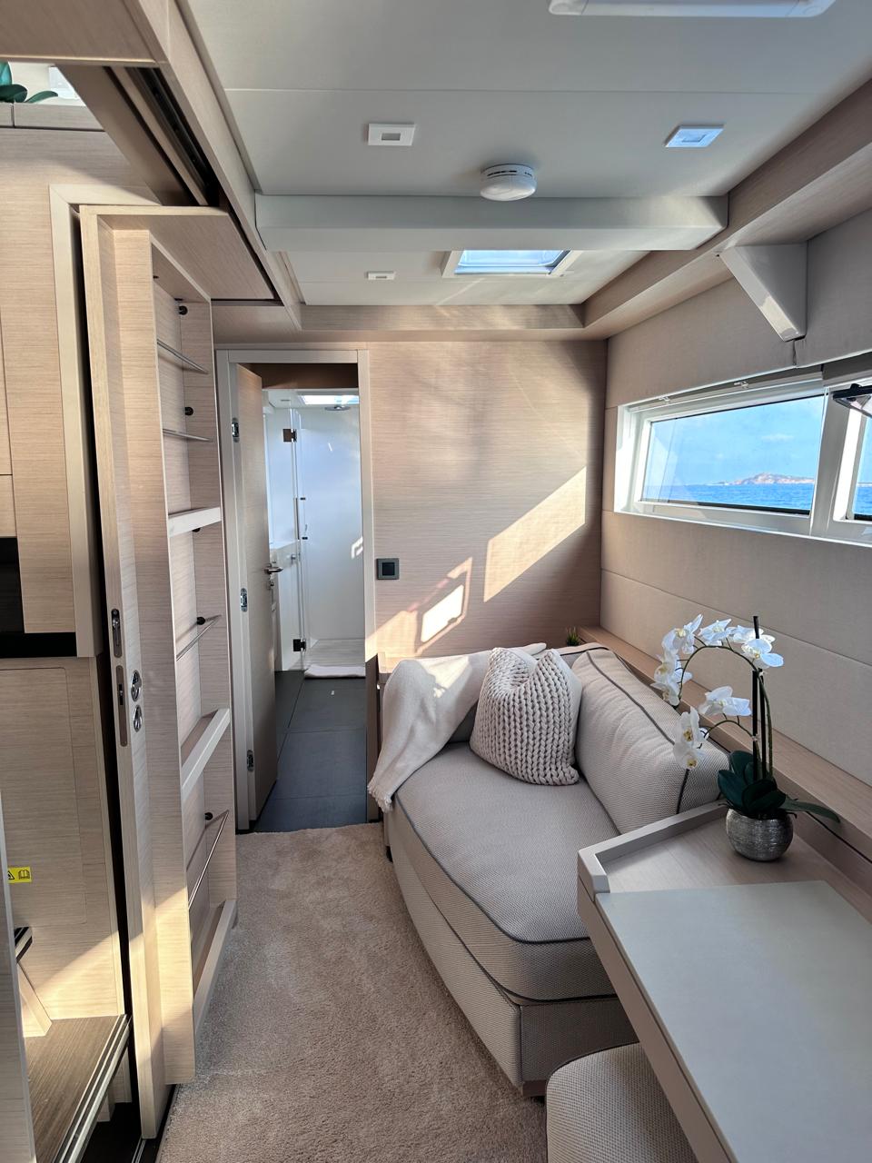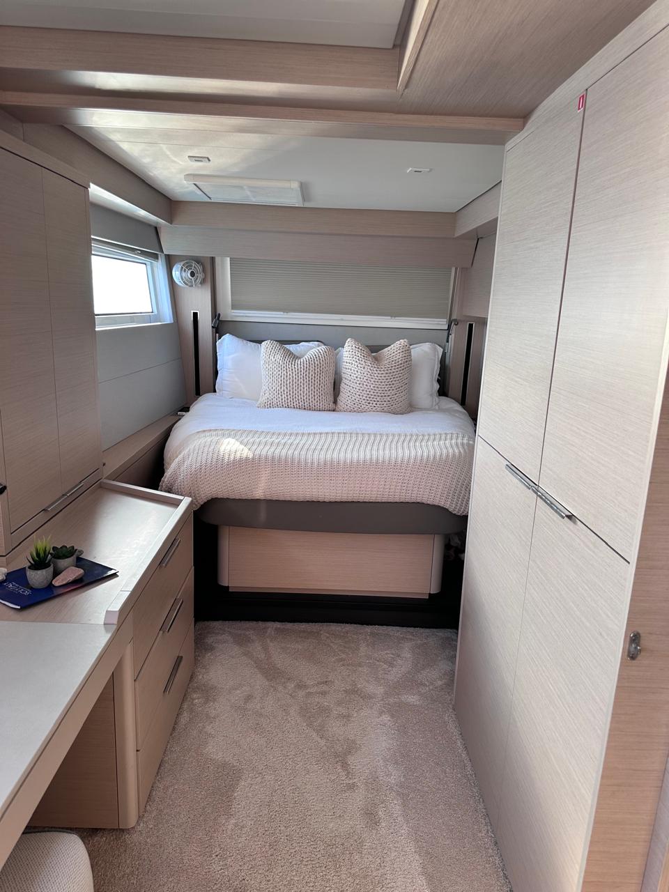 The owner's suite occupies the entire starboard hull providing unrivalled storage in a yacht of this size.