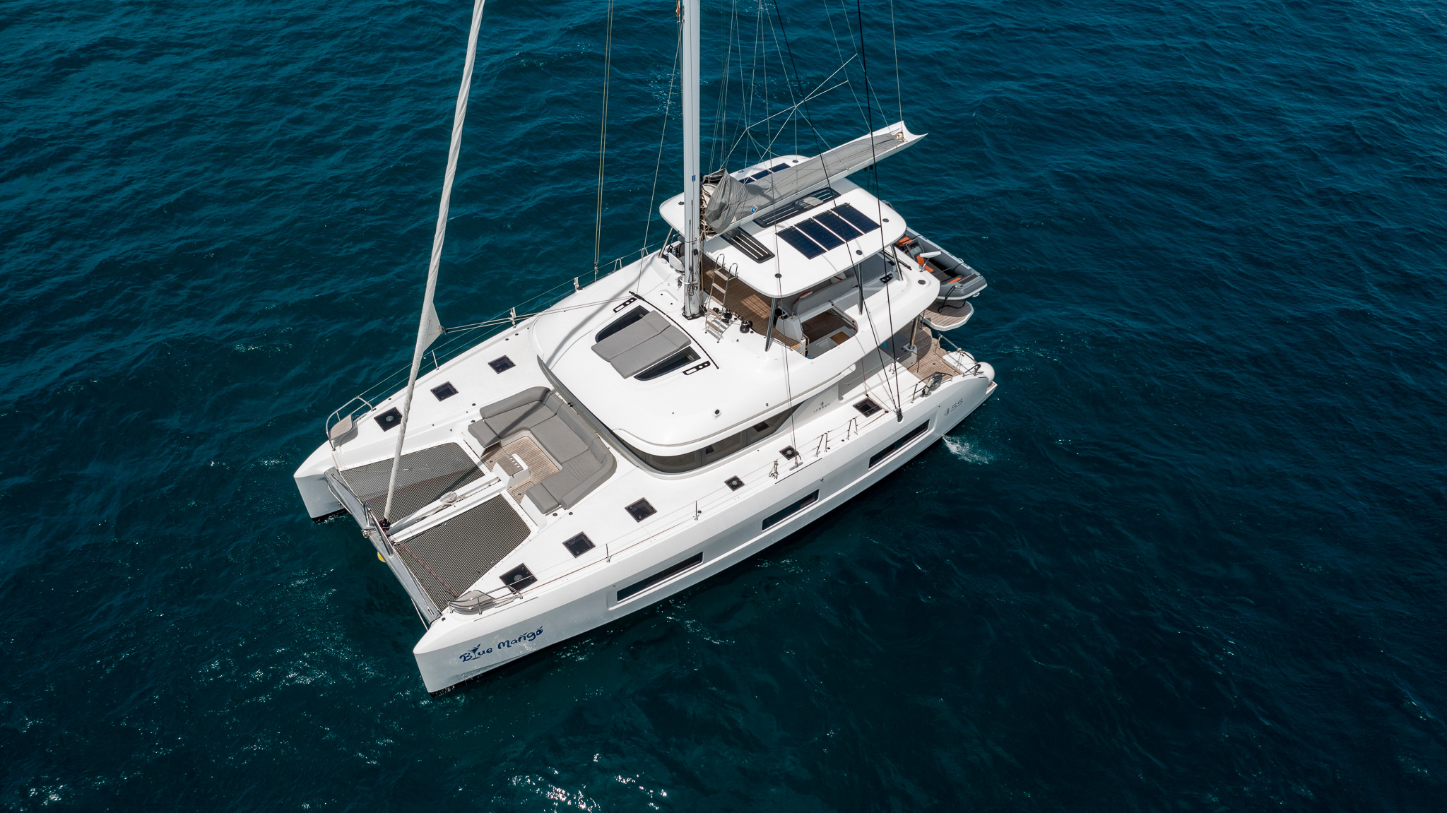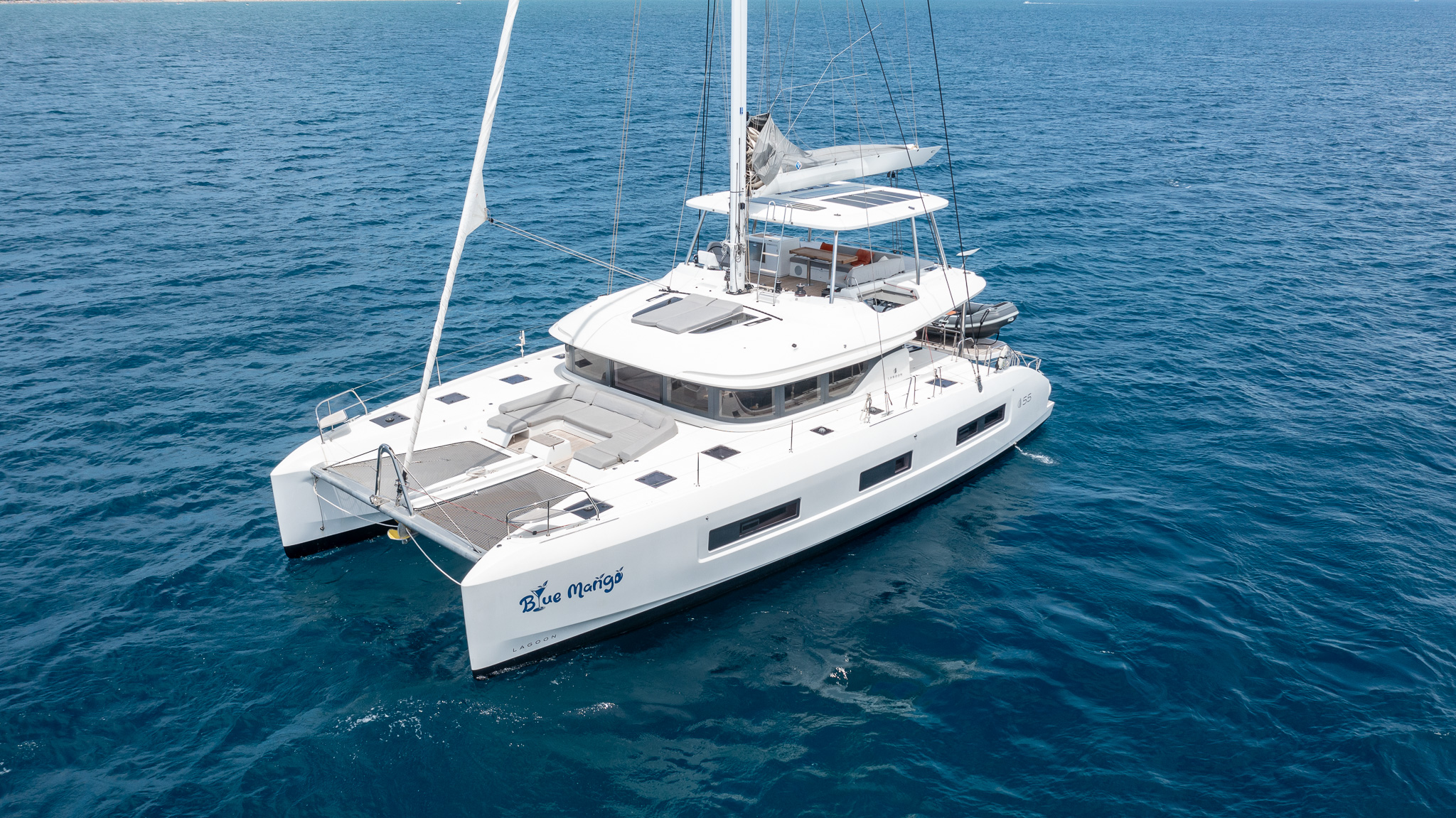 The new Lagoon 55, again designed by renown VPLP design (French-based naval architectural firm founded by Marc Van Peteghem and Vincent Lauriot-Prévost) has been described as the "quintessential modern cruising catamaran" after the model was first presented to the public in 2021. This beautiful 4-cabin owner´s version was launched and handed over to her first and only owner in early 2023. BLUE MANGO has seen since some careful private use in the Western Med with constant maintenance and upgrades since handover. She comes highly specified and more than comprehensively equipped with a long list of extras to be enjoyed during a relaxed holiday or extended offshore cruising by her next owner. Privately owned and used and never chartered.