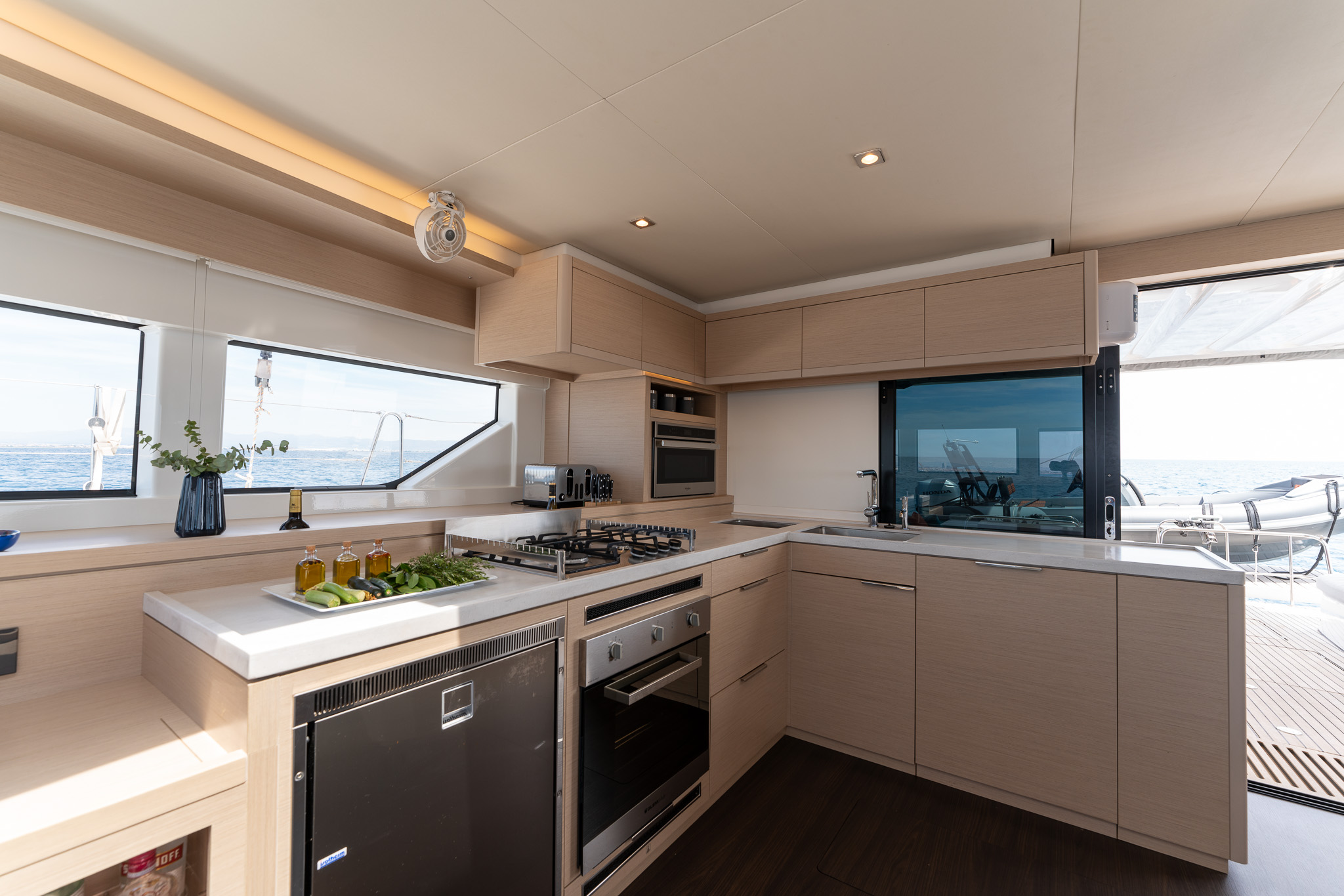 Composite furniture with plancha in port transom (not compatible with port bench)