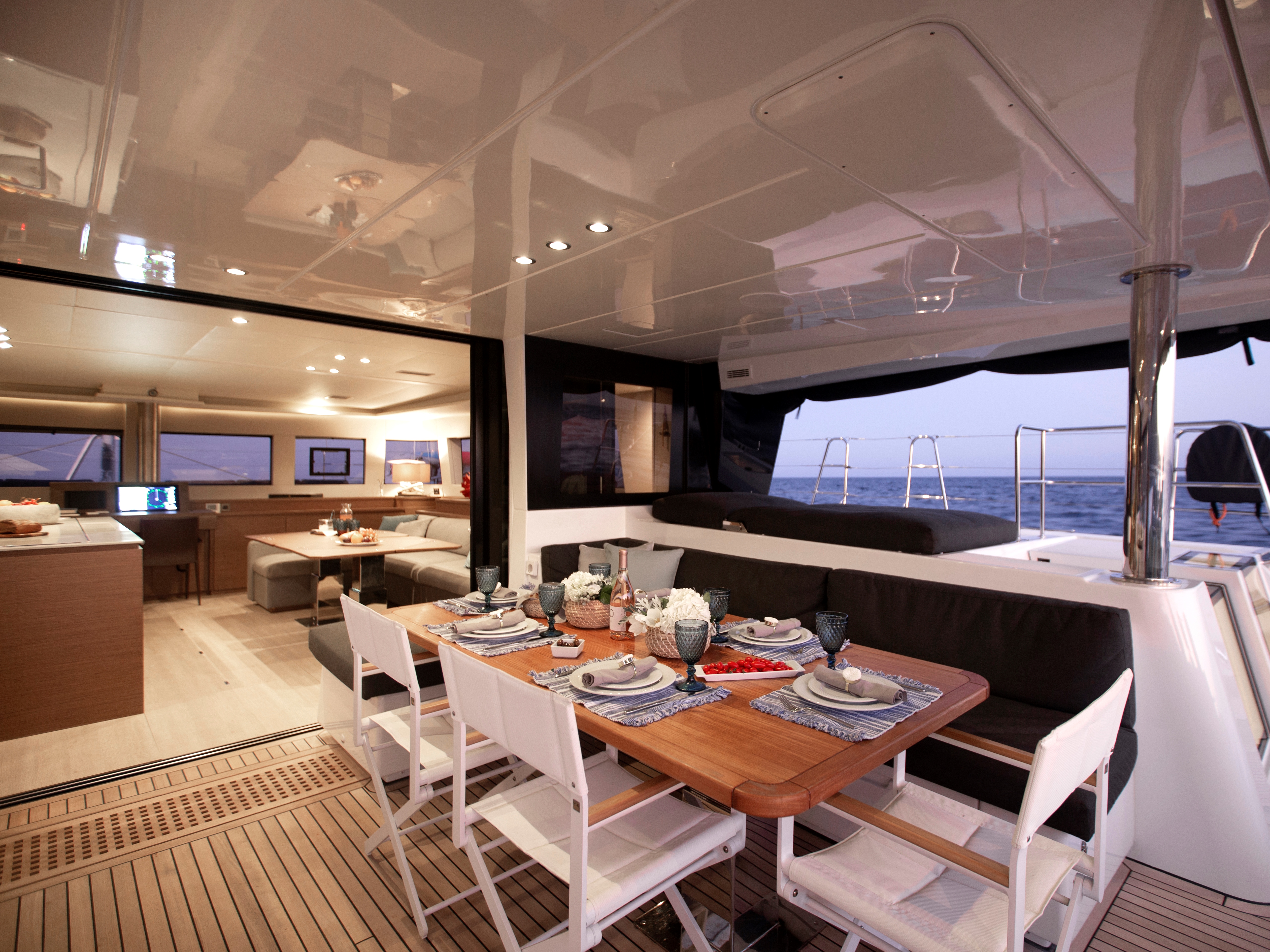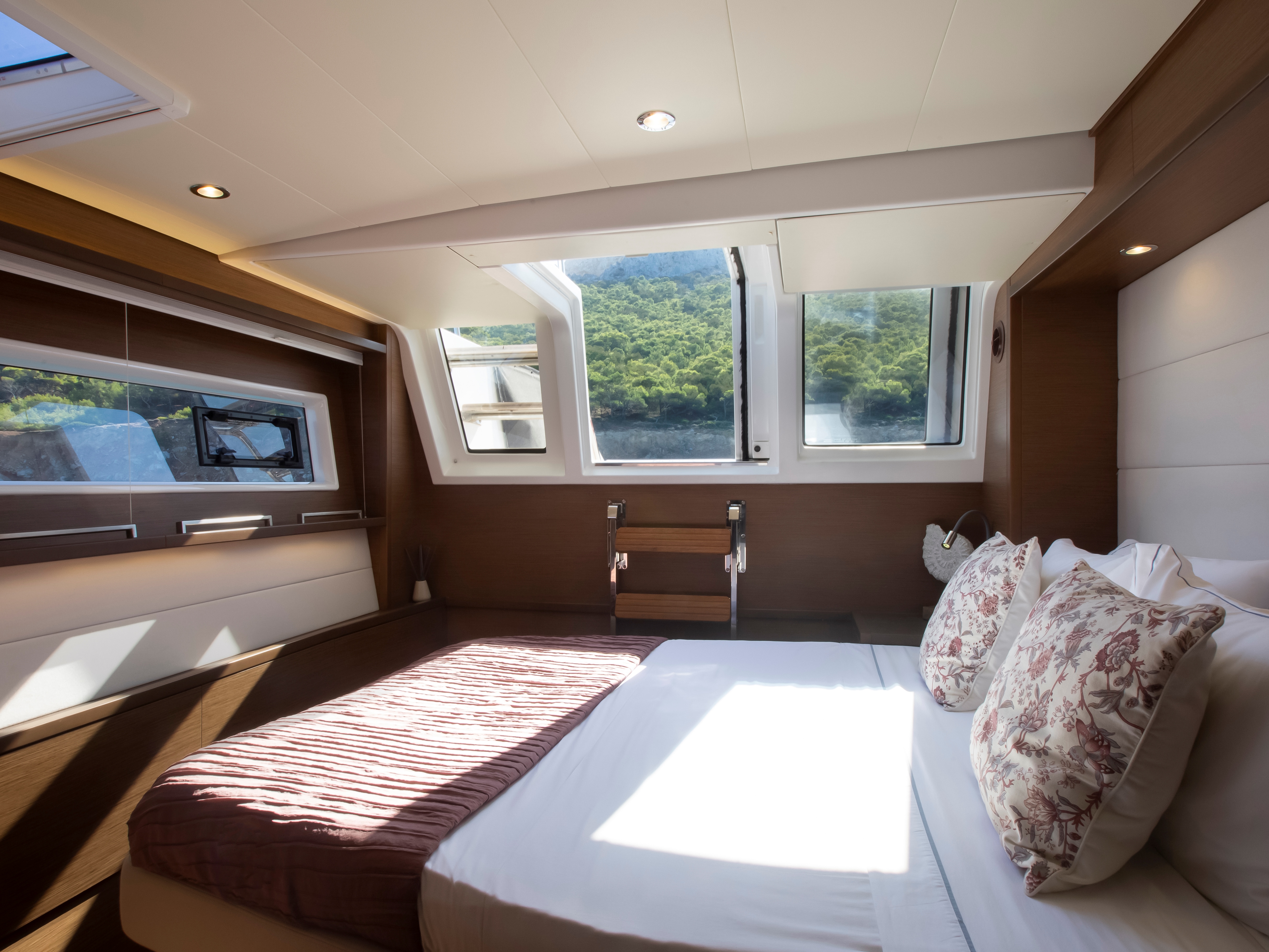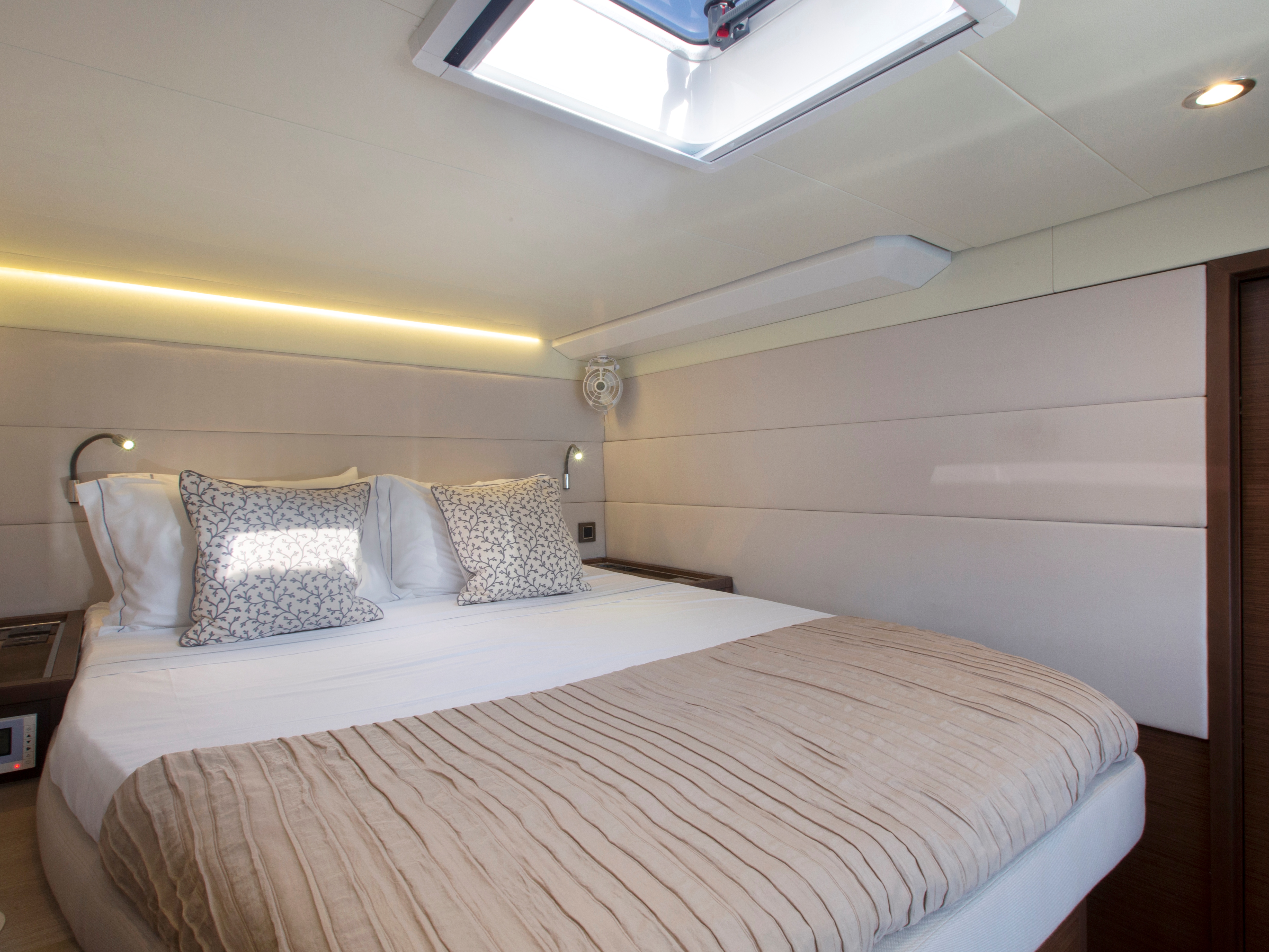 Full width double cabin with direct access to aft deck via foldable steps