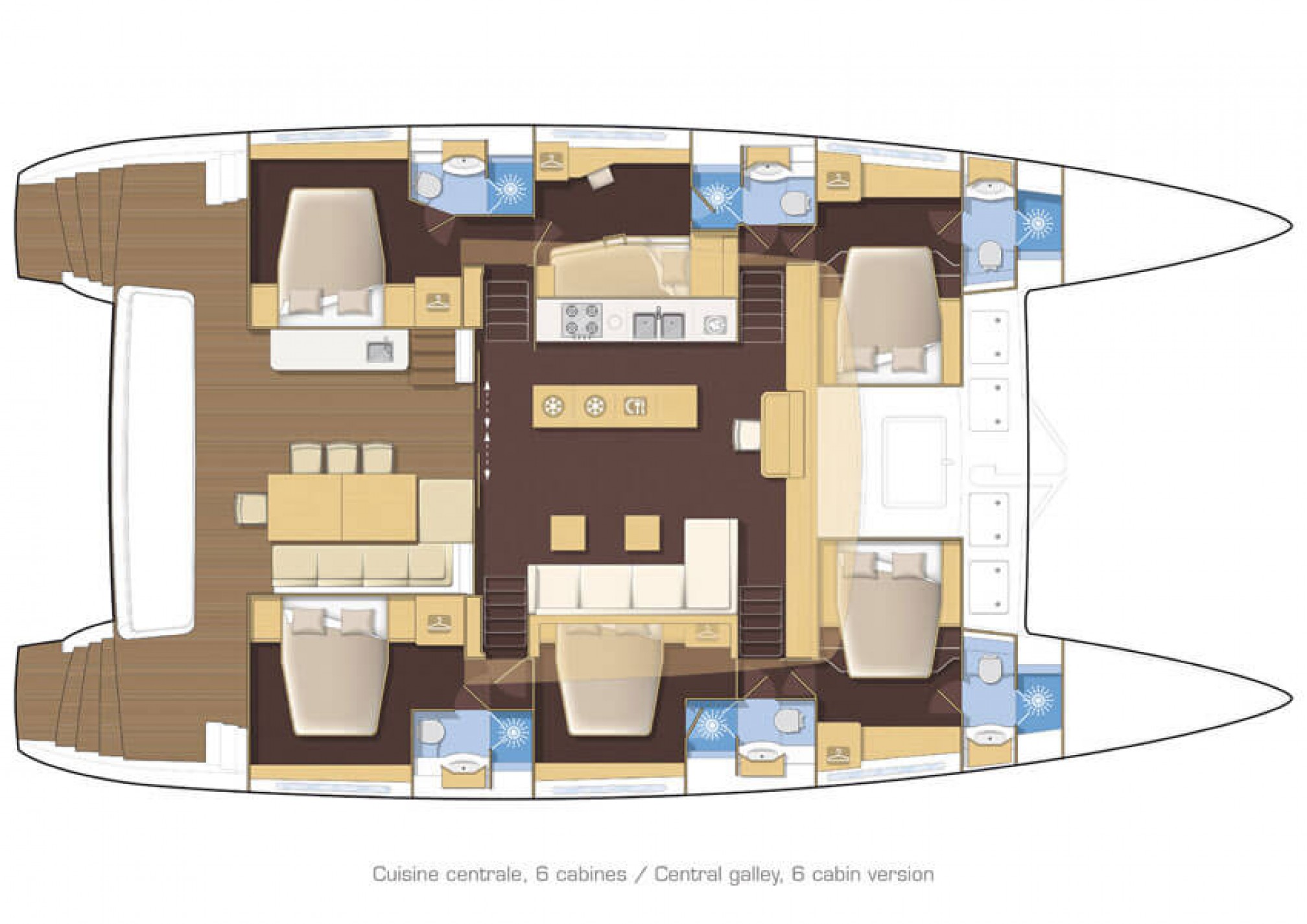 Automatic and electric bilge pump in each hull + manual override + bilge level alarm in each hull