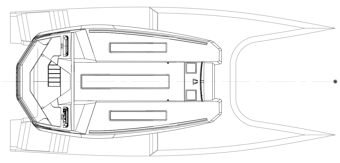 Composite centreboards featuring push-button deployment with three pre-set positions. Flush with hull when retracted.